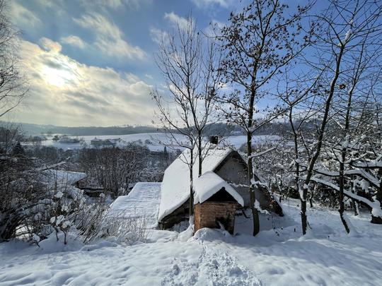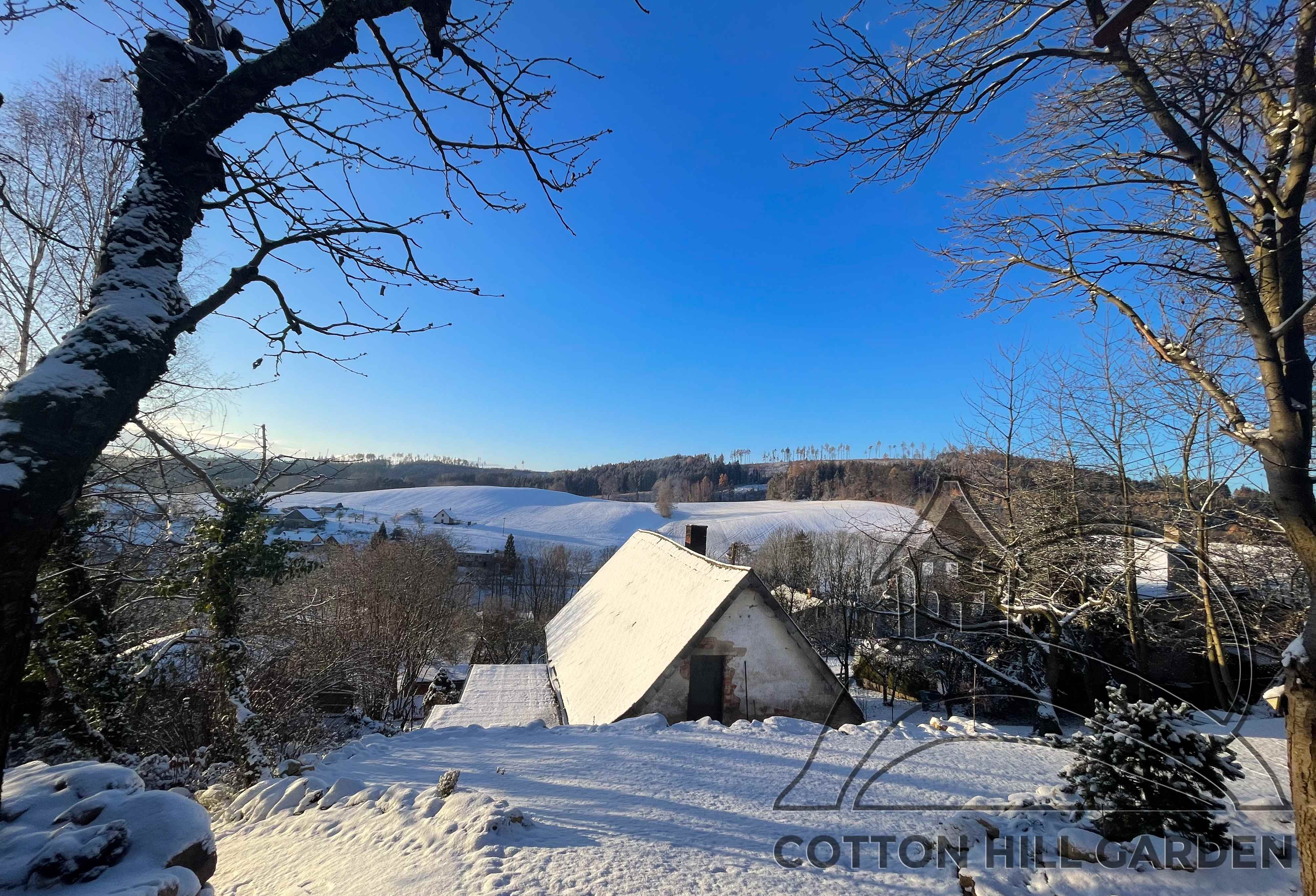 ZAHRADA JE POKRYTA SNĚHEM A VŠE ODPOČÍVÁ A NABÍRÁ SÍLU DO DEN PO DNI BLÍŽÍCÍHO JARA.