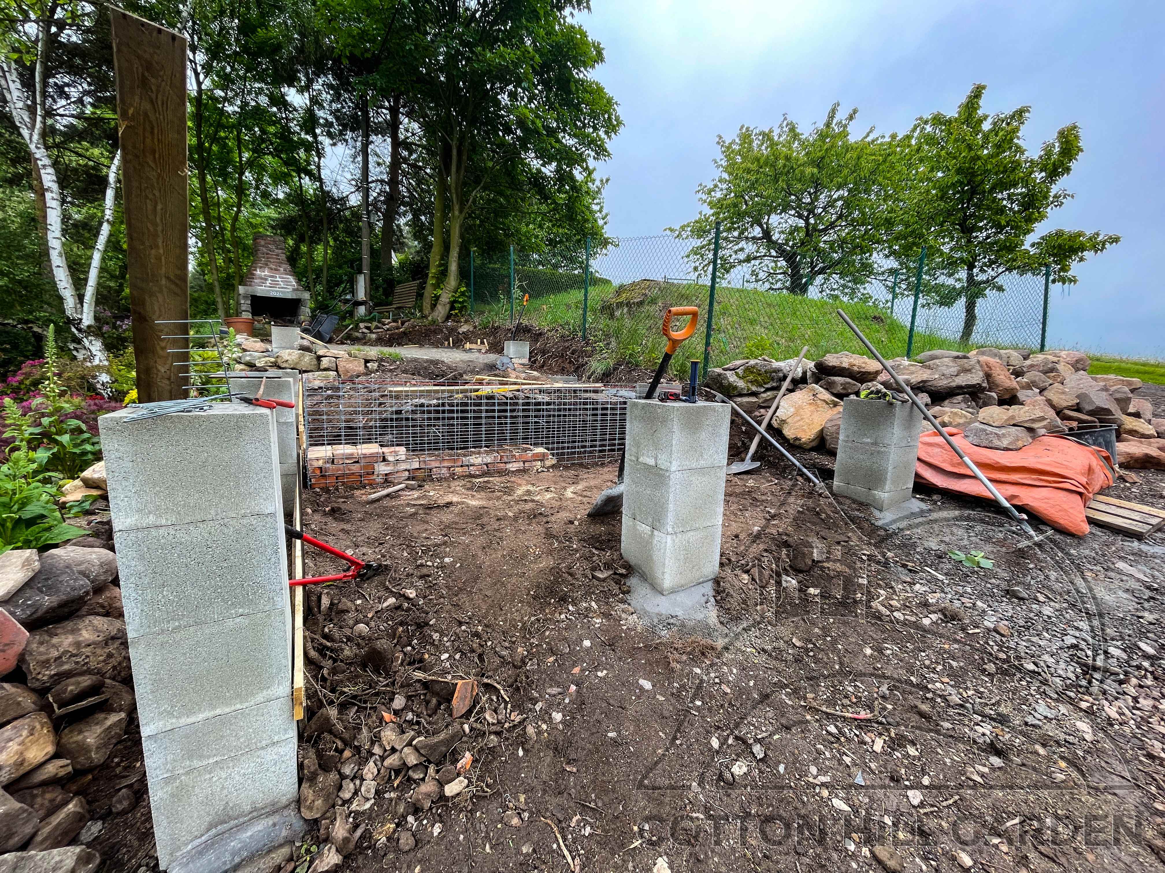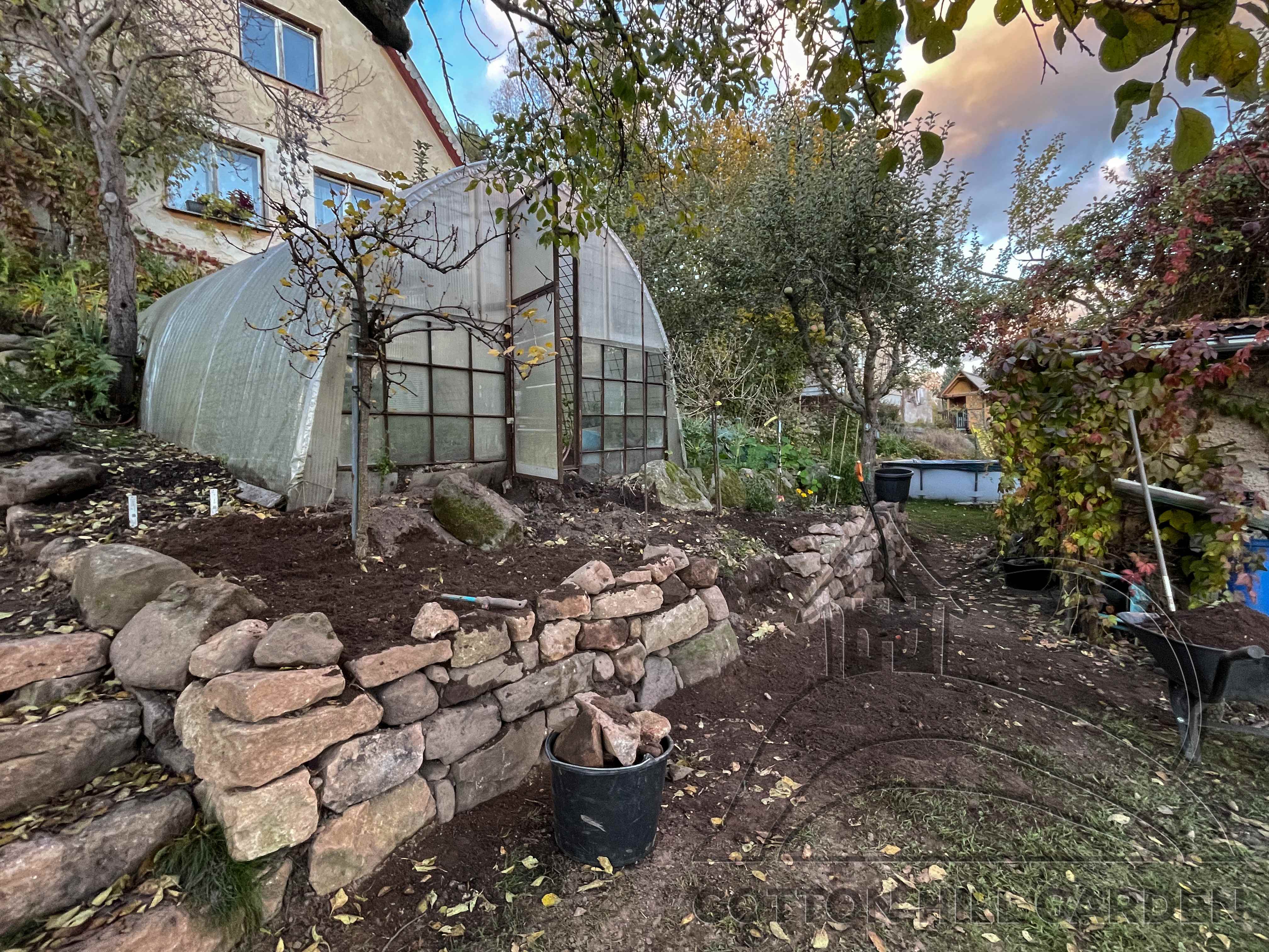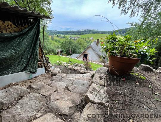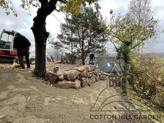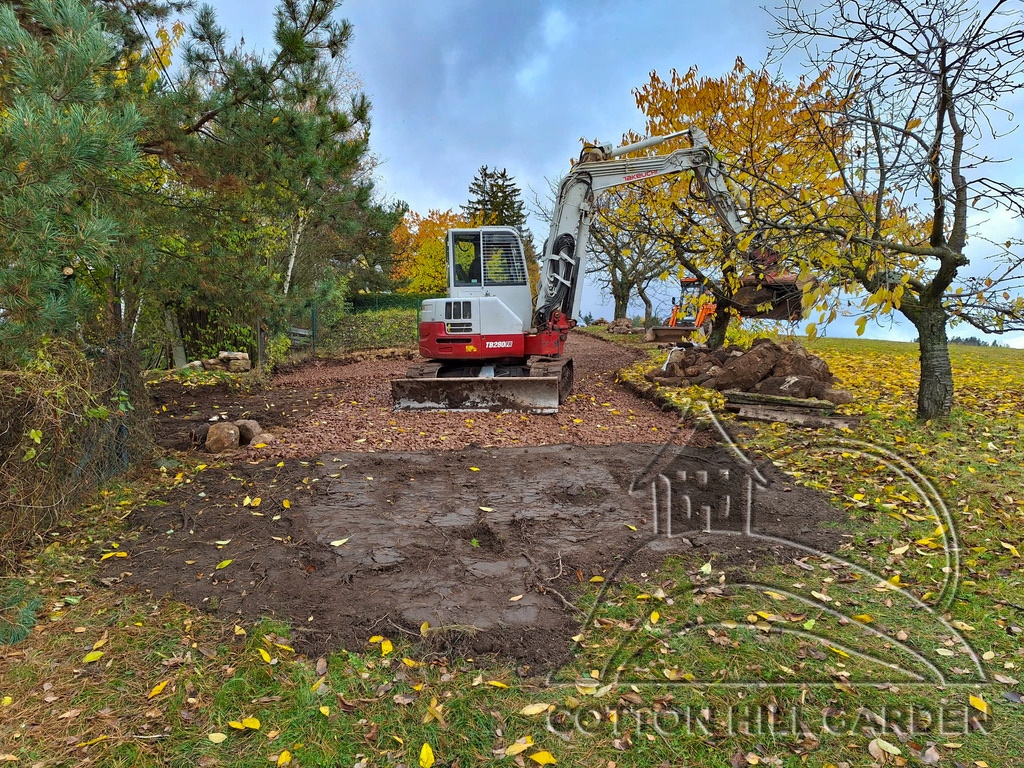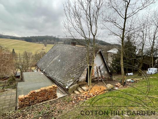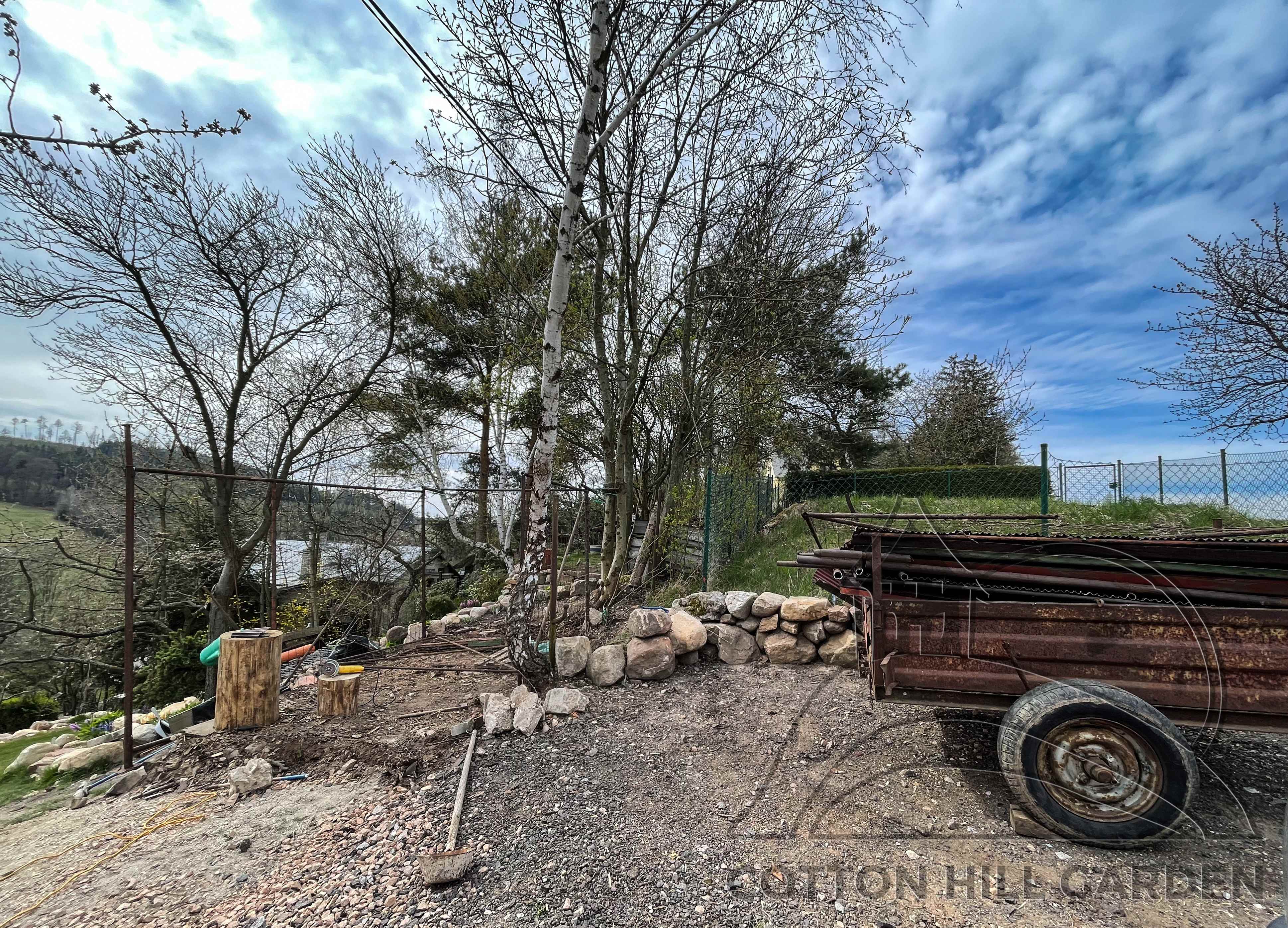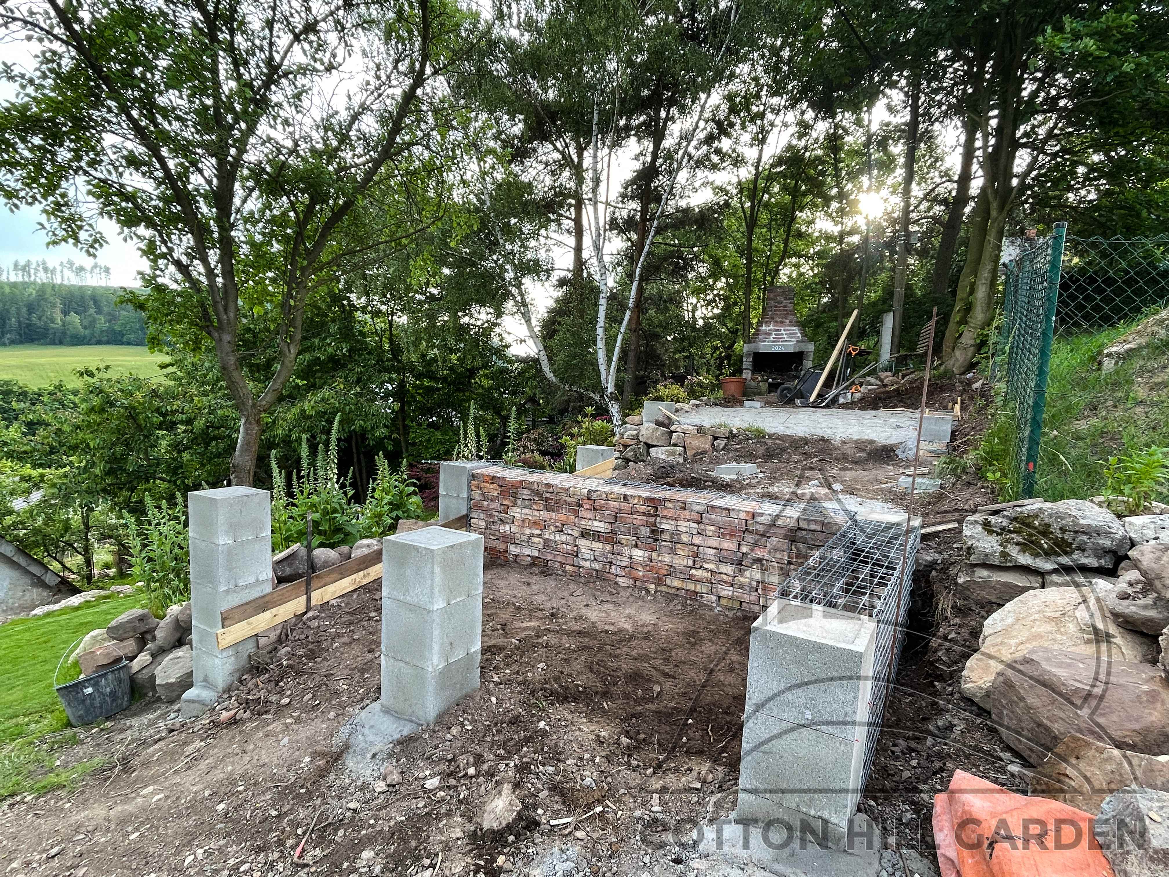 ZPŘÍSTUPNÍ DŮM PRO ÚČELY BUDOUCÍ STAVBY, VYTVÁŘÍ TRAVNATOU TERASU S KRÁSNÝM VÝHLEDEM DO KRAJINY. V NEPOSLEDNÍ ŘADĚ TARAS BUDE DOMOVEM ČAROVĚNÍKŮ, AZALEK A SKALNIČEK.