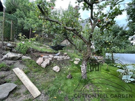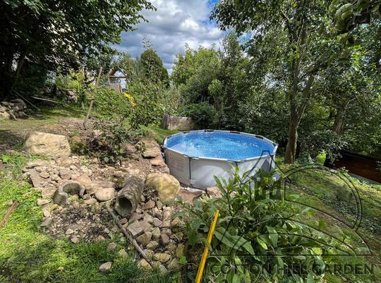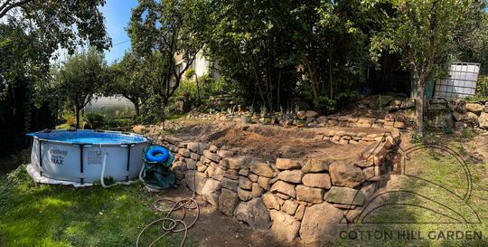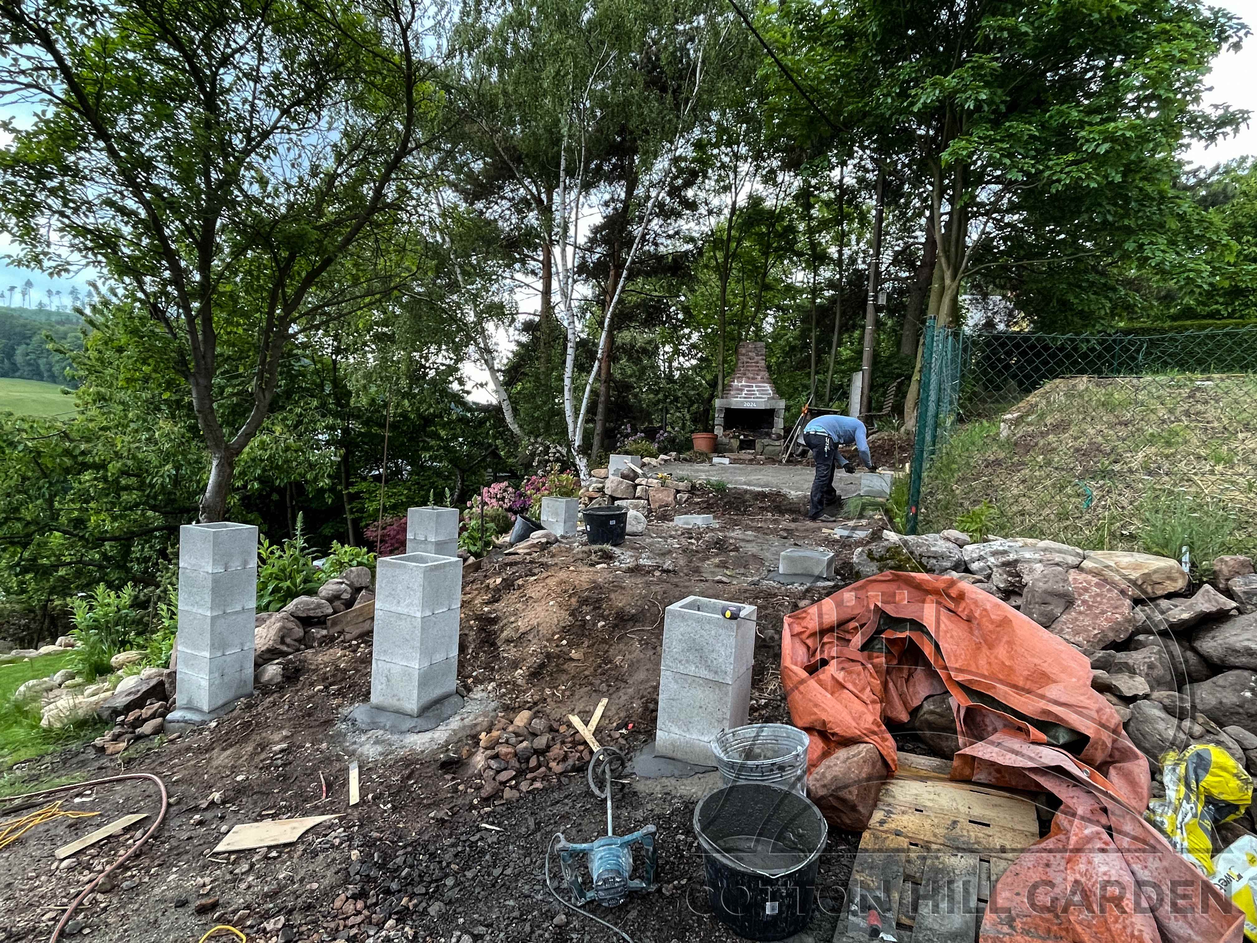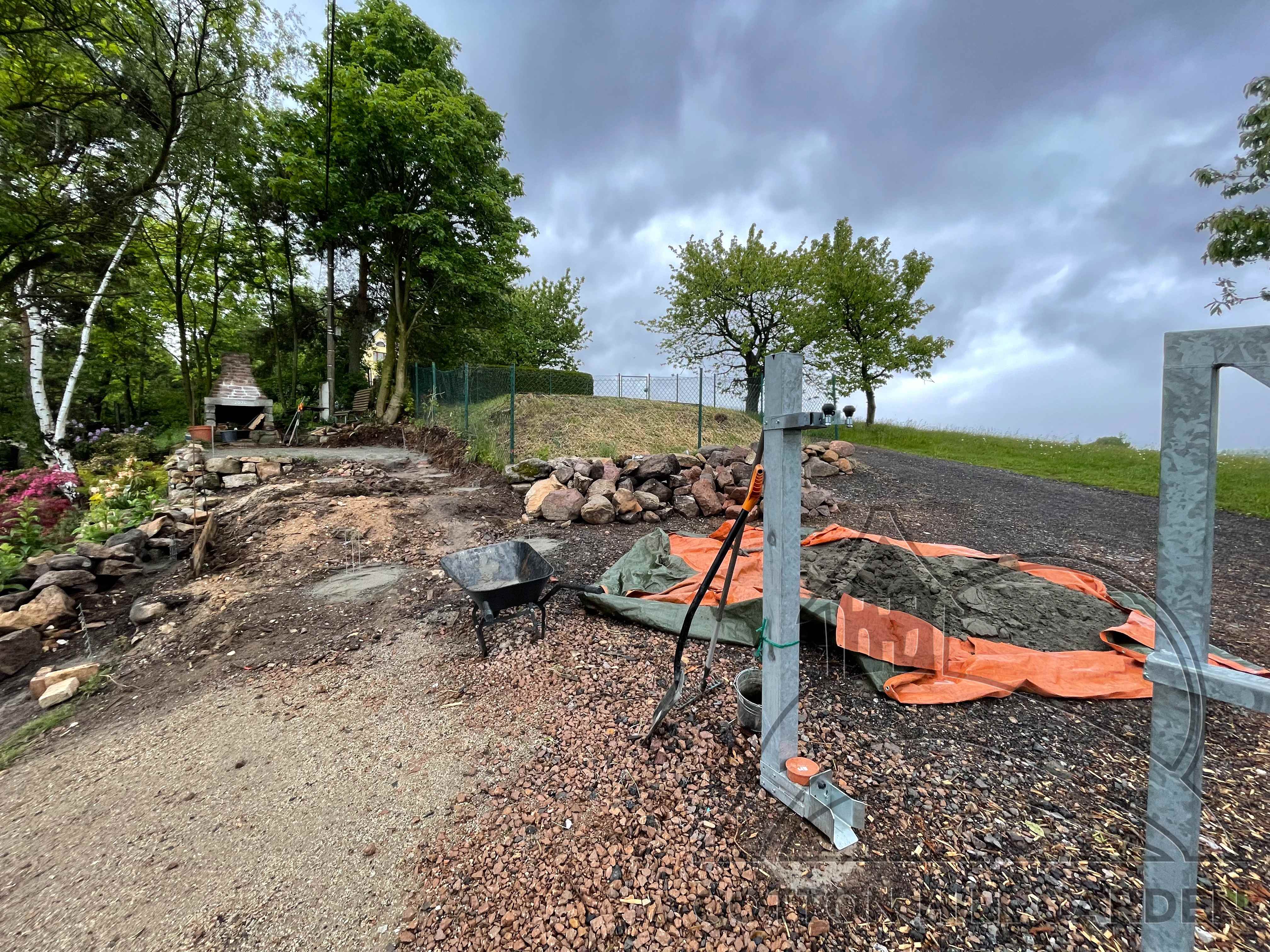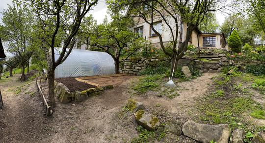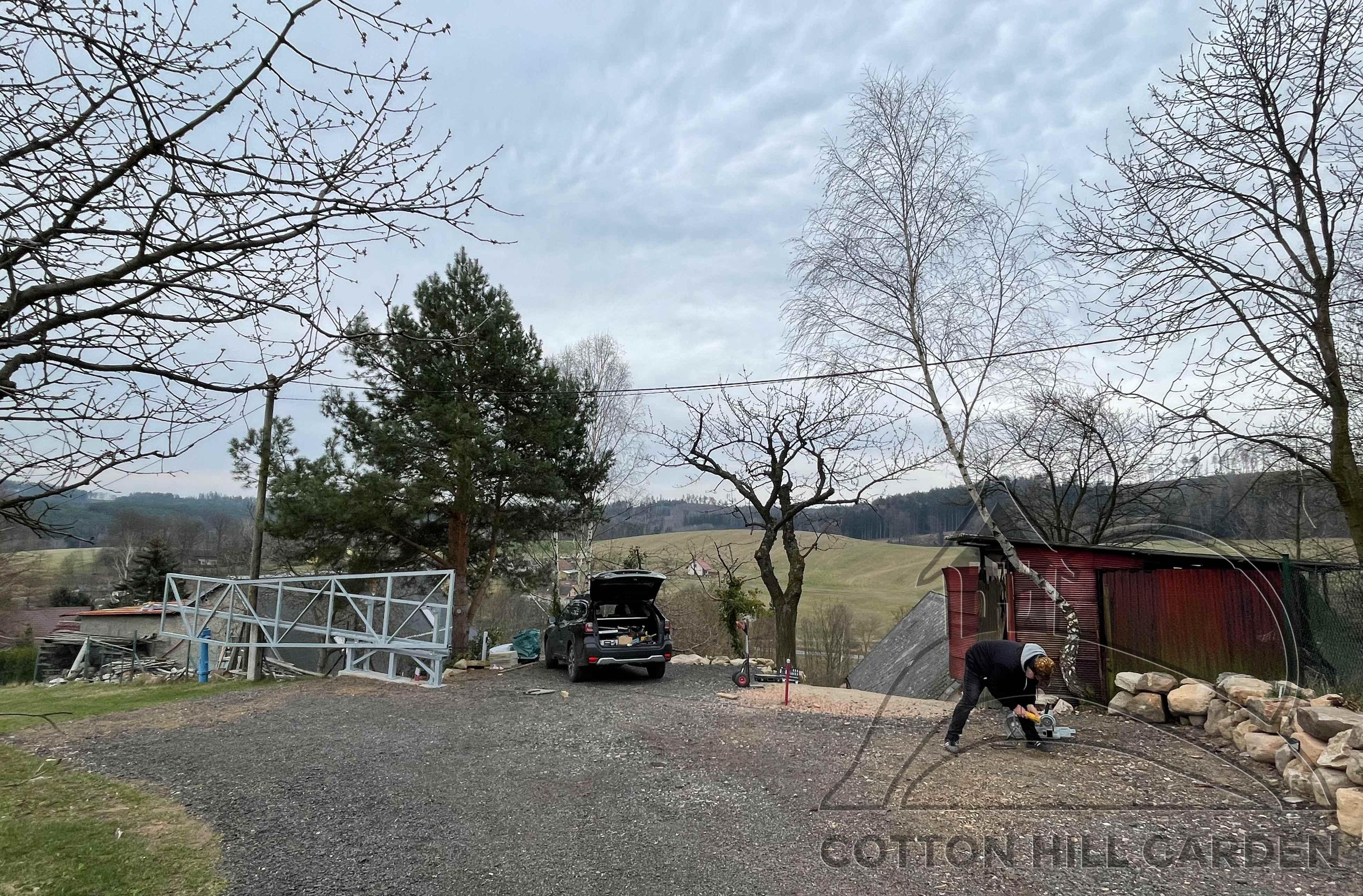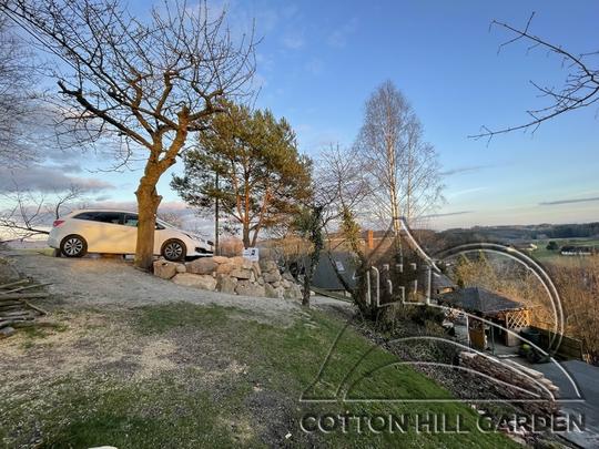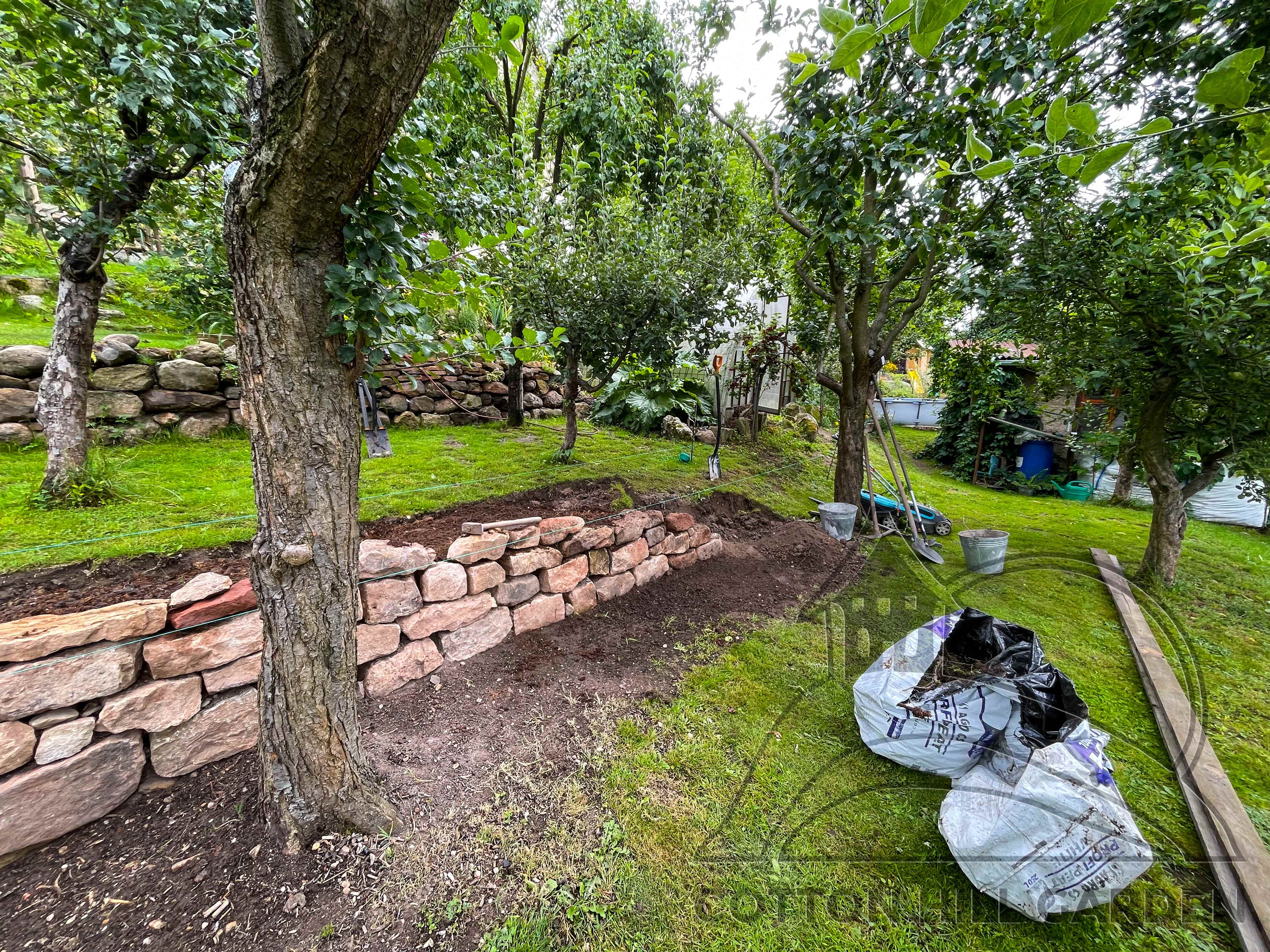 ZPŘÍSTUPNÍ DŮM PRO ÚČELY BUDOUCÍ STAVBY, VYTVÁŘÍ TRAVNATOU TERASU S KRÁSNÝM VÝHLEDEM DO KRAJINY. V NEPOSLEDNÍ ŘADĚ TARAS BUDE DOMOVEM ČAROVĚNÍKŮ, AZALEK A SKALNIČEK.