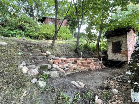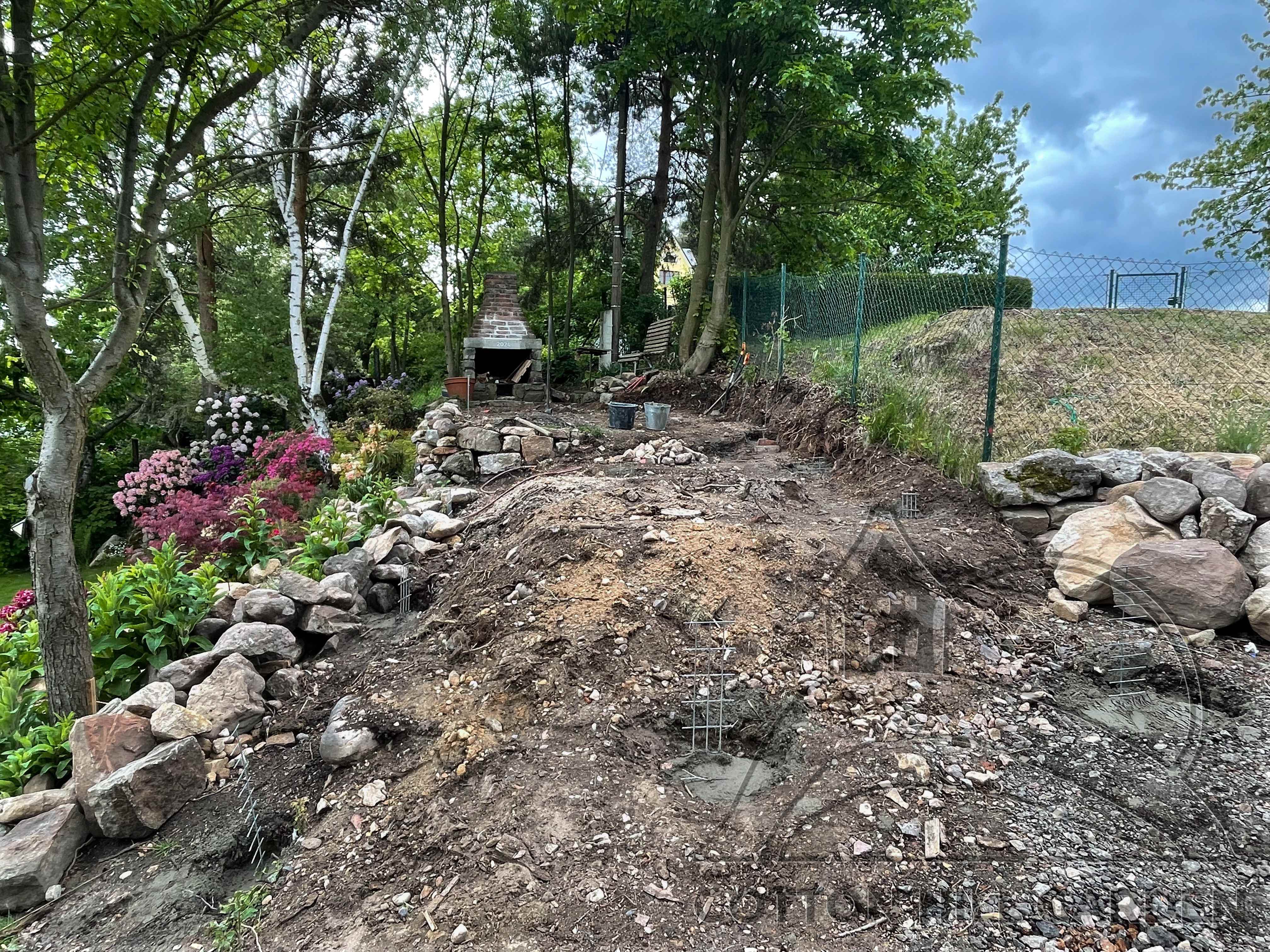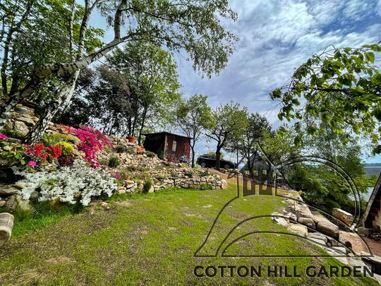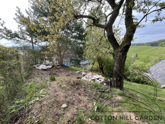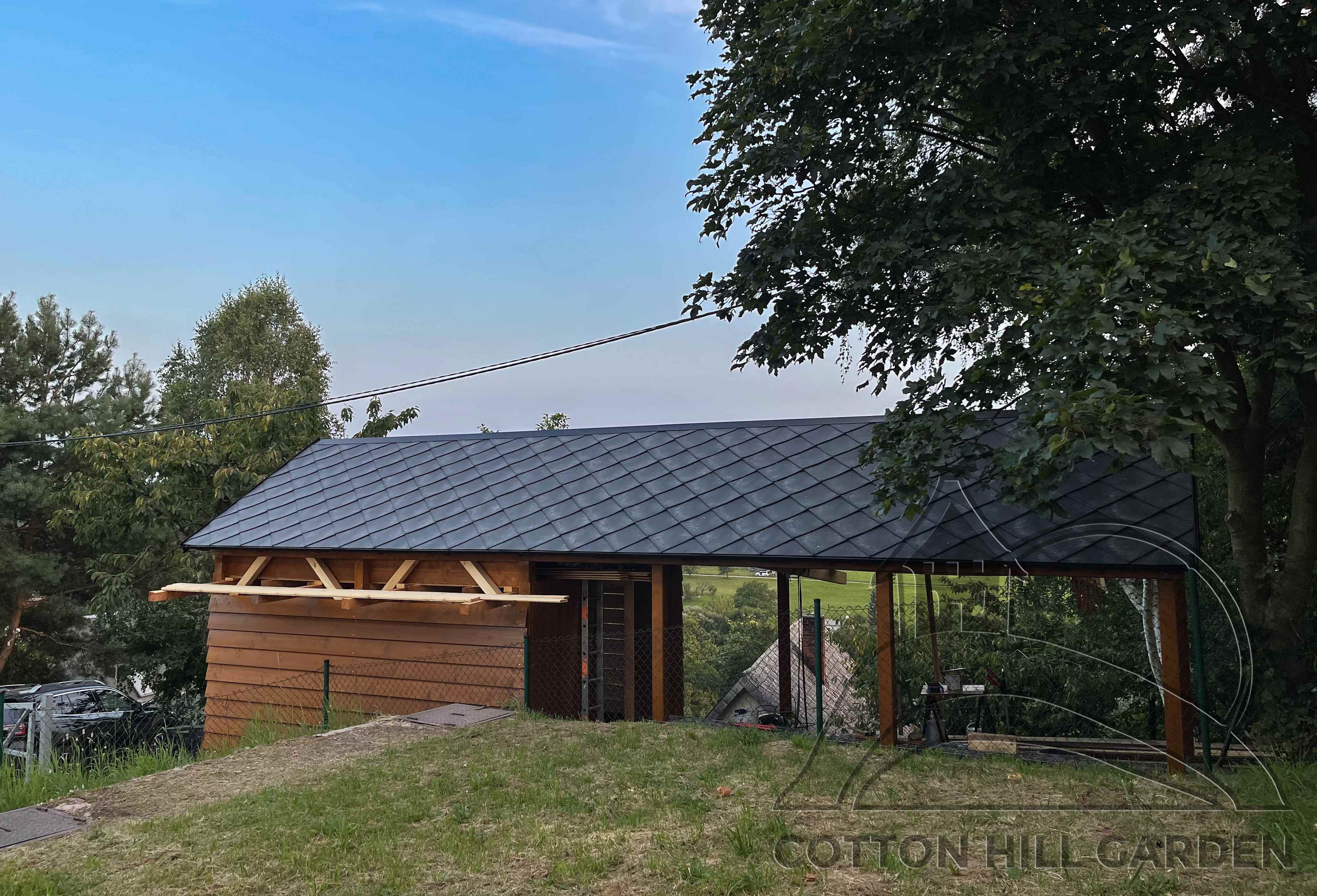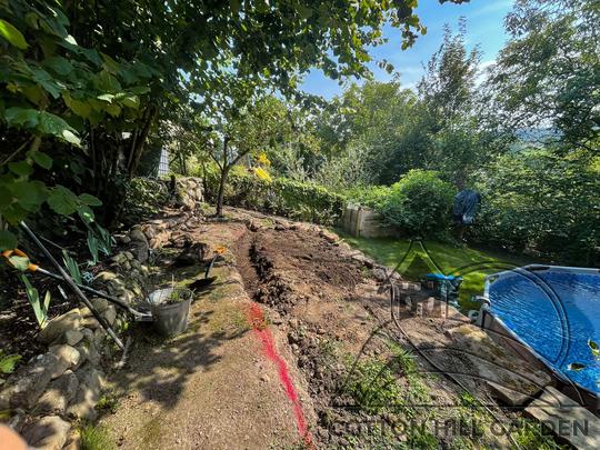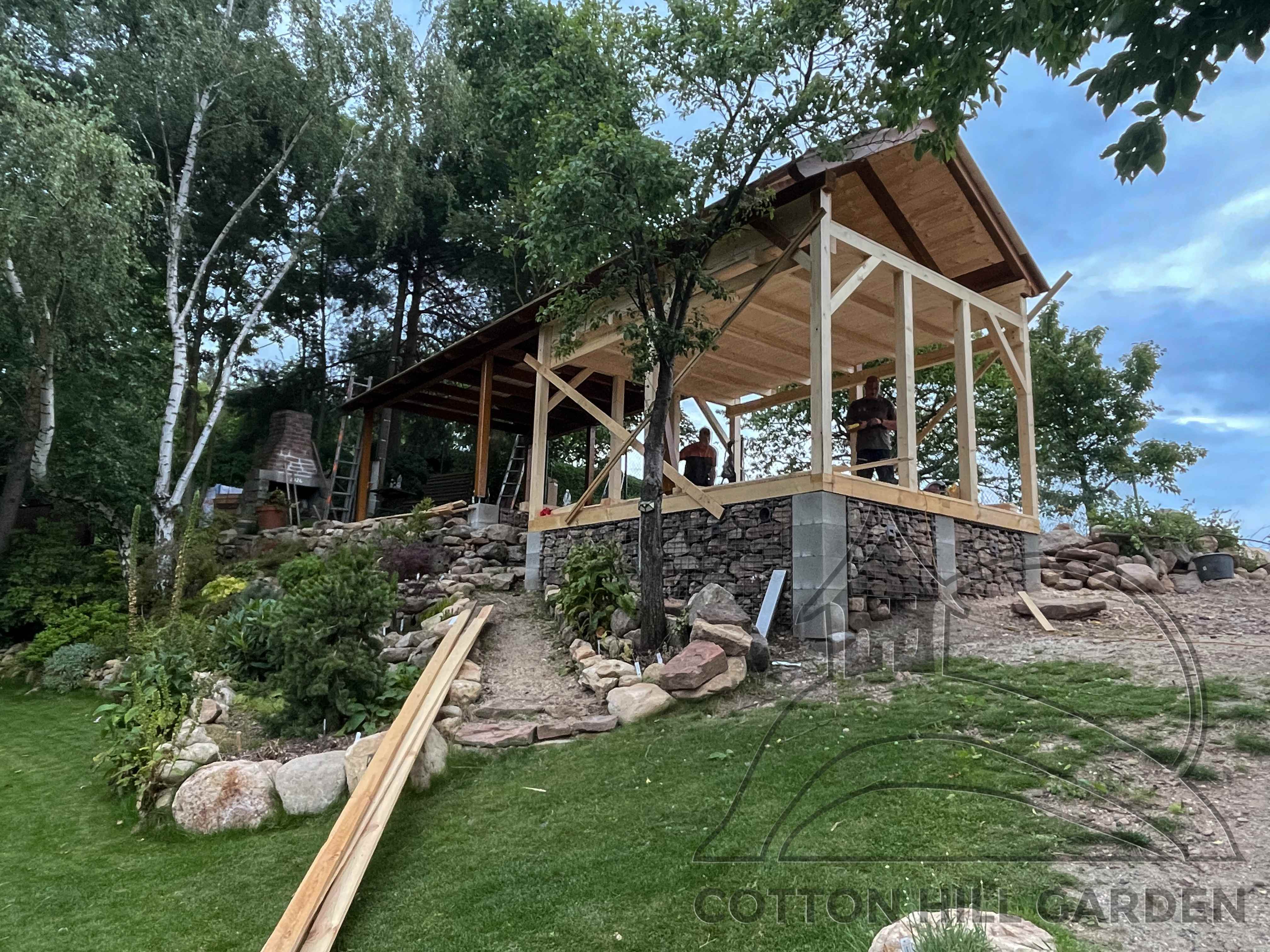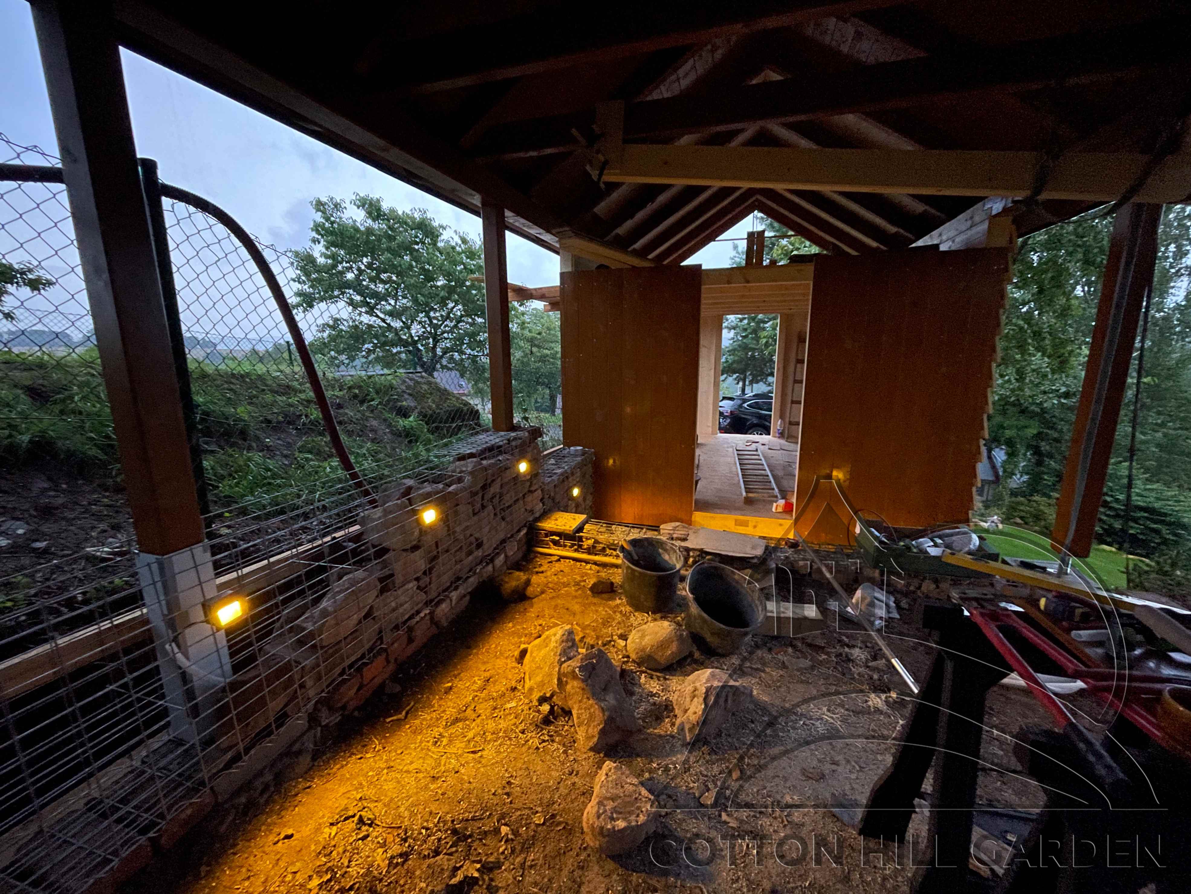 ZPŘÍSTUPNÍ DŮM PRO ÚČELY BUDOUCÍ STAVBY, VYTVÁŘÍ TRAVNATOU TERASU S KRÁSNÝM VÝHLEDEM DO KRAJINY. V NEPOSLEDNÍ ŘADĚ TARAS BUDE DOMOVEM ČAROVĚNÍKŮ, AZALEK A SKALNIČEK.