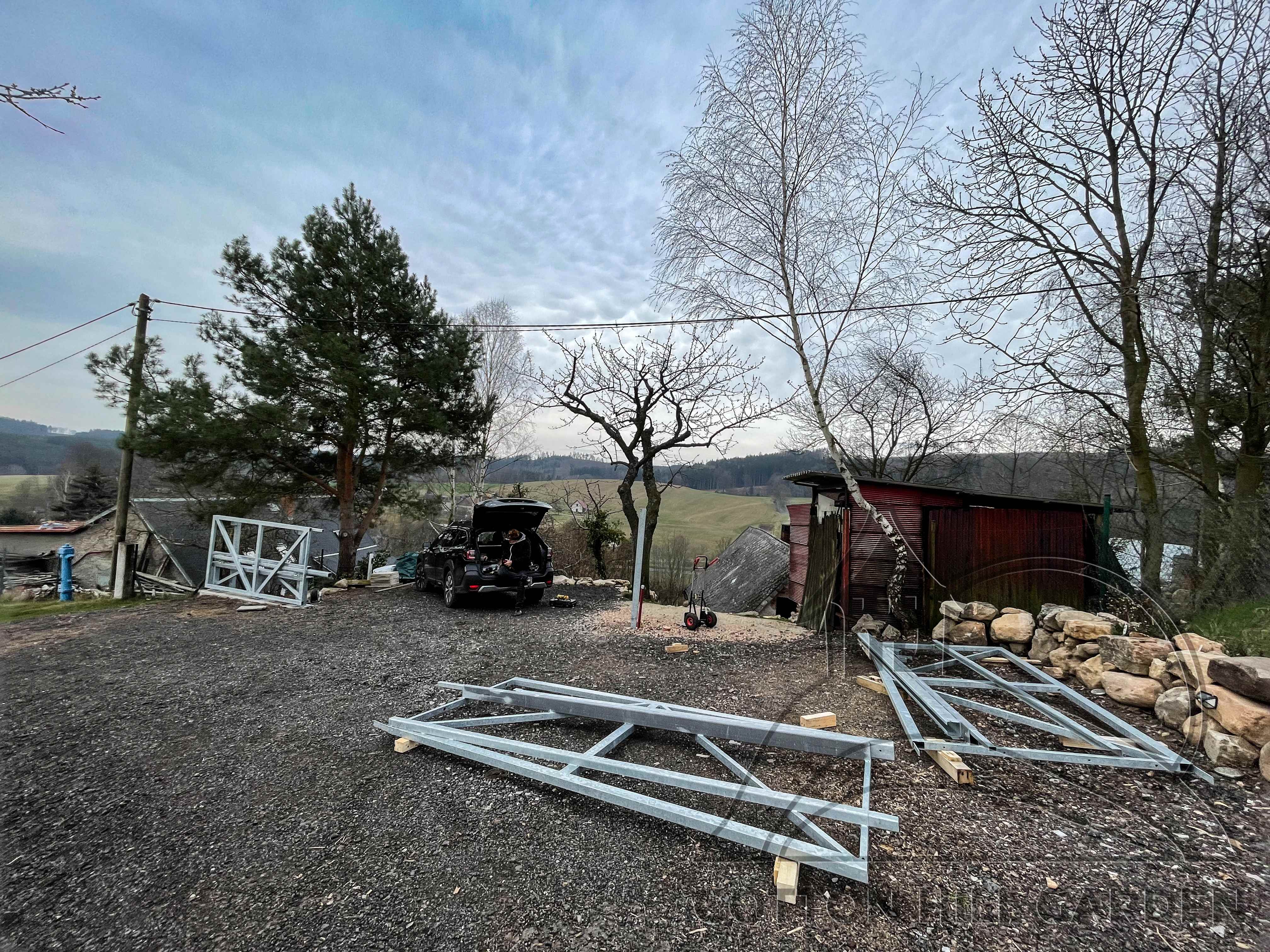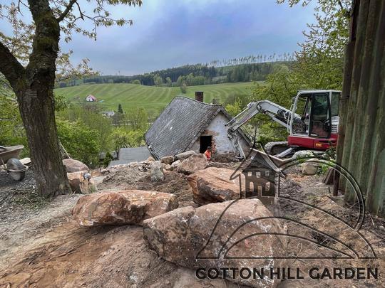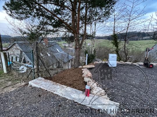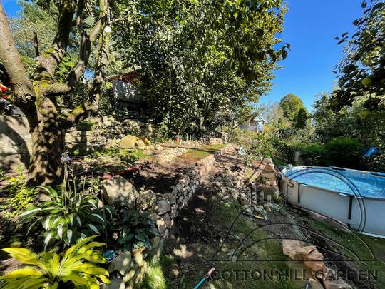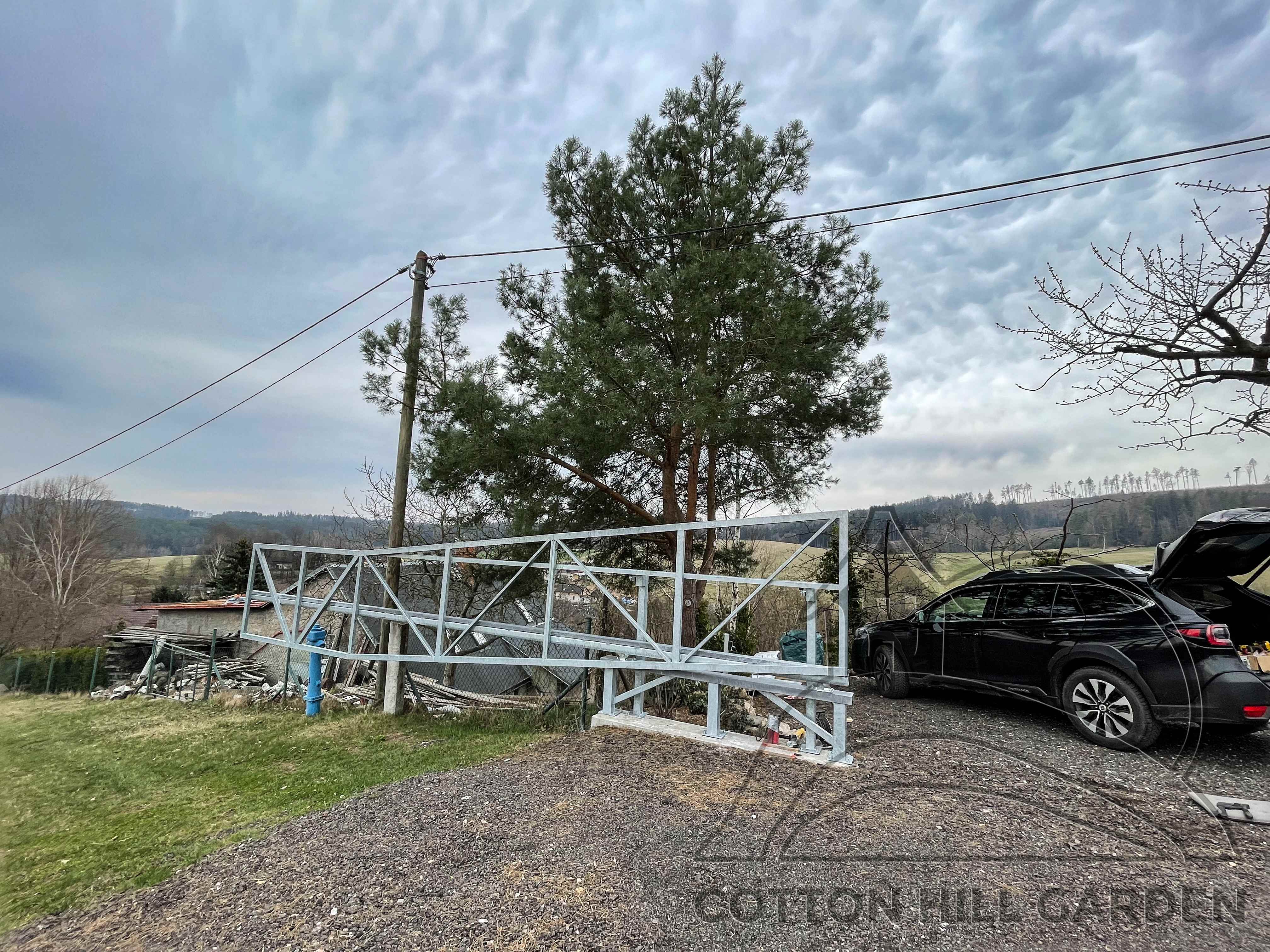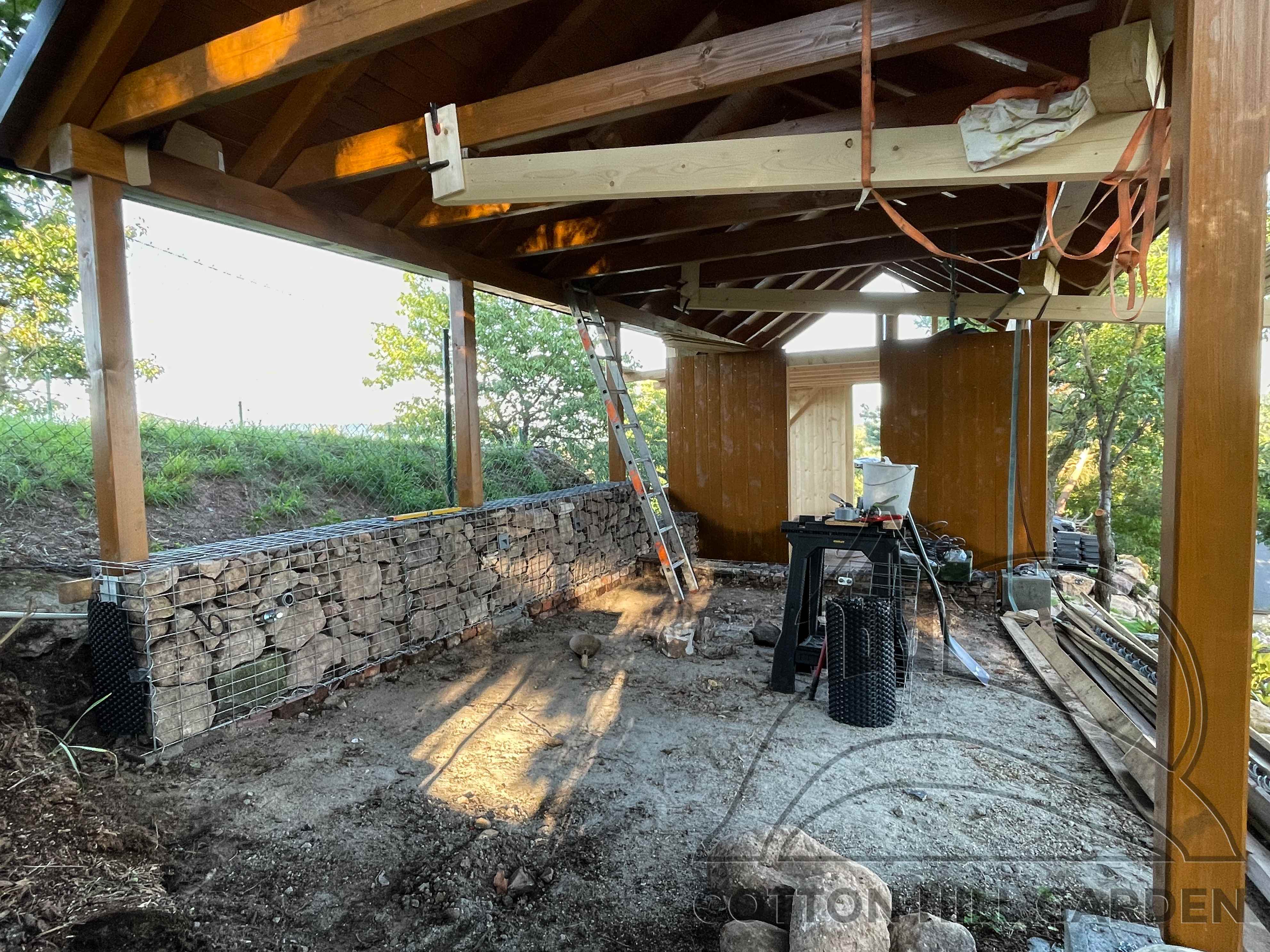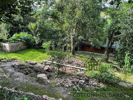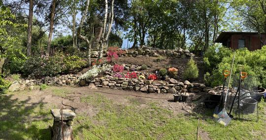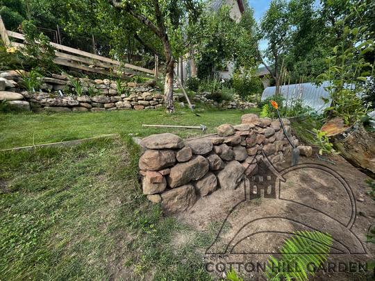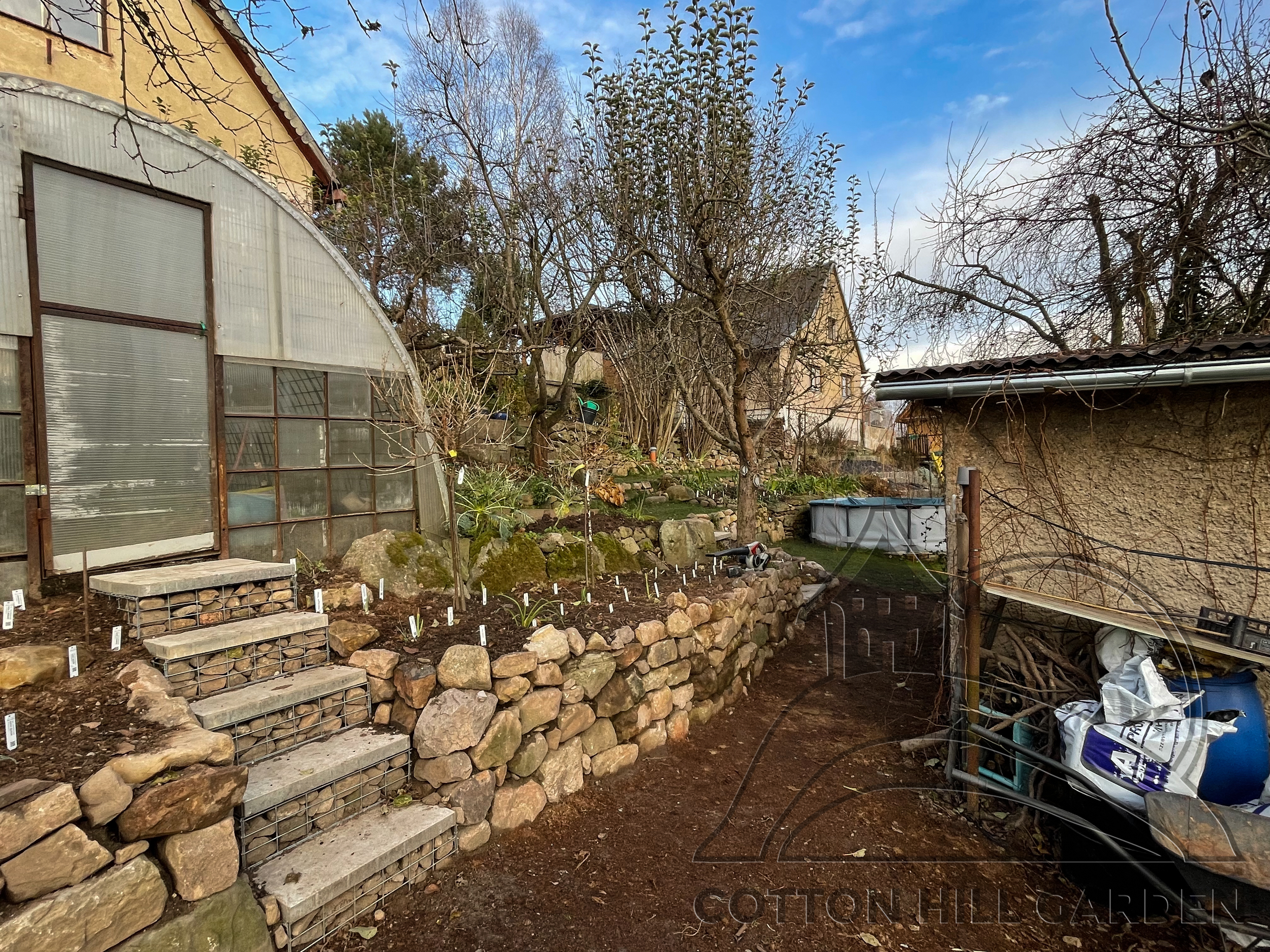 ZPŘÍSTUPNÍ DŮM PRO ÚČELY BUDOUCÍ STAVBY, VYTVÁŘÍ TRAVNATOU TERASU S KRÁSNÝM VÝHLEDEM DO KRAJINY. V NEPOSLEDNÍ ŘADĚ TARAS BUDE DOMOVEM ČAROVĚNÍKŮ, AZALEK A SKALNIČEK.