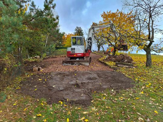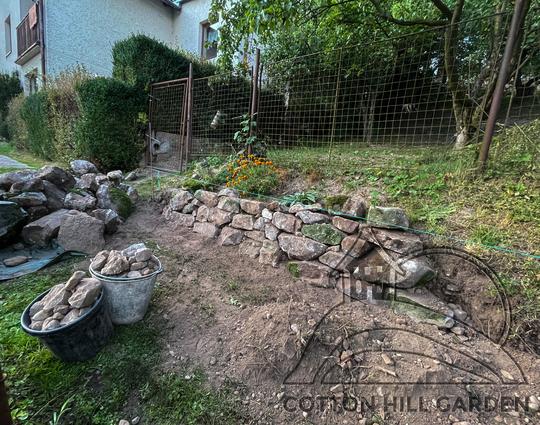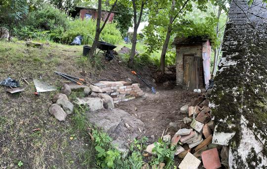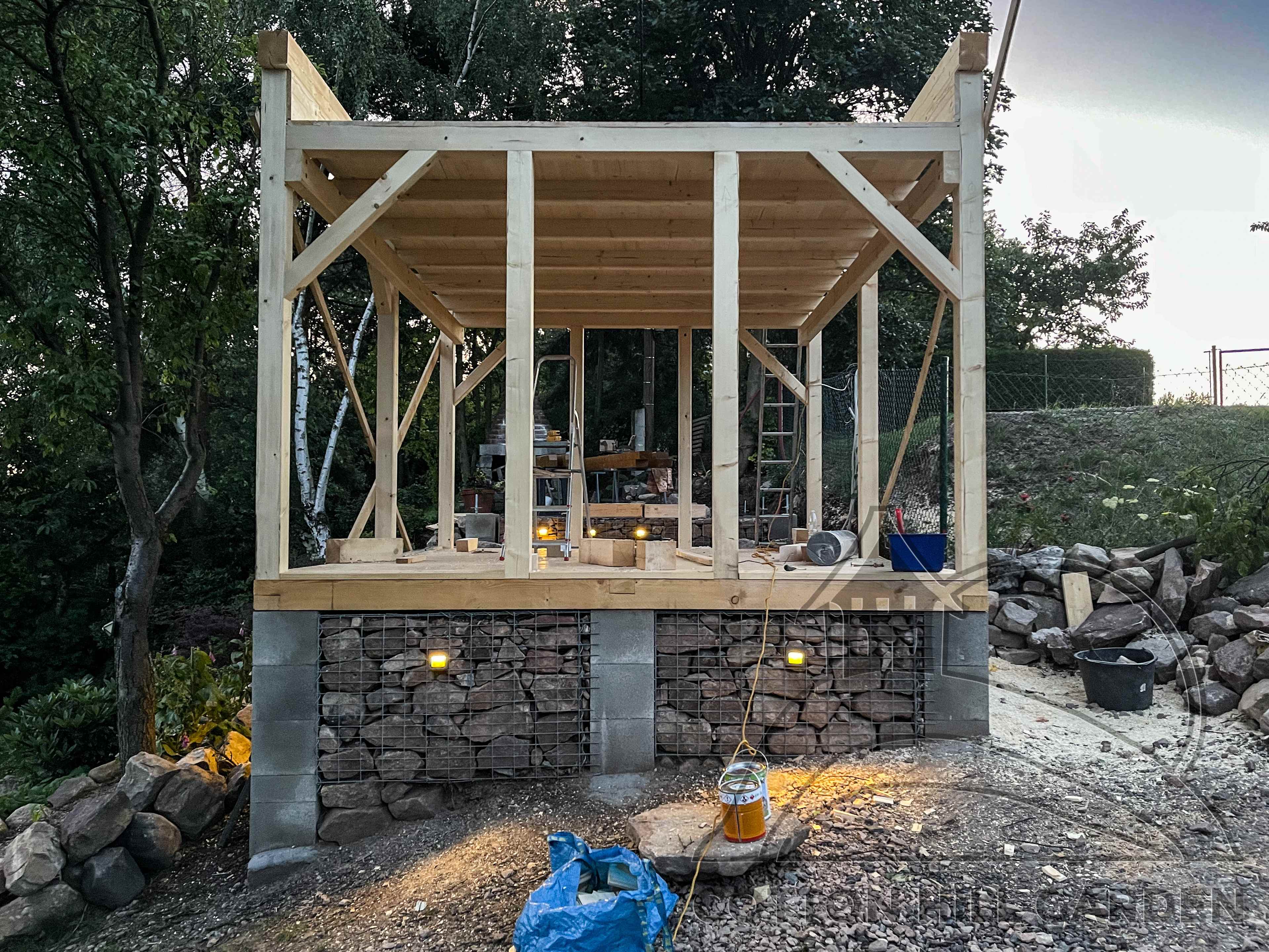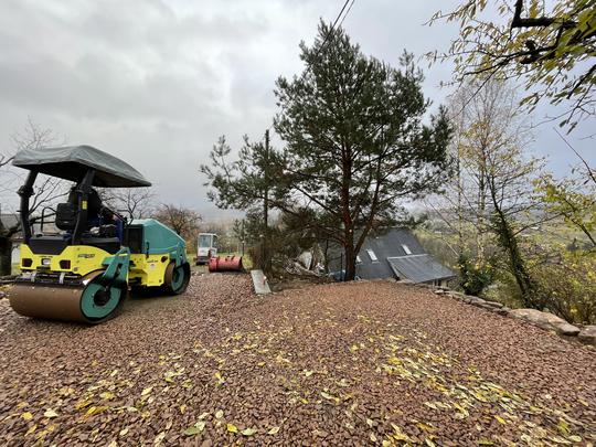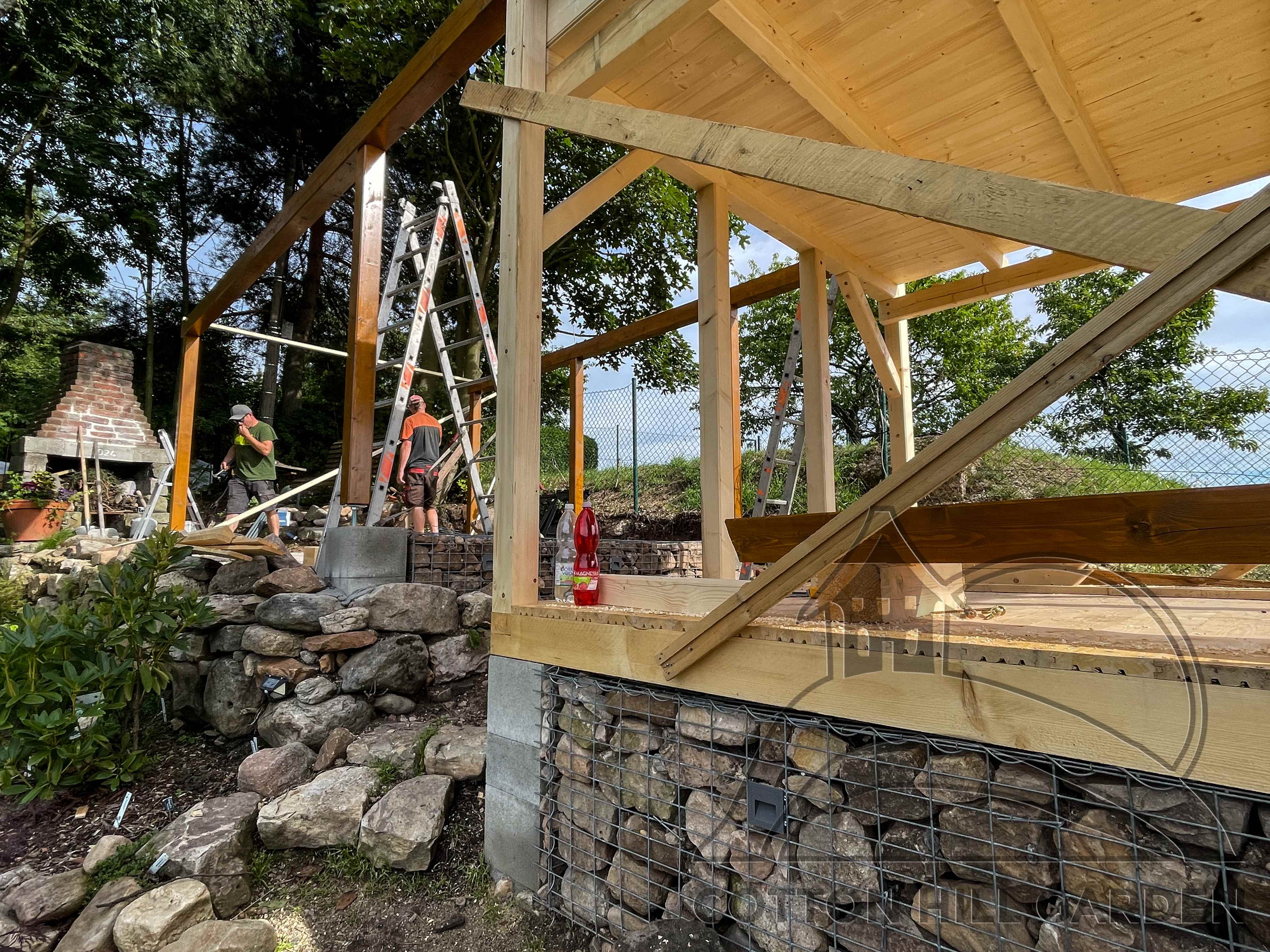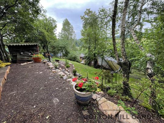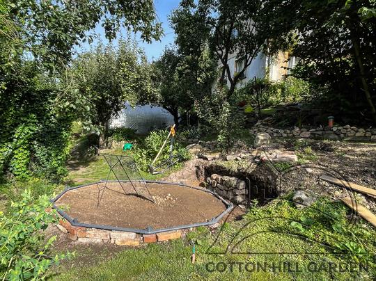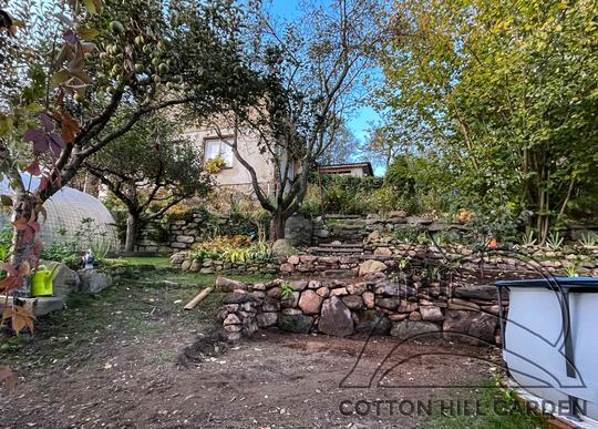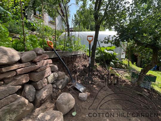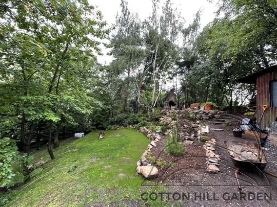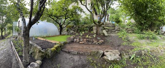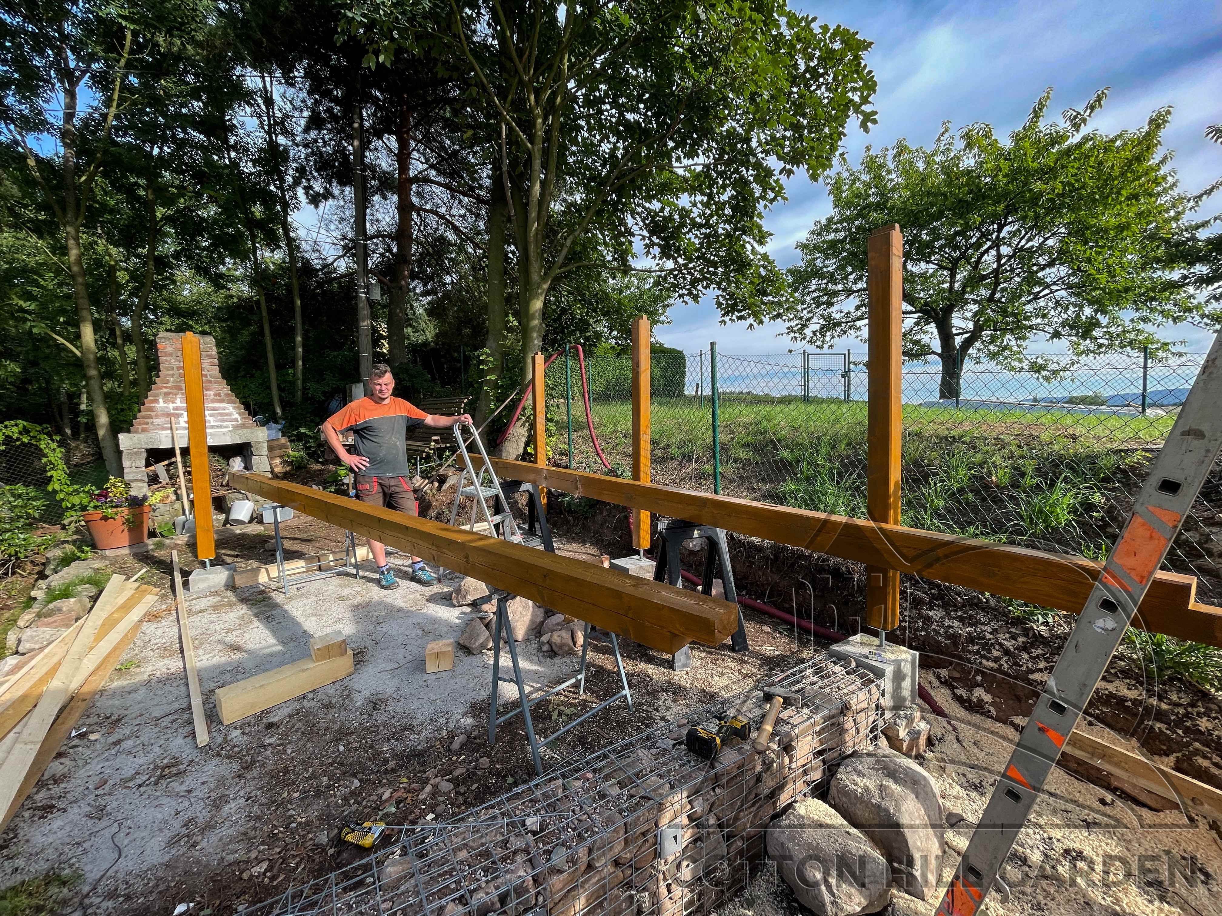 ZPŘÍSTUPNÍ DŮM PRO ÚČELY BUDOUCÍ STAVBY, VYTVÁŘÍ TRAVNATOU TERASU S KRÁSNÝM VÝHLEDEM DO KRAJINY. V NEPOSLEDNÍ ŘADĚ TARAS BUDE DOMOVEM ČAROVĚNÍKŮ, AZALEK A SKALNIČEK.