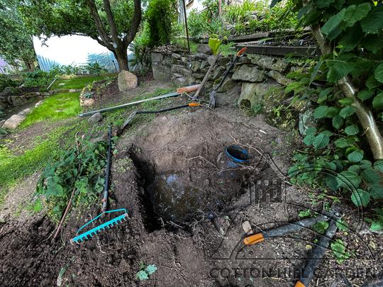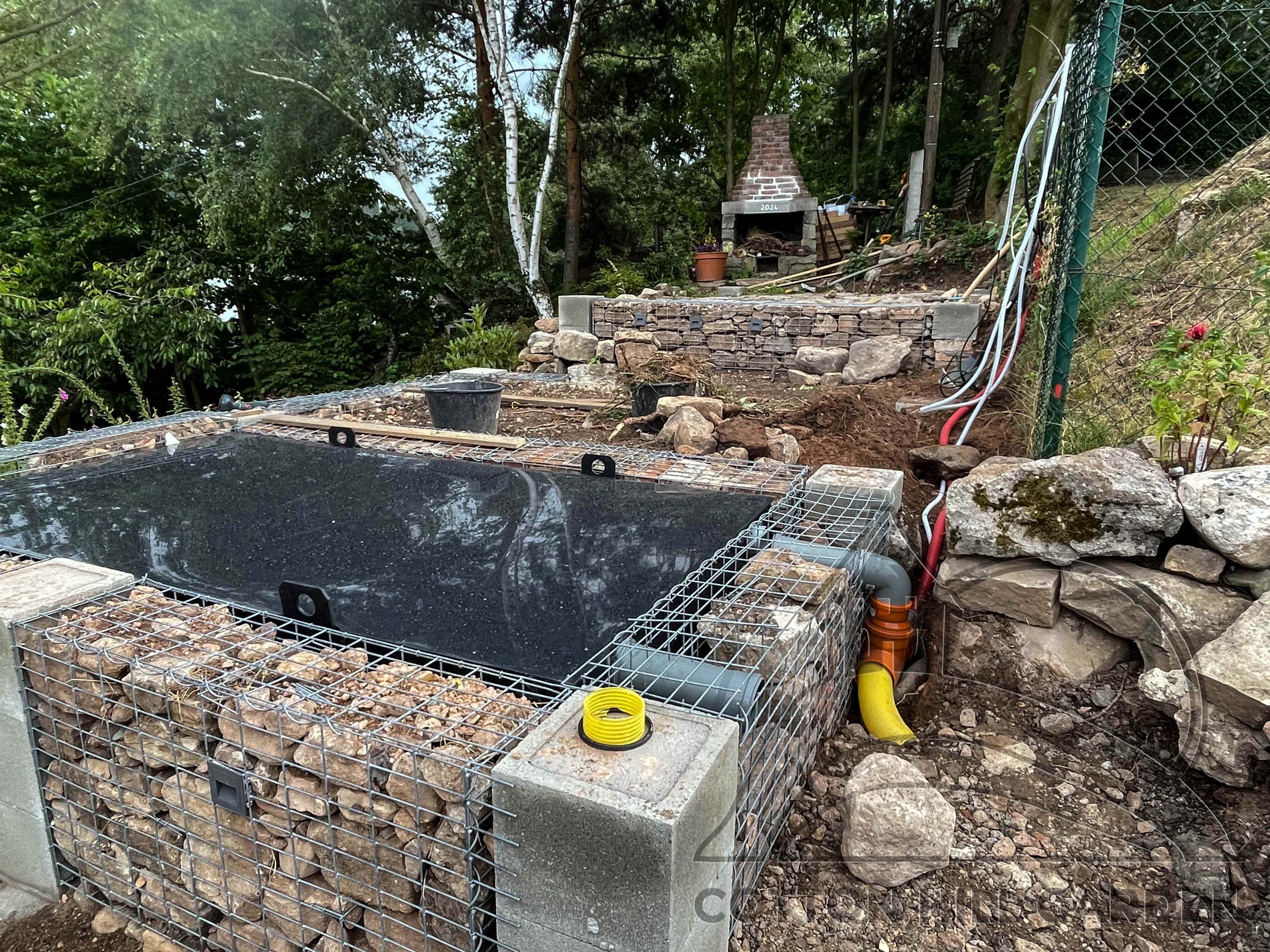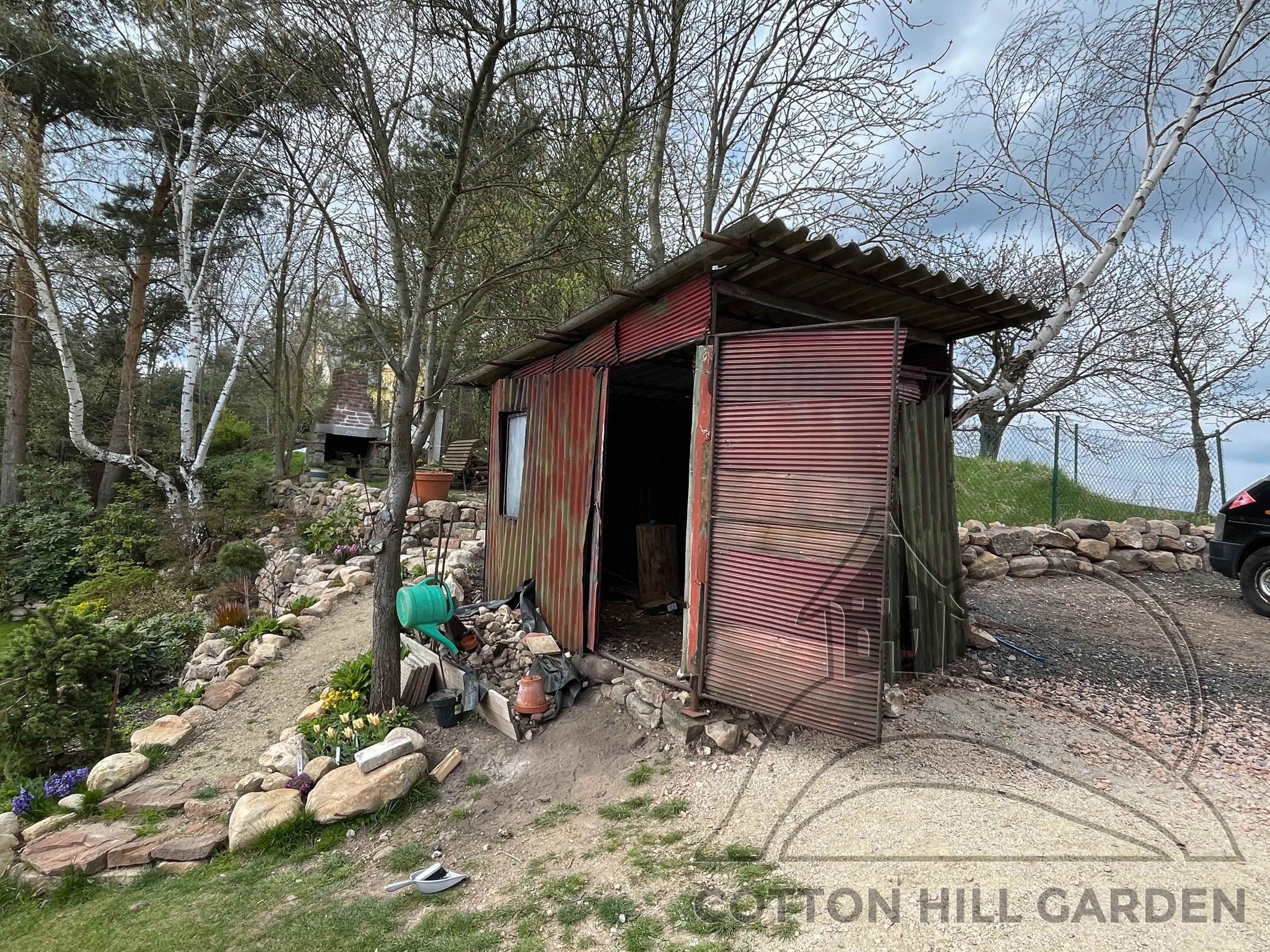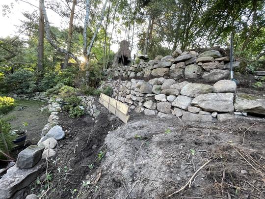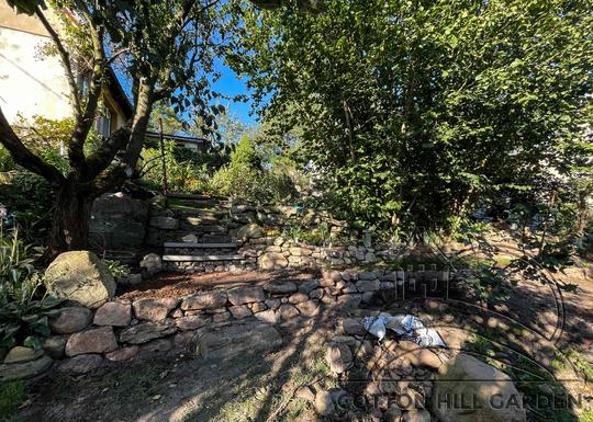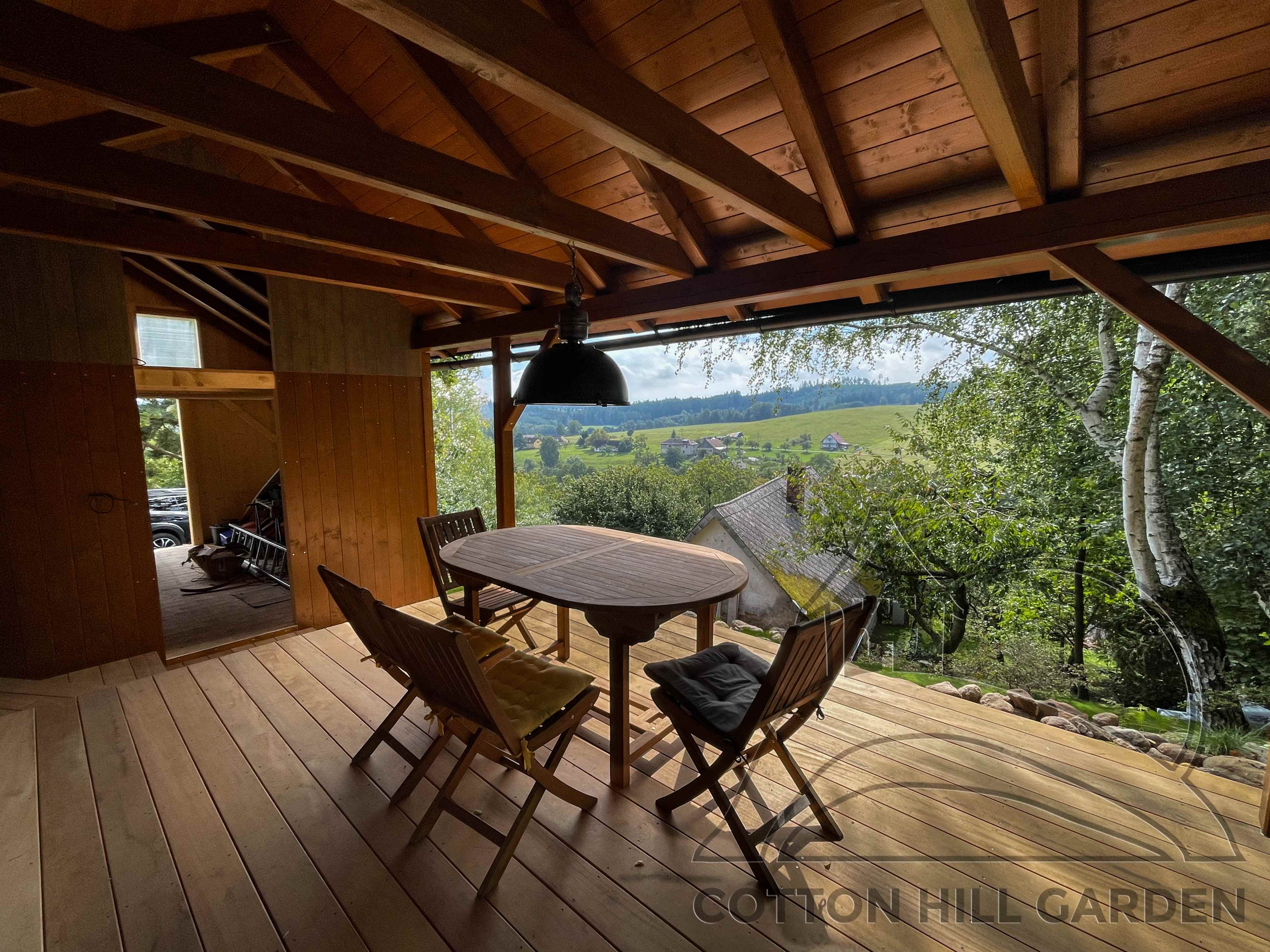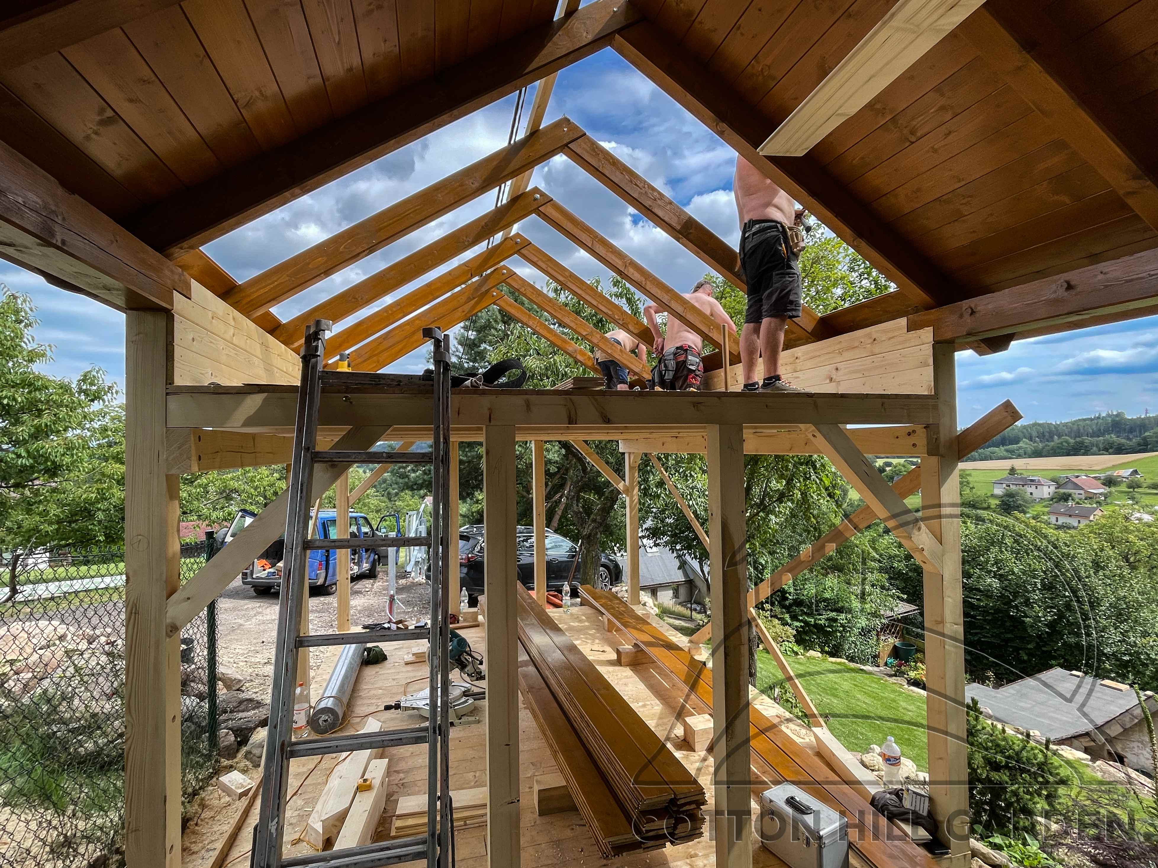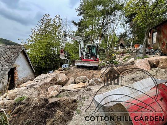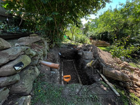 ZPŘÍSTUPNÍ DŮM PRO ÚČELY BUDOUCÍ STAVBY, VYTVÁŘÍ TRAVNATOU TERASU S KRÁSNÝM VÝHLEDEM DO KRAJINY. V NEPOSLEDNÍ ŘADĚ TARAS BUDE DOMOVEM ČAROVĚNÍKŮ, AZALEK A SKALNIČEK.