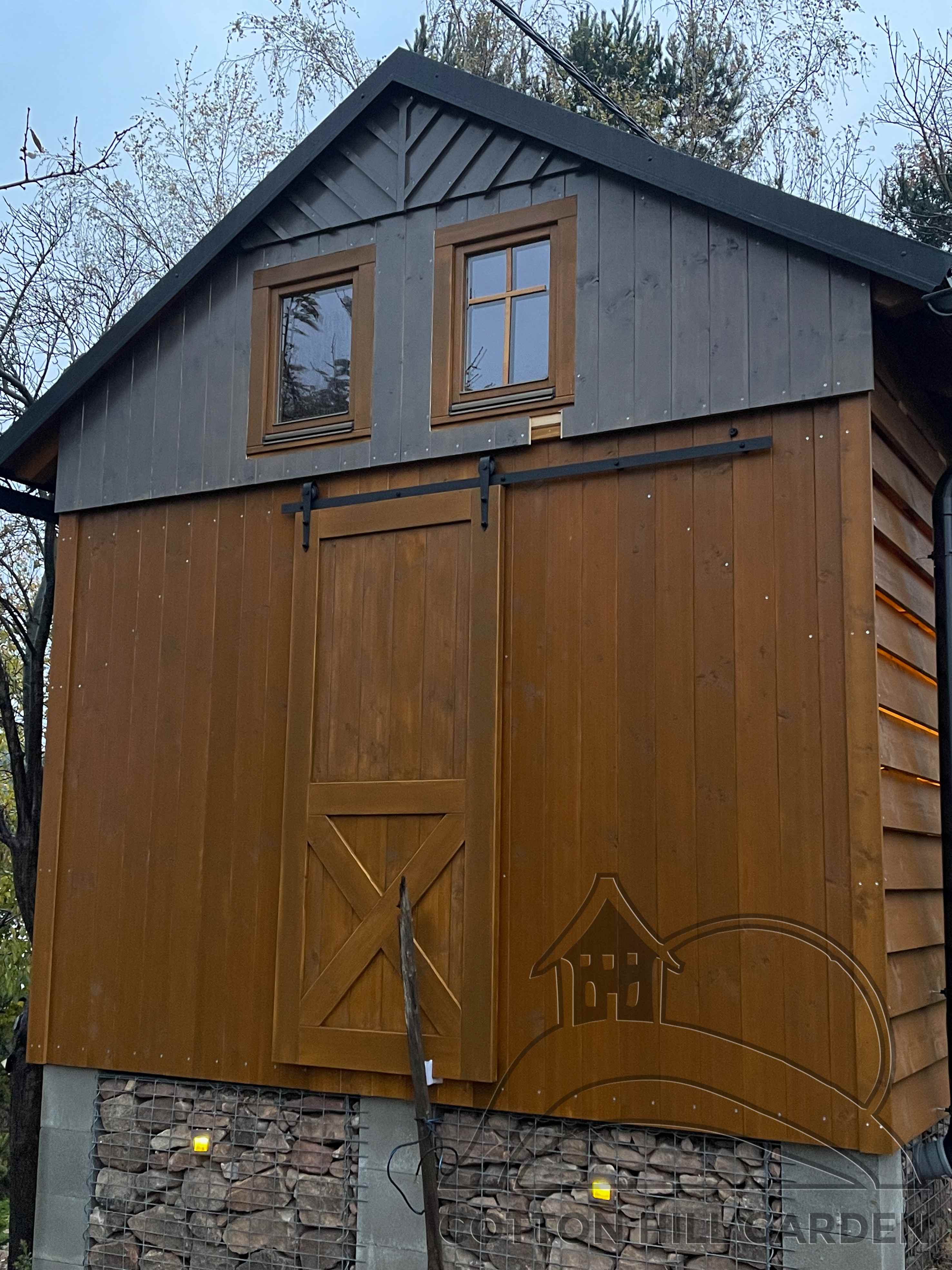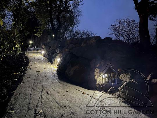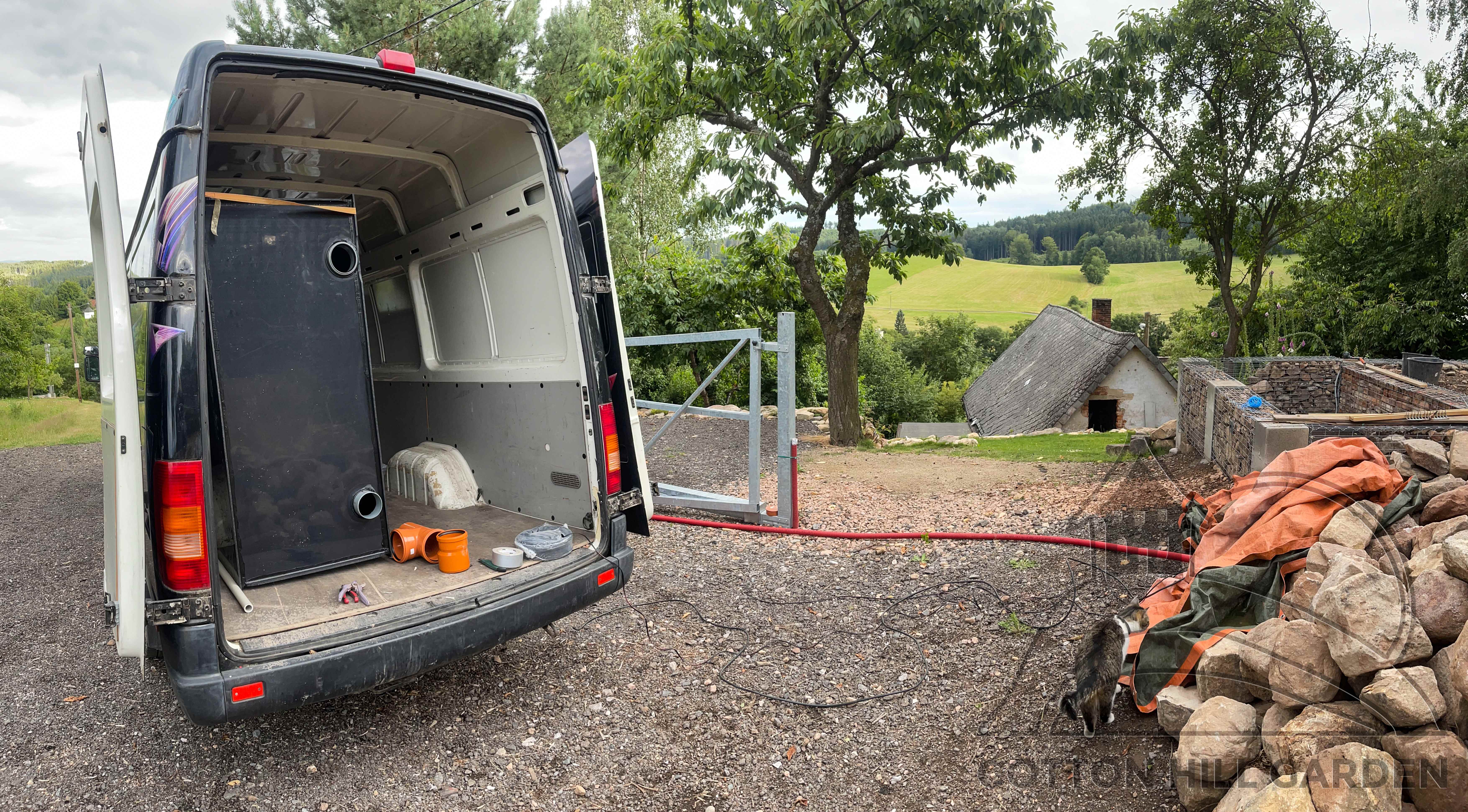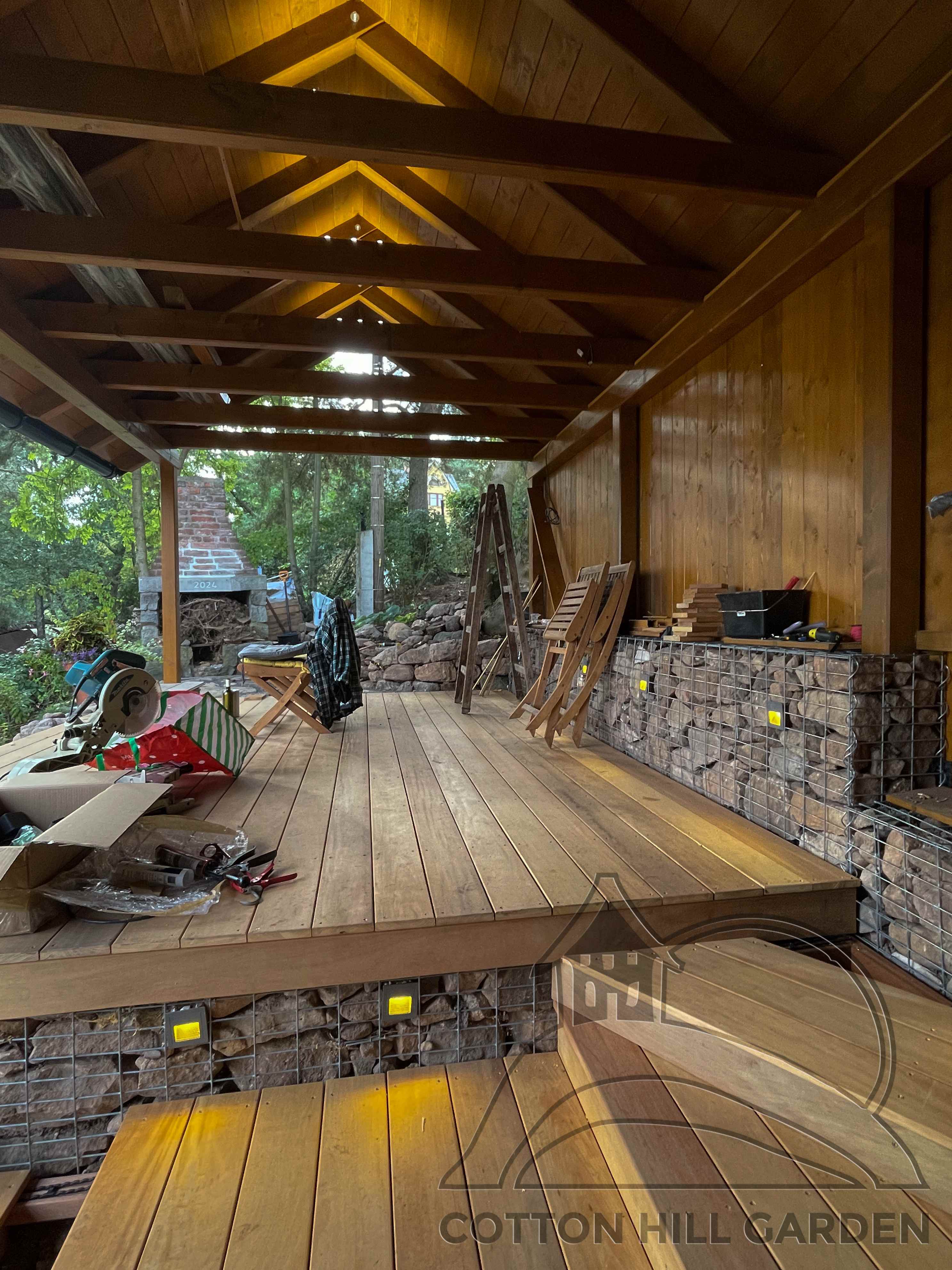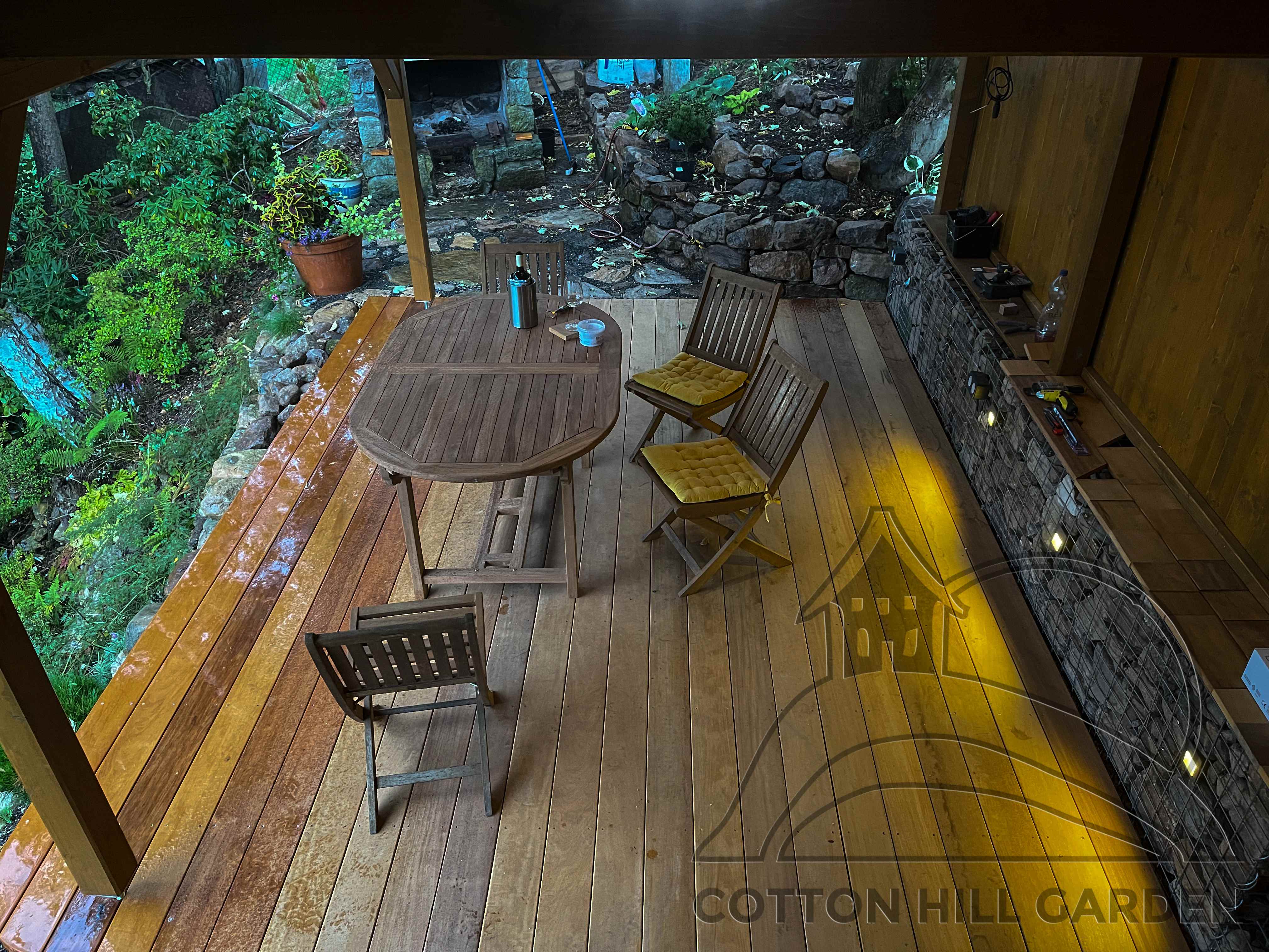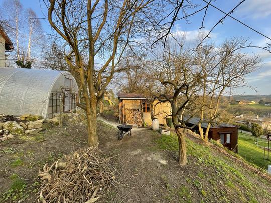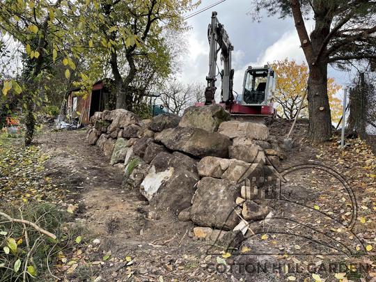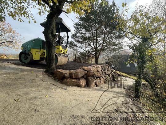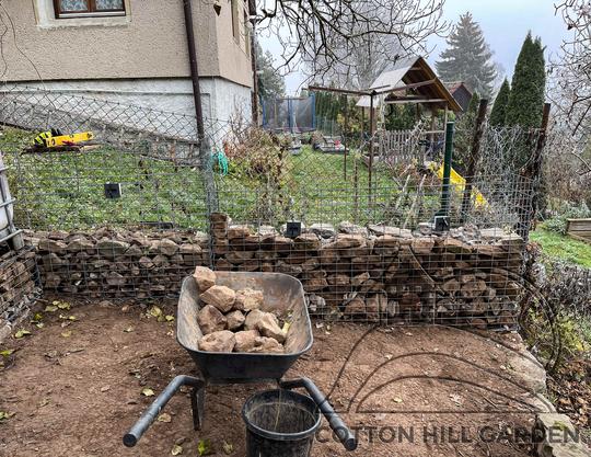 ZPŘÍSTUPNÍ DŮM PRO ÚČELY BUDOUCÍ STAVBY, VYTVÁŘÍ TRAVNATOU TERASU S KRÁSNÝM VÝHLEDEM DO KRAJINY. V NEPOSLEDNÍ ŘADĚ TARAS BUDE DOMOVEM ČAROVĚNÍKŮ, AZALEK A SKALNIČEK.