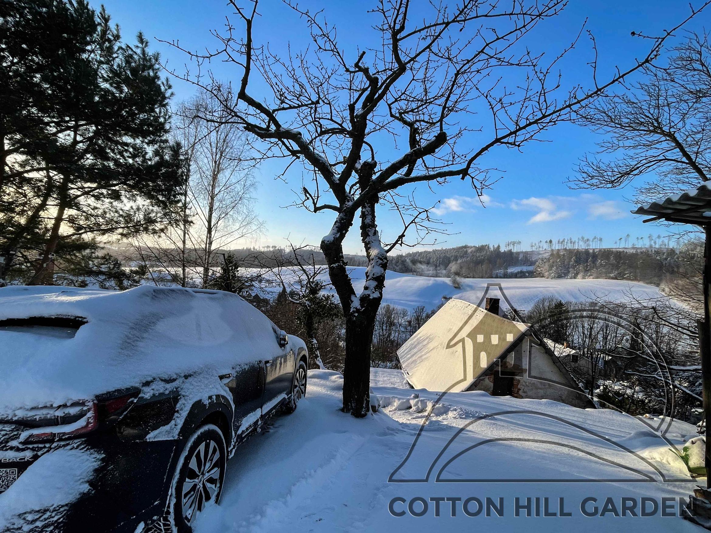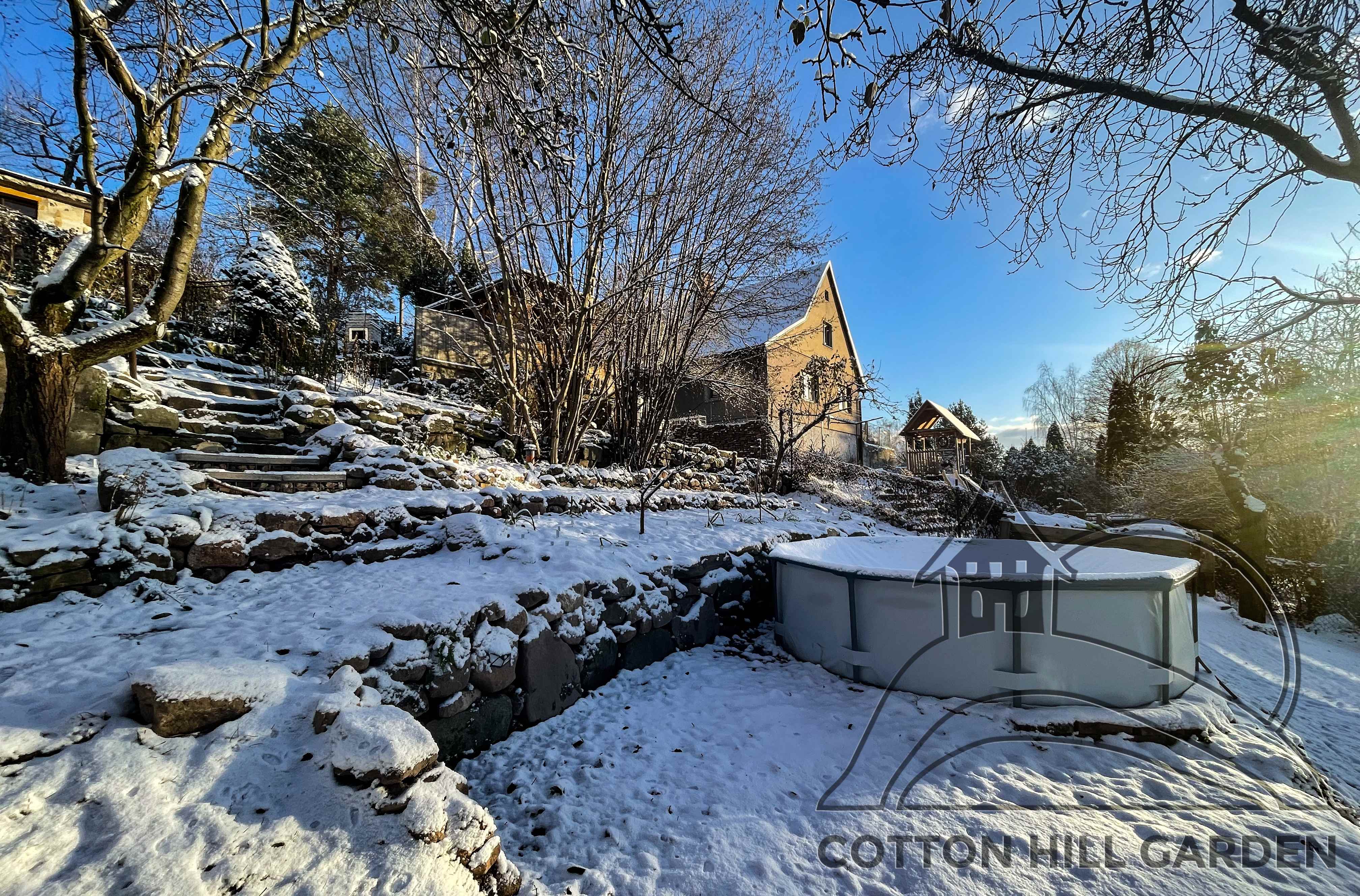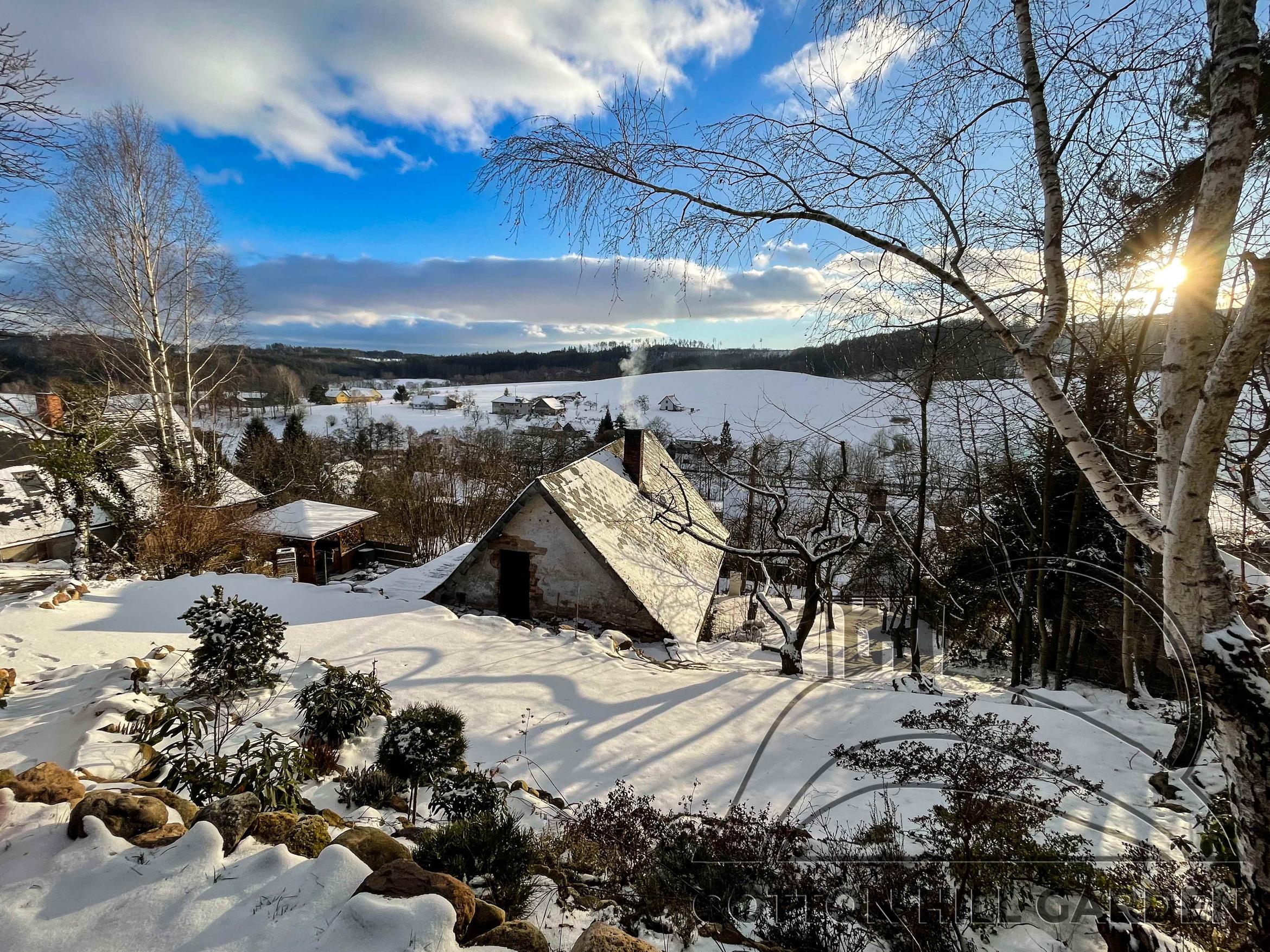 ZAHRADA JE POKRYTA SNĚHEM A VŠE ODPOČÍVÁ A NABÍRÁ SÍLU DO DEN PO DNI BLÍŽÍCÍHO JARA.