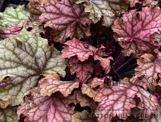 HEUCHERA - DLUŽICHA JE NEOPADAVÁ. JEJÍ PESTRÉ LISTY ZDOBÍ ZAHRADU I V ZIMNÍM OBDOBÍ.