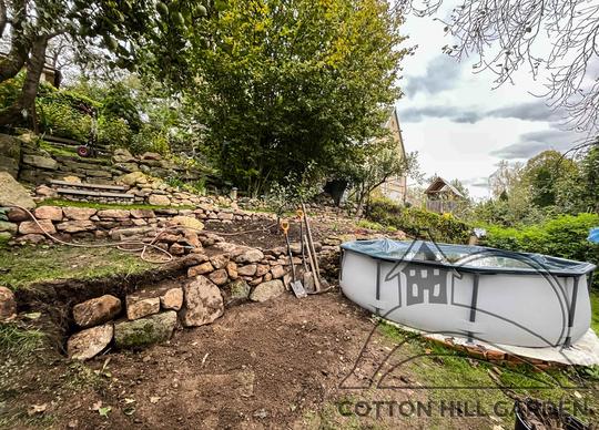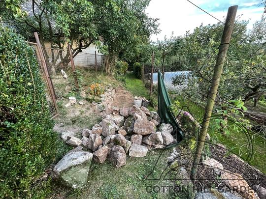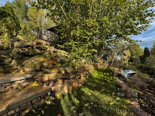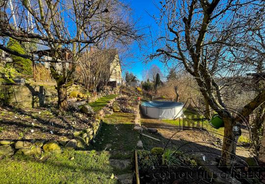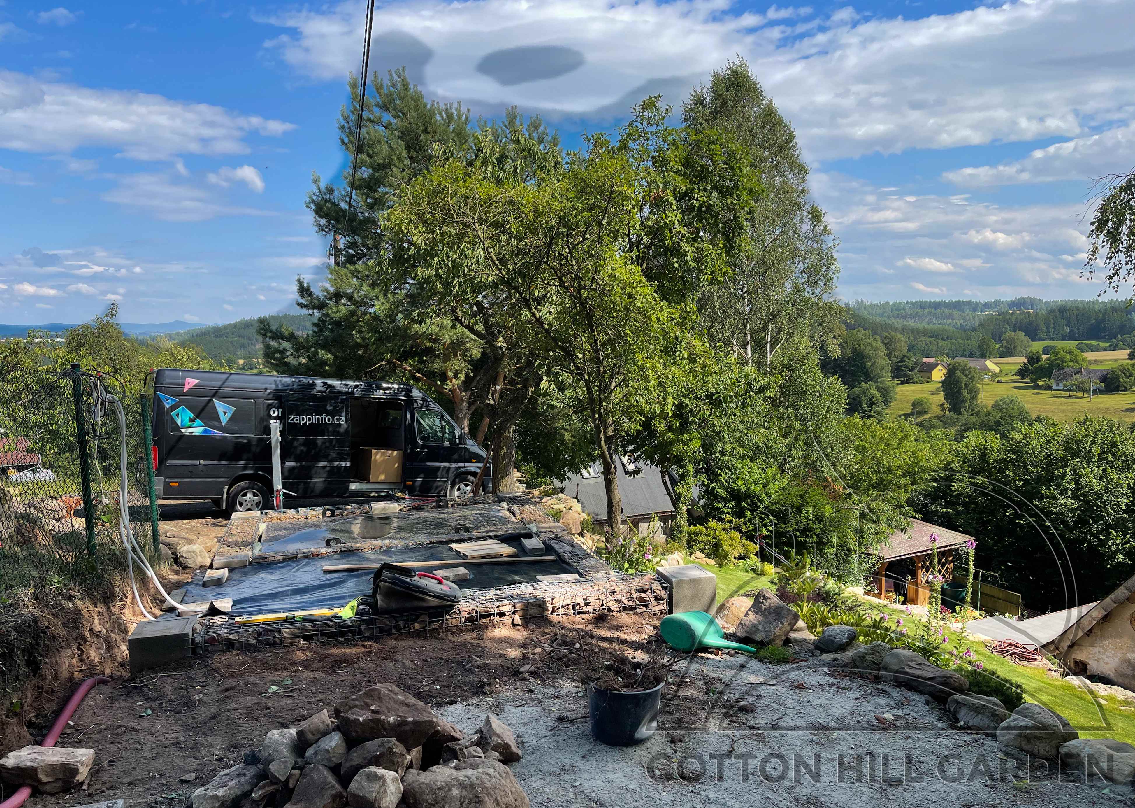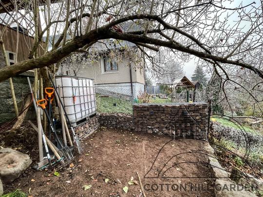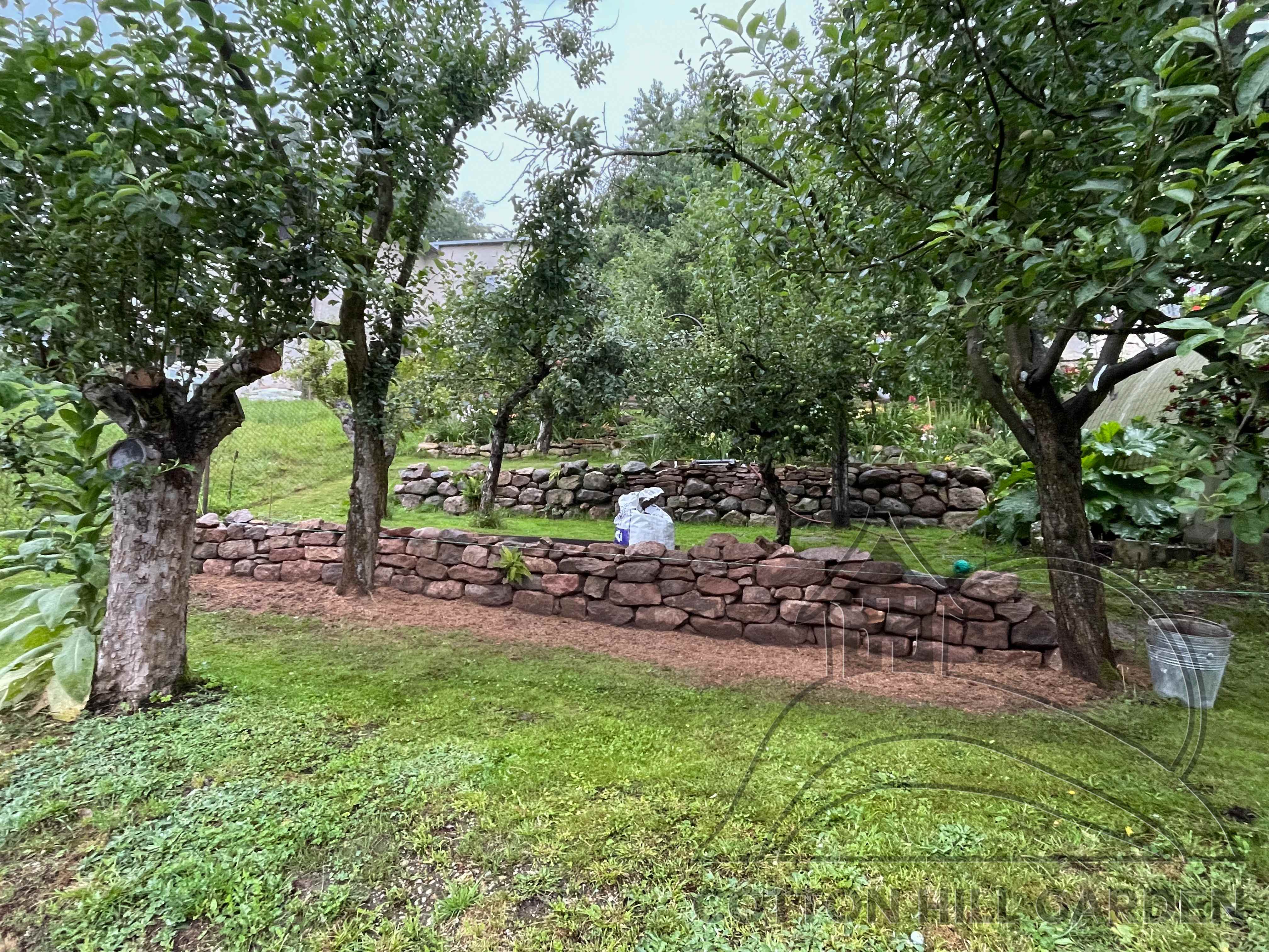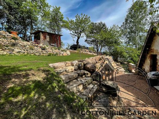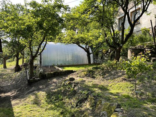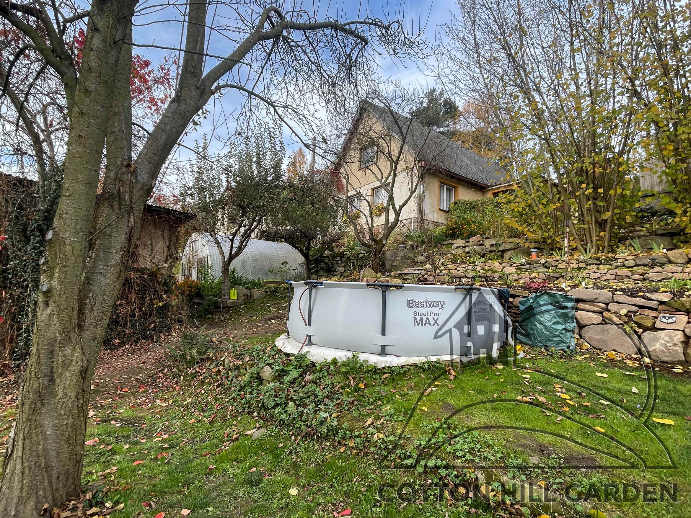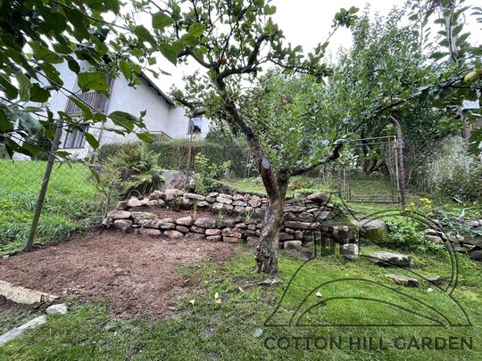 ZPŘÍSTUPNÍ DŮM PRO ÚČELY BUDOUCÍ STAVBY, VYTVÁŘÍ TRAVNATOU TERASU S KRÁSNÝM VÝHLEDEM DO KRAJINY. V NEPOSLEDNÍ ŘADĚ TARAS BUDE DOMOVEM ČAROVĚNÍKŮ, AZALEK A SKALNIČEK.