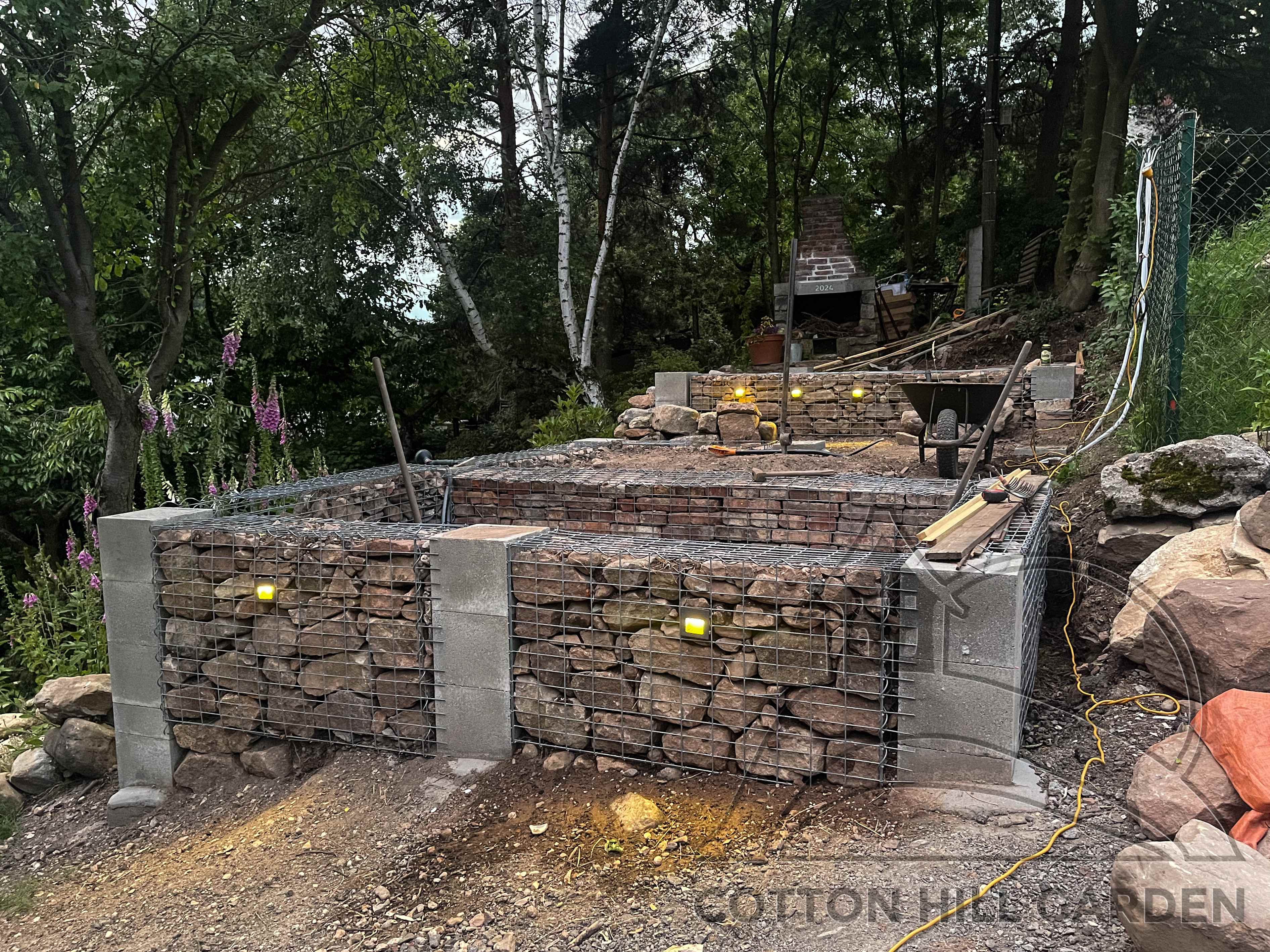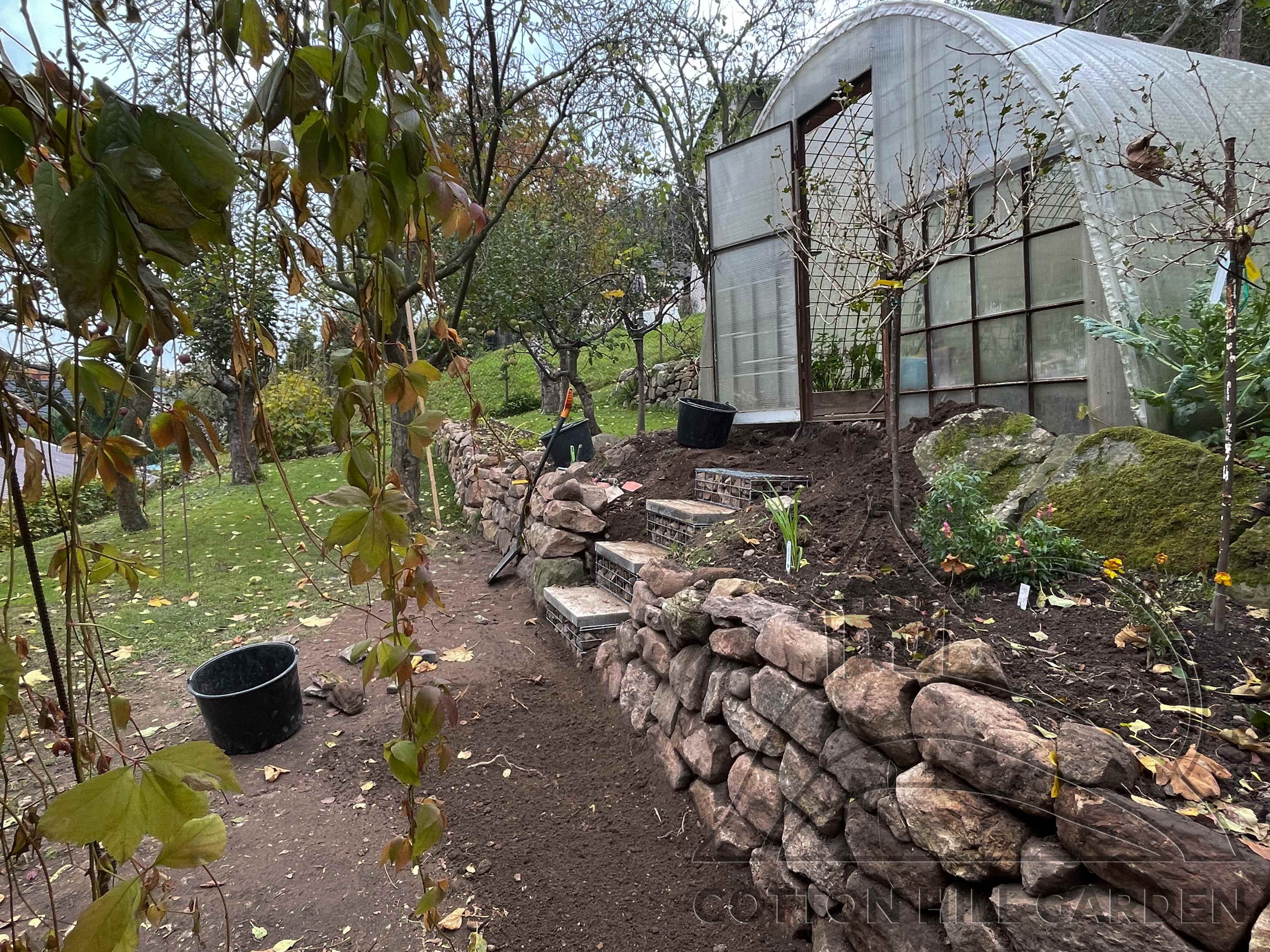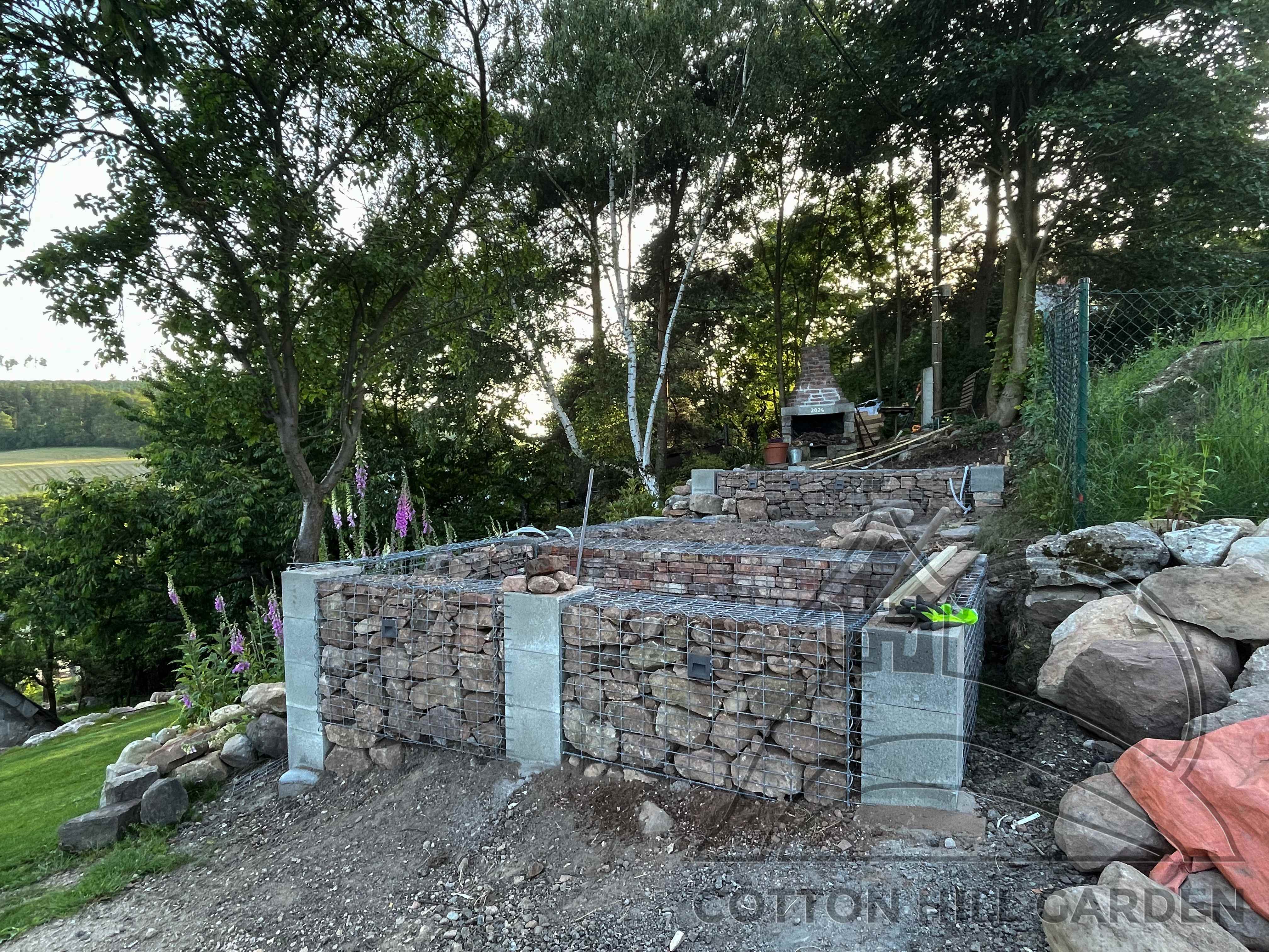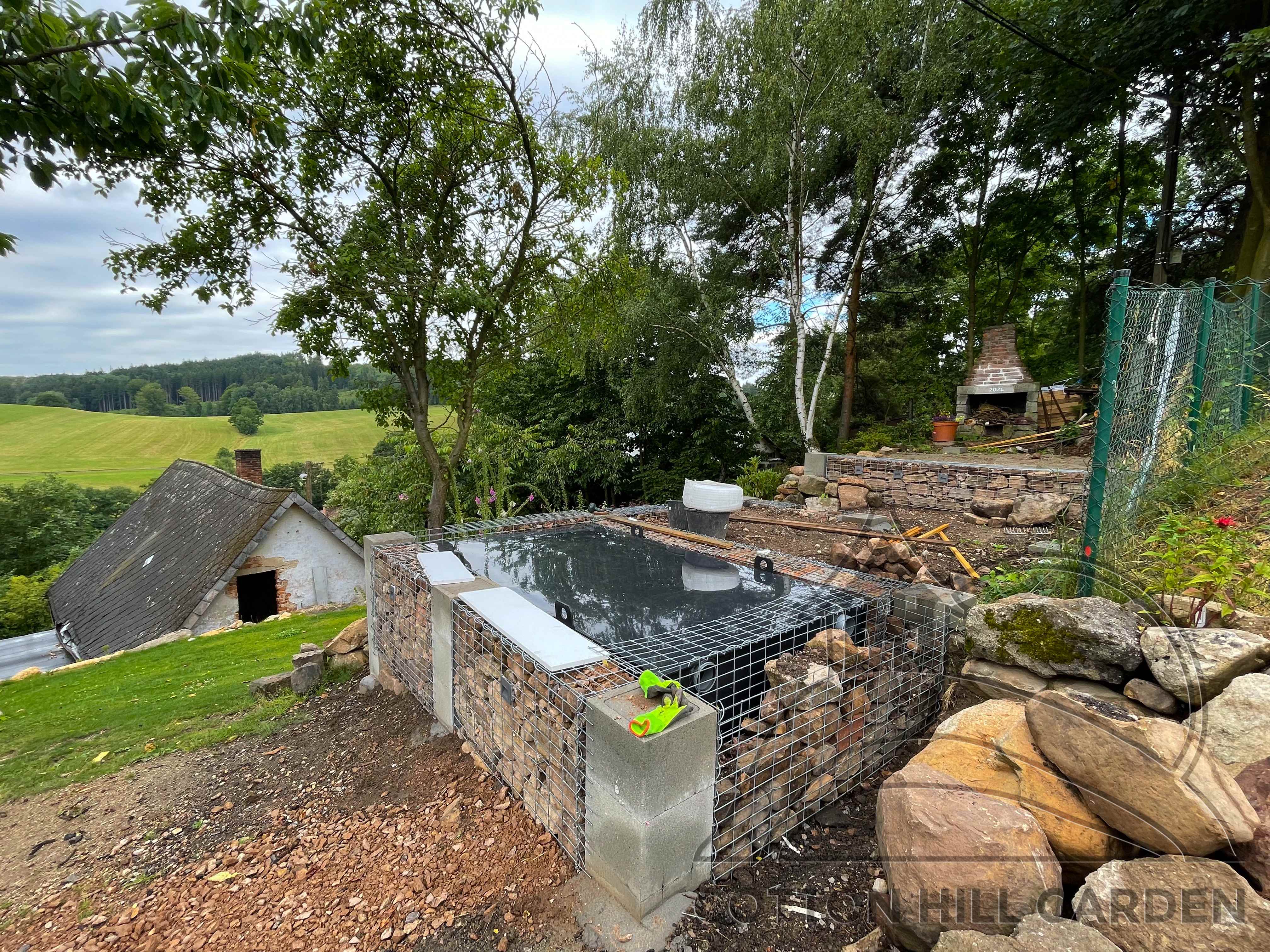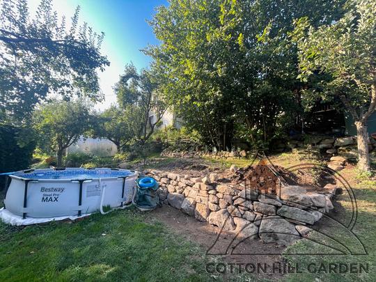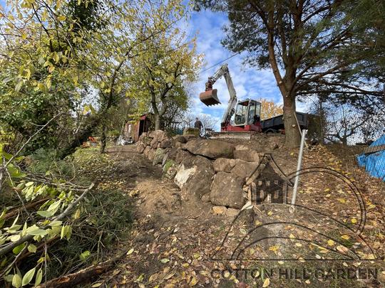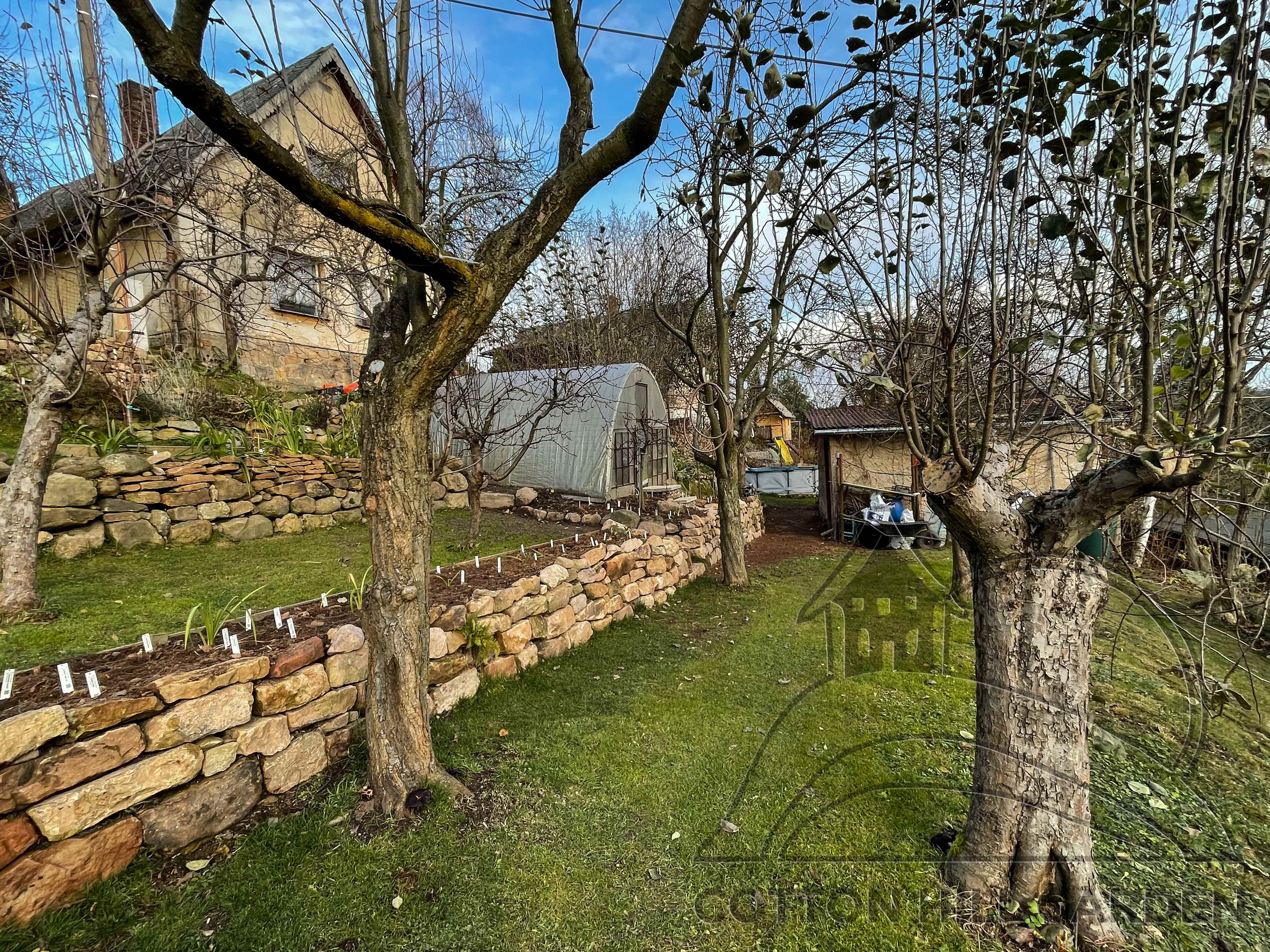 ZPŘÍSTUPNÍ DŮM PRO ÚČELY BUDOUCÍ STAVBY, VYTVÁŘÍ TRAVNATOU TERASU S KRÁSNÝM VÝHLEDEM DO KRAJINY. V NEPOSLEDNÍ ŘADĚ TARAS BUDE DOMOVEM ČAROVĚNÍKŮ, AZALEK A SKALNIČEK.