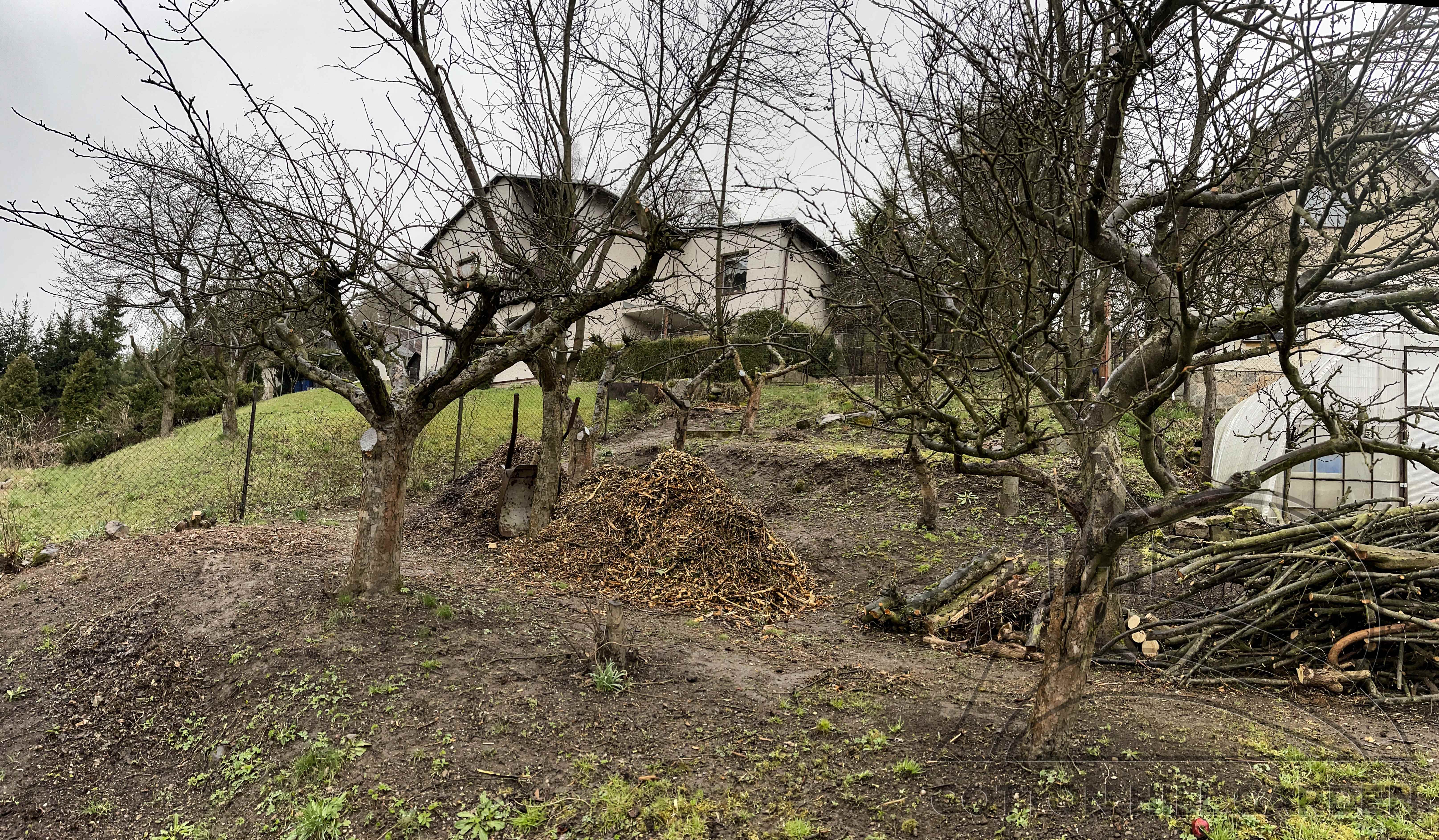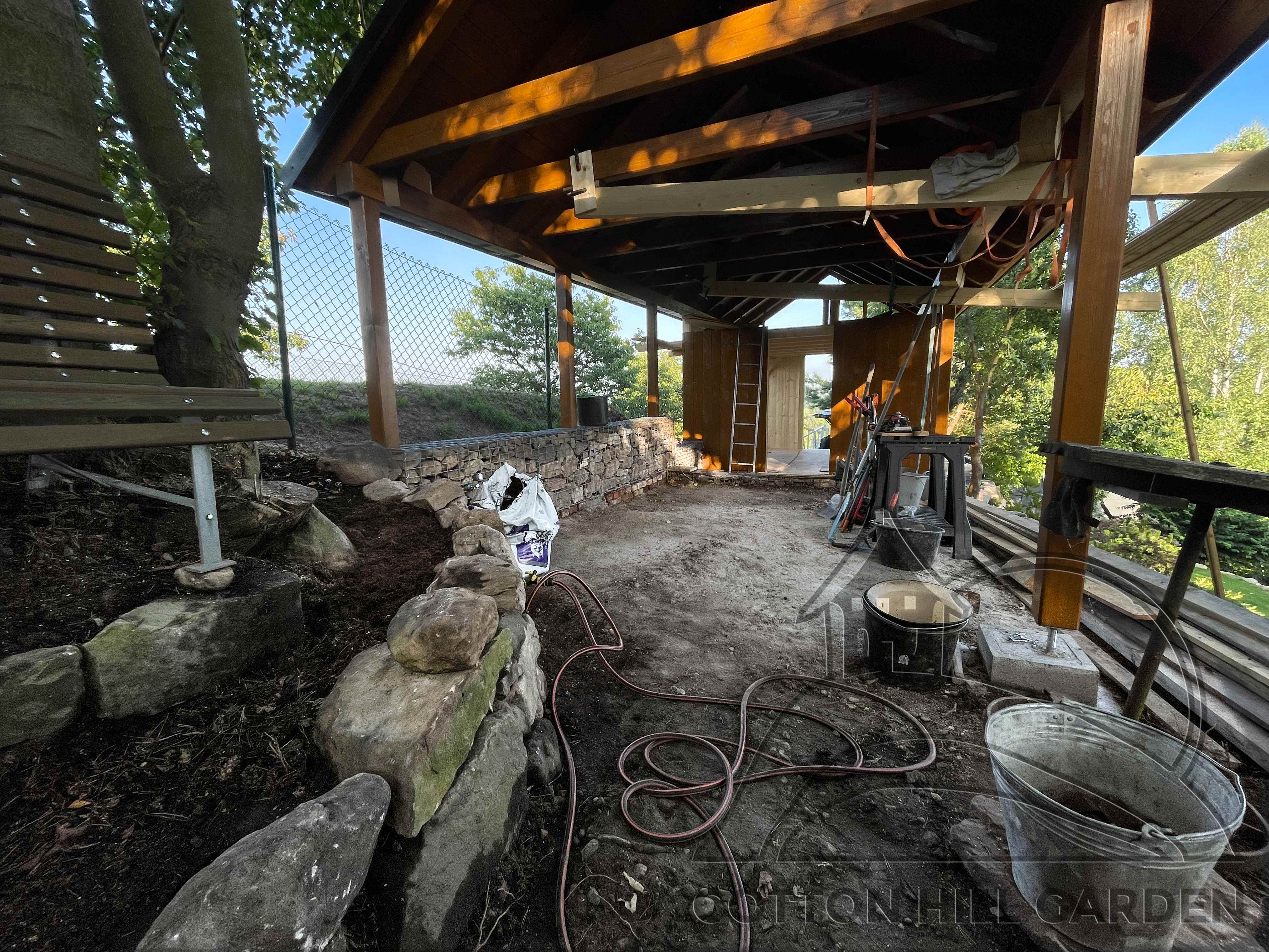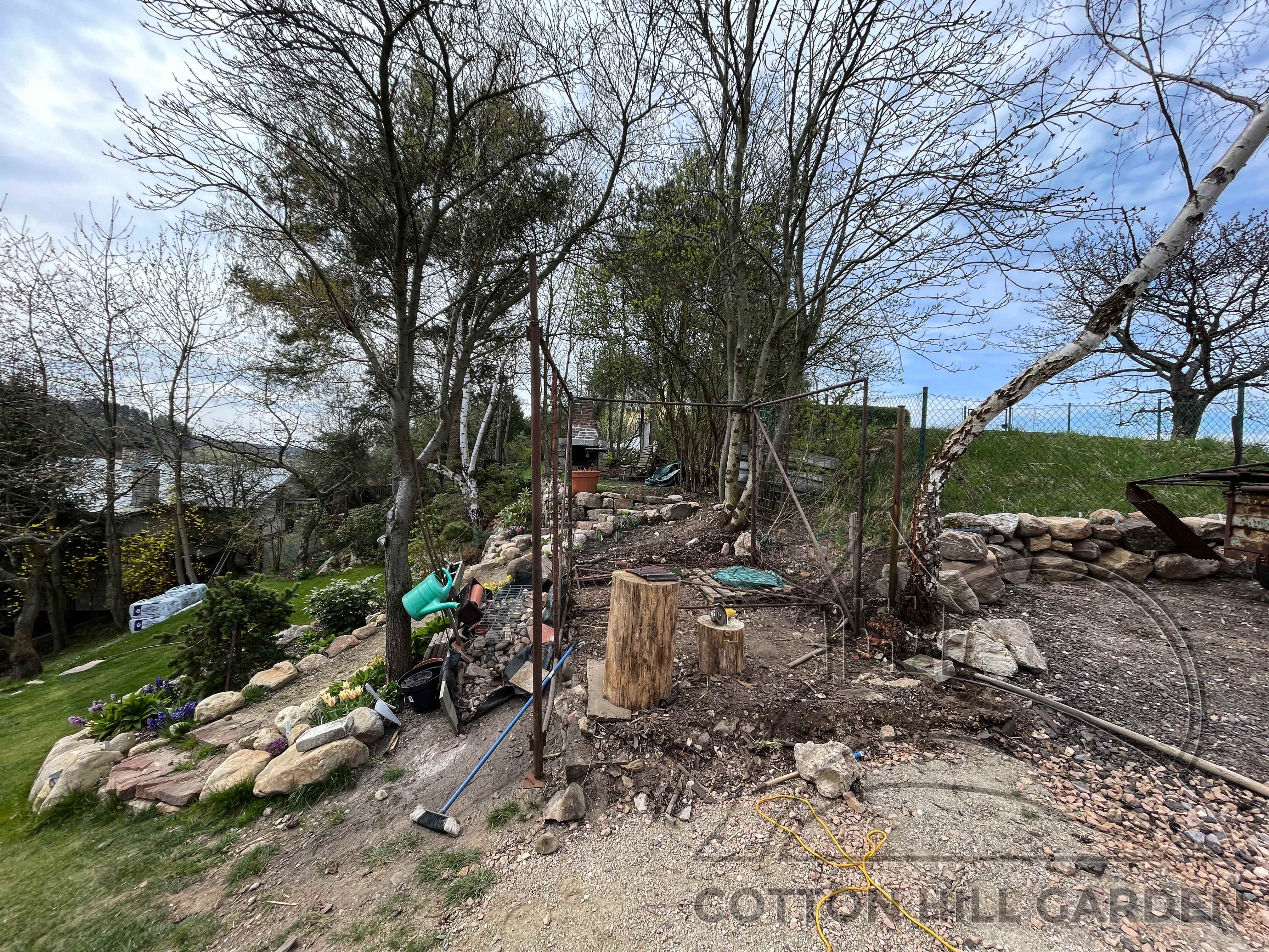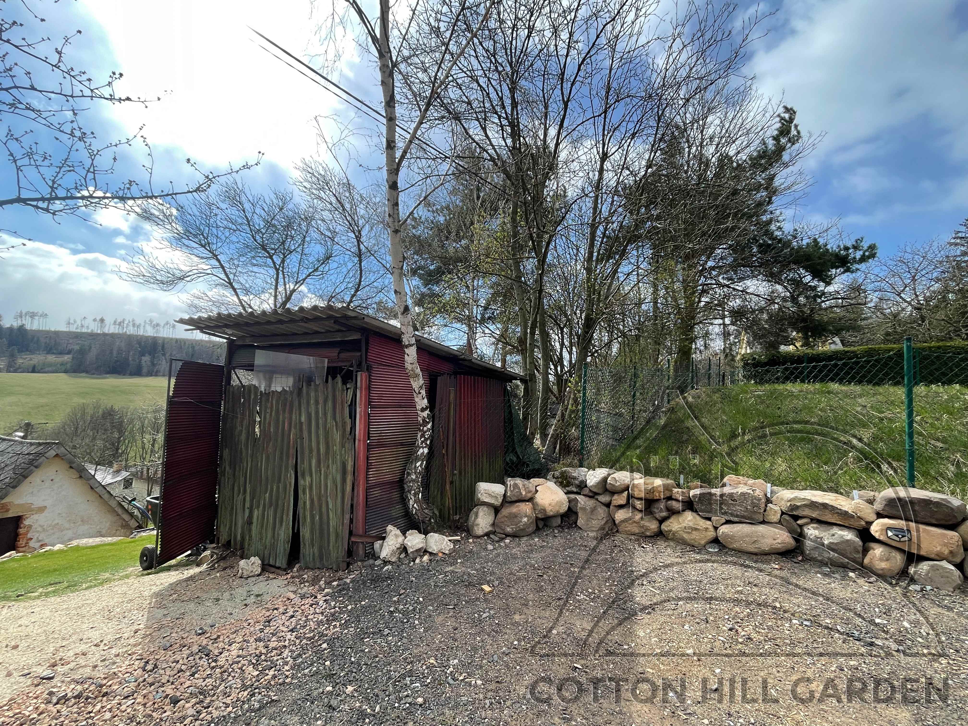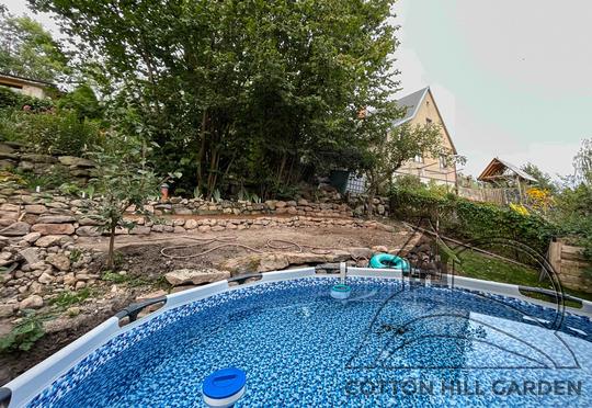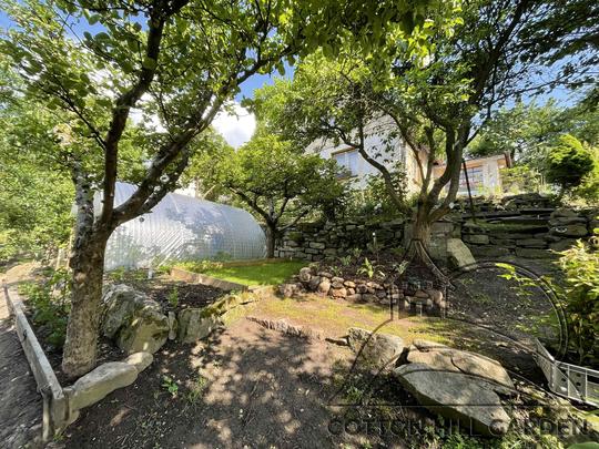 ZPŘÍSTUPNÍ DŮM PRO ÚČELY BUDOUCÍ STAVBY, VYTVÁŘÍ TRAVNATOU TERASU S KRÁSNÝM VÝHLEDEM DO KRAJINY. V NEPOSLEDNÍ ŘADĚ TARAS BUDE DOMOVEM ČAROVĚNÍKŮ, AZALEK A SKALNIČEK.