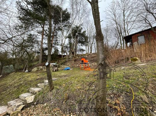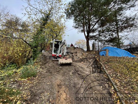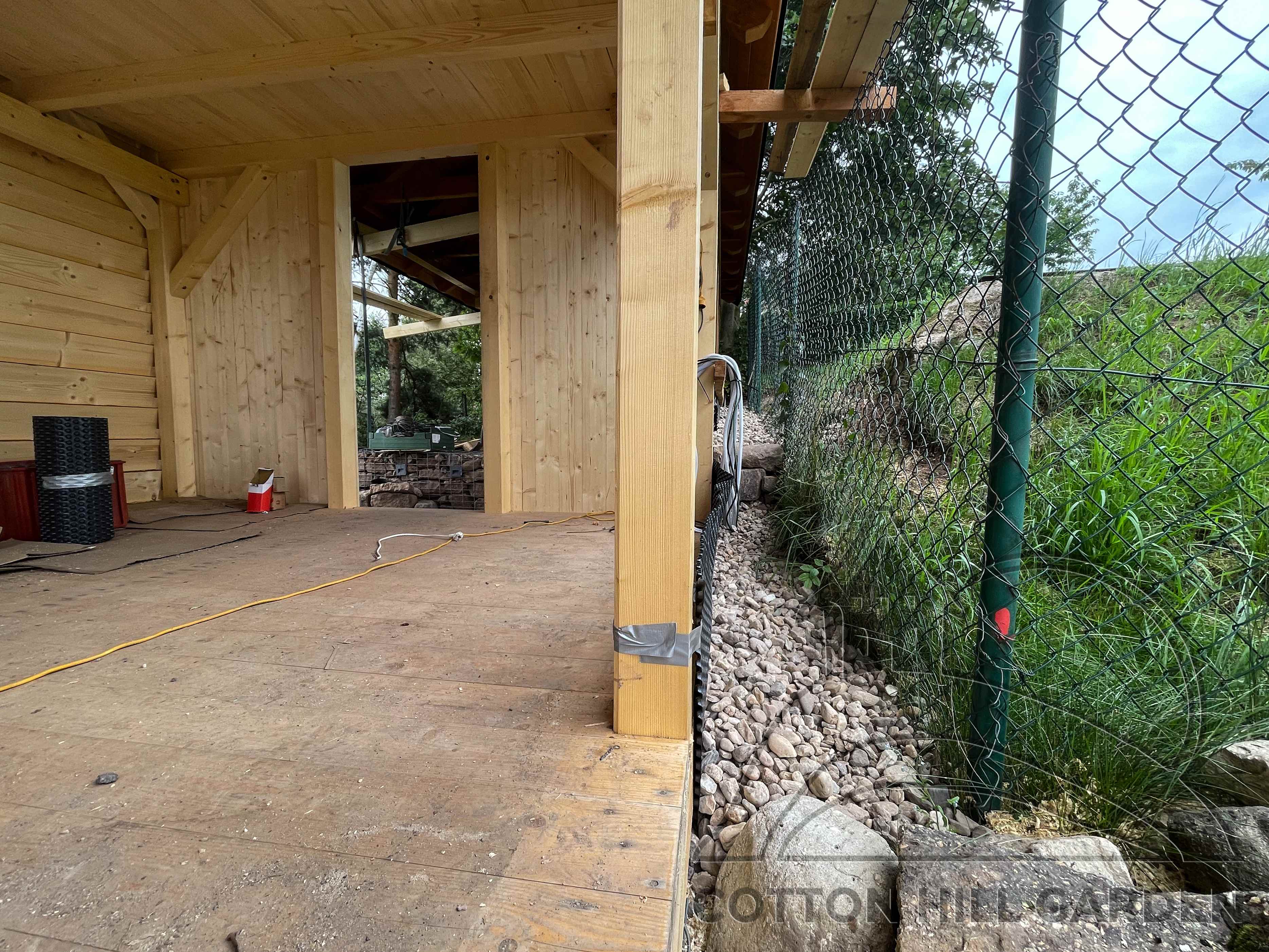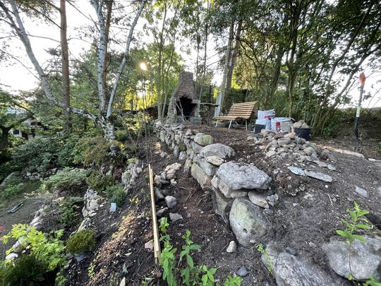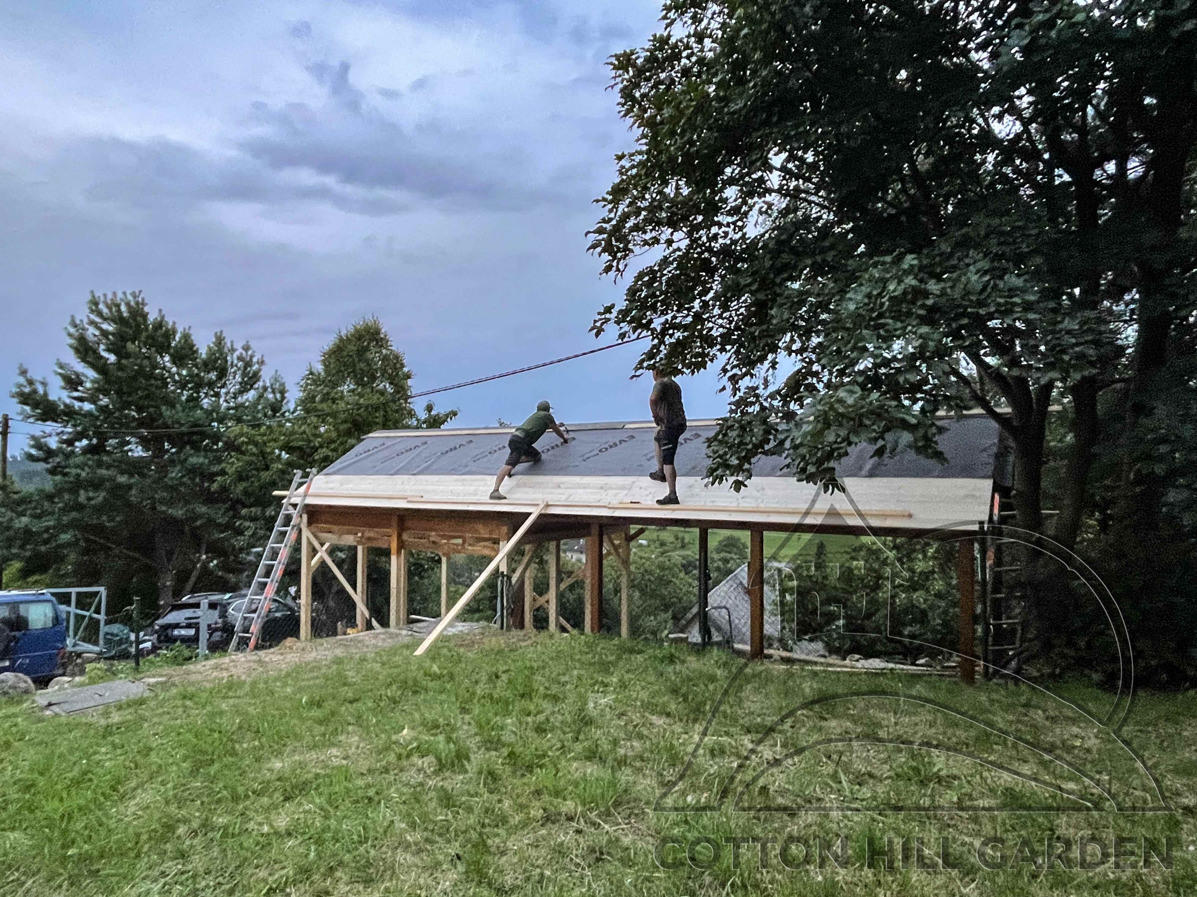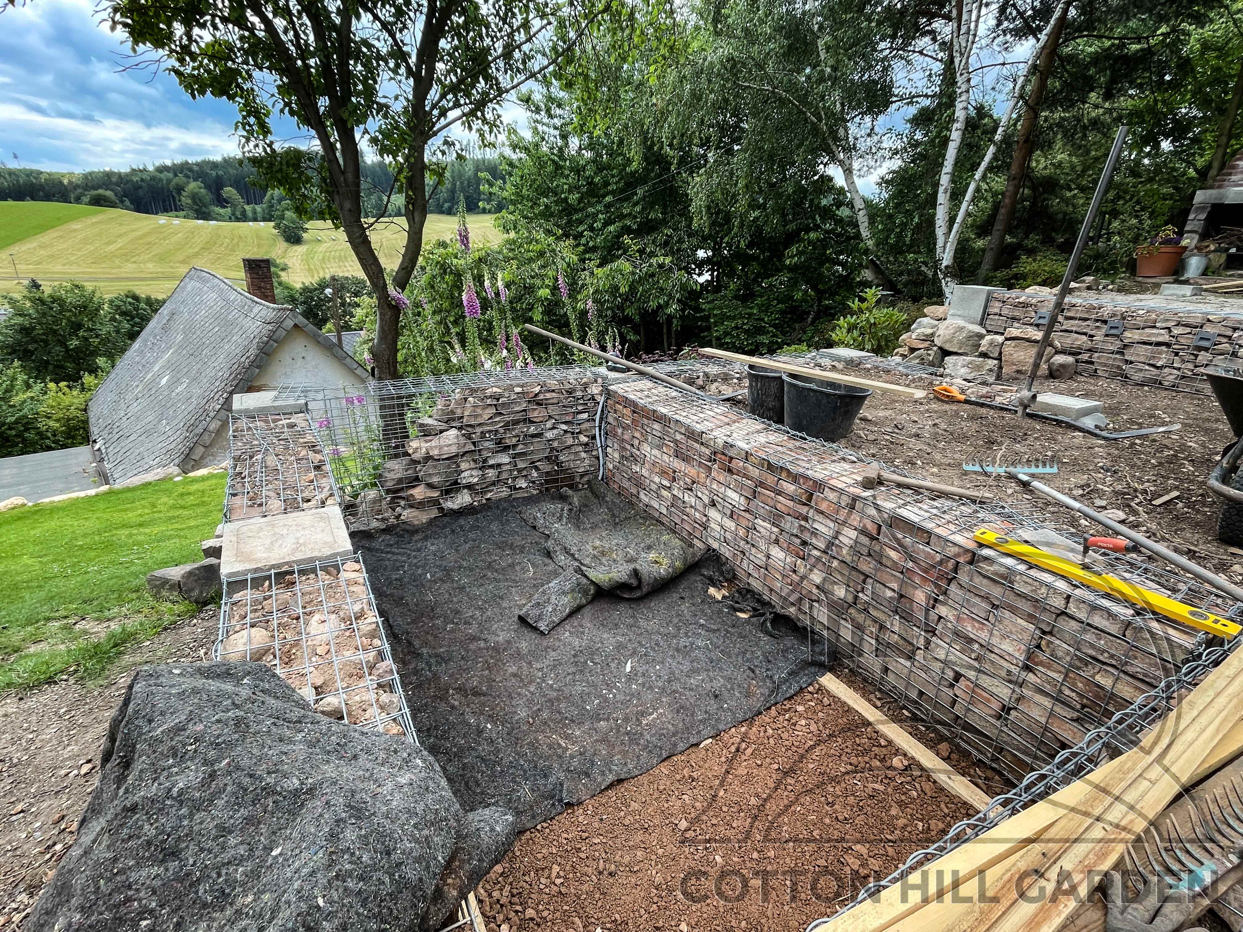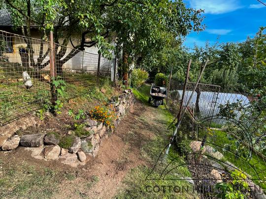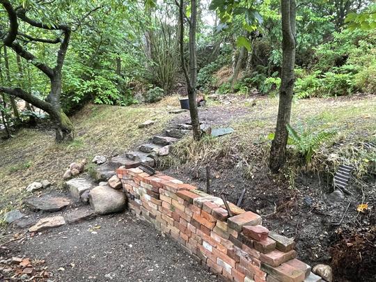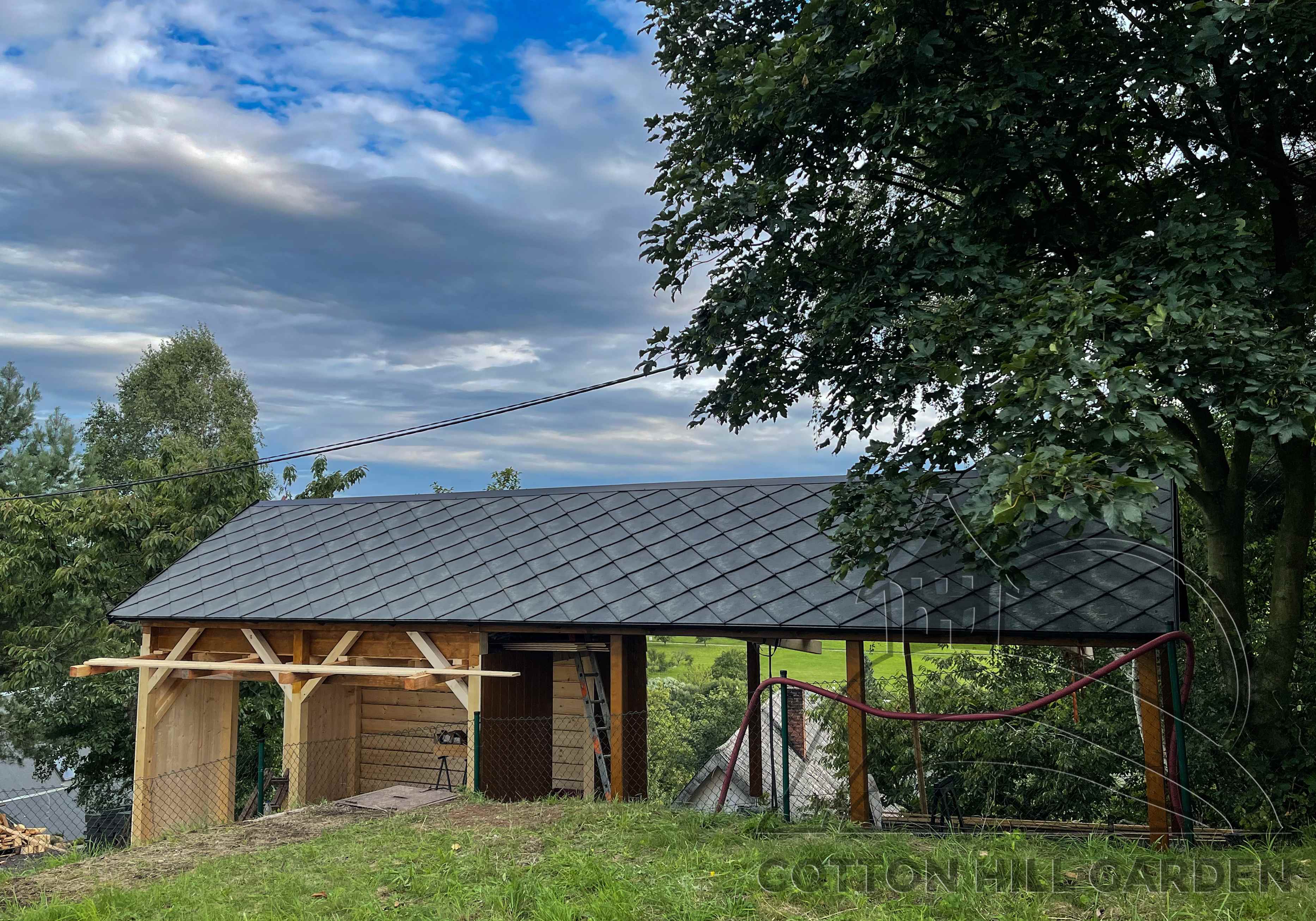 ZPŘÍSTUPNÍ DŮM PRO ÚČELY BUDOUCÍ STAVBY, VYTVÁŘÍ TRAVNATOU TERASU S KRÁSNÝM VÝHLEDEM DO KRAJINY. V NEPOSLEDNÍ ŘADĚ TARAS BUDE DOMOVEM ČAROVĚNÍKŮ, AZALEK A SKALNIČEK.