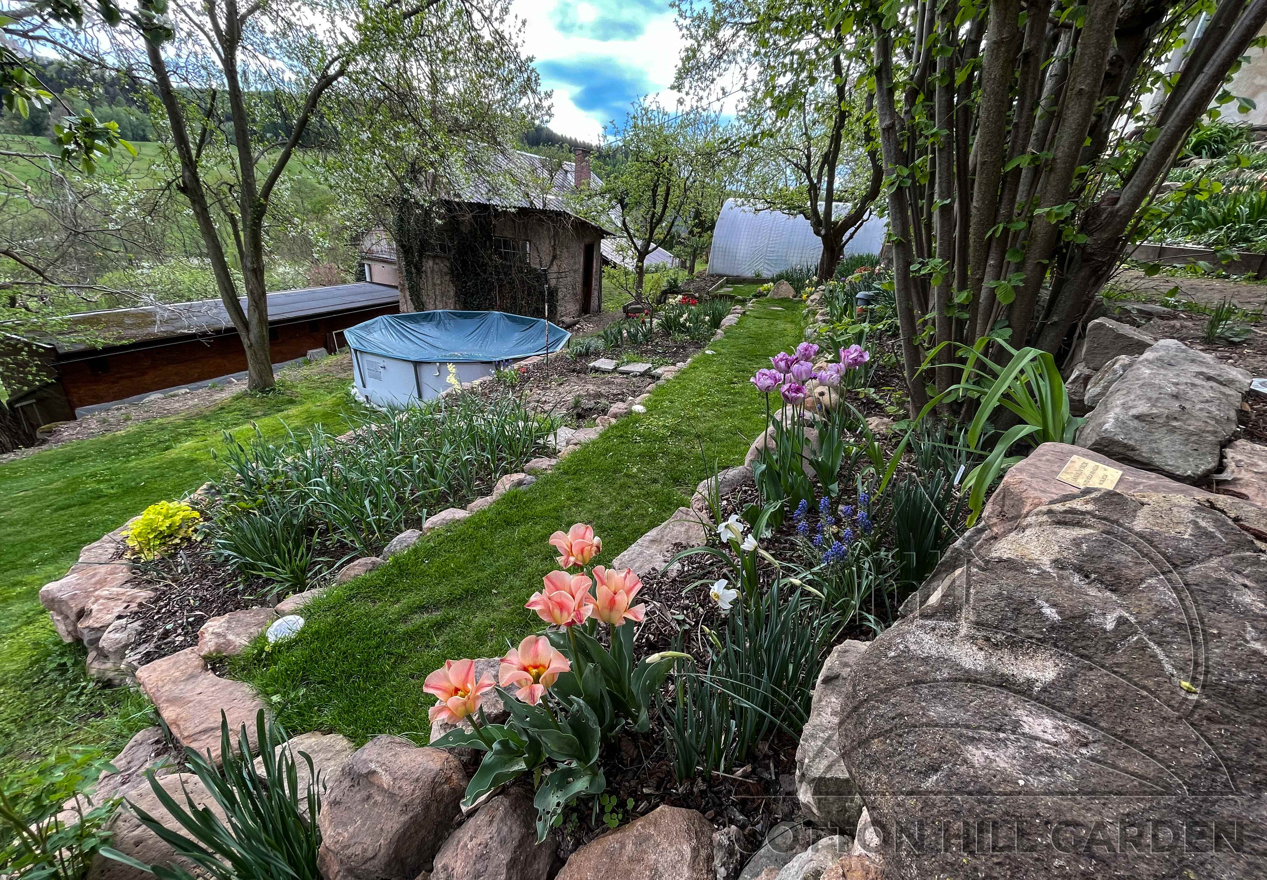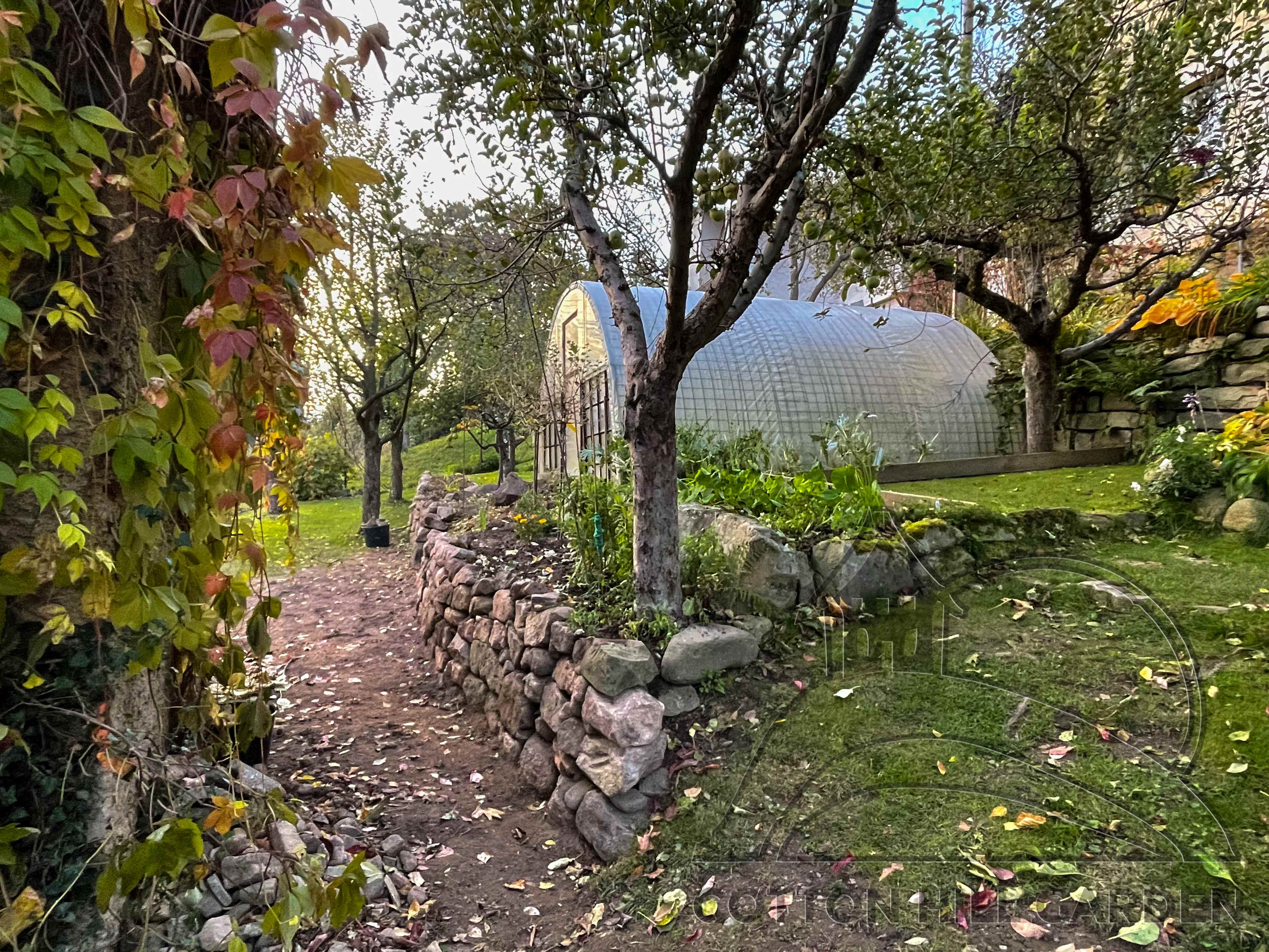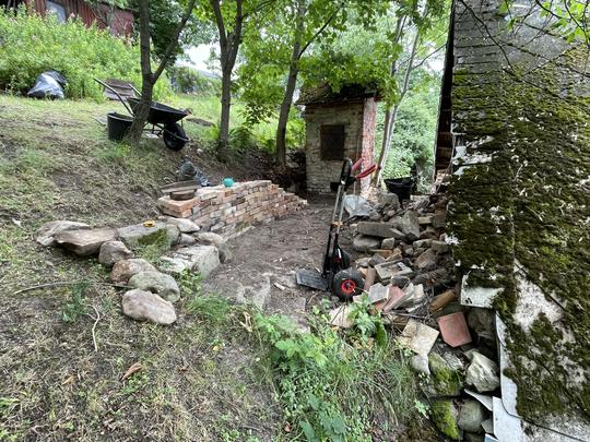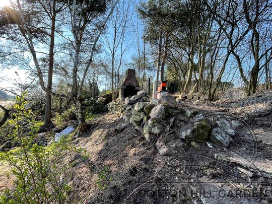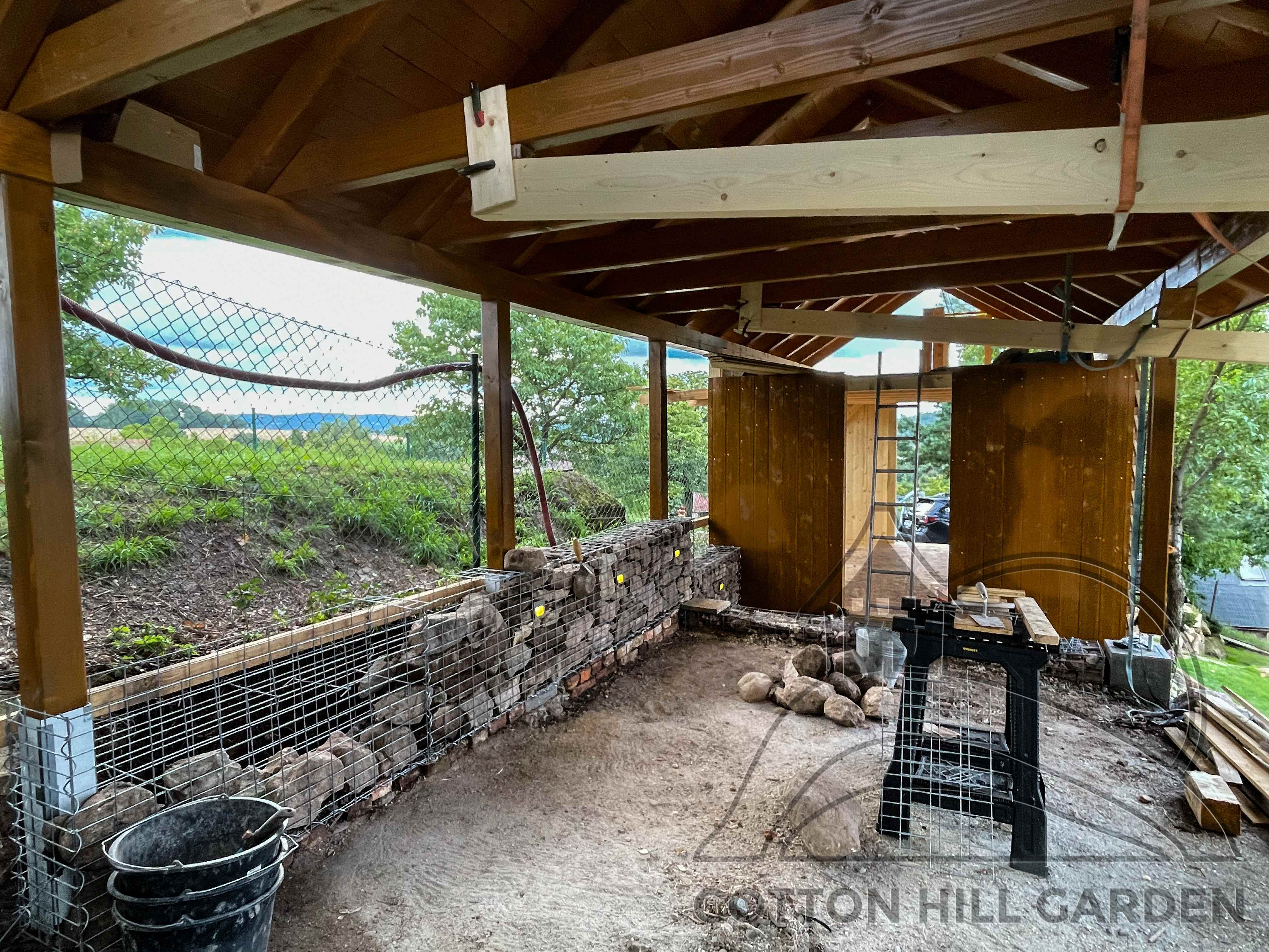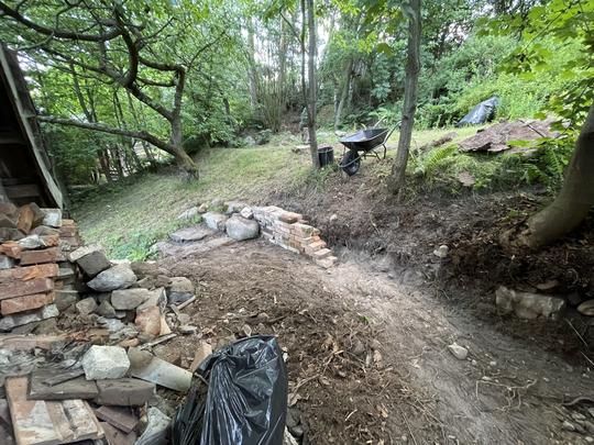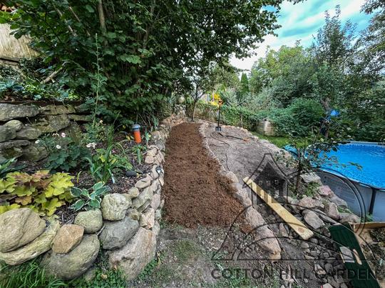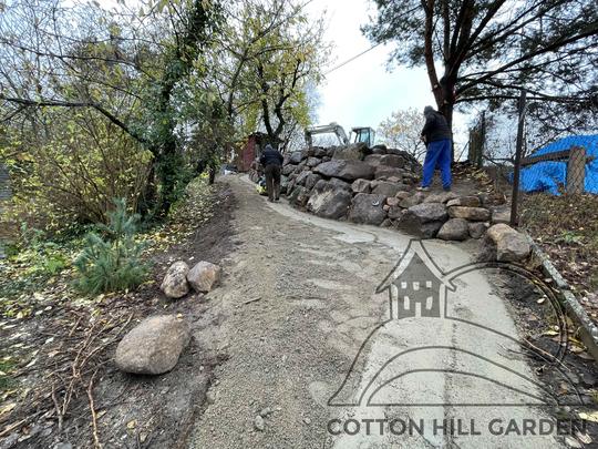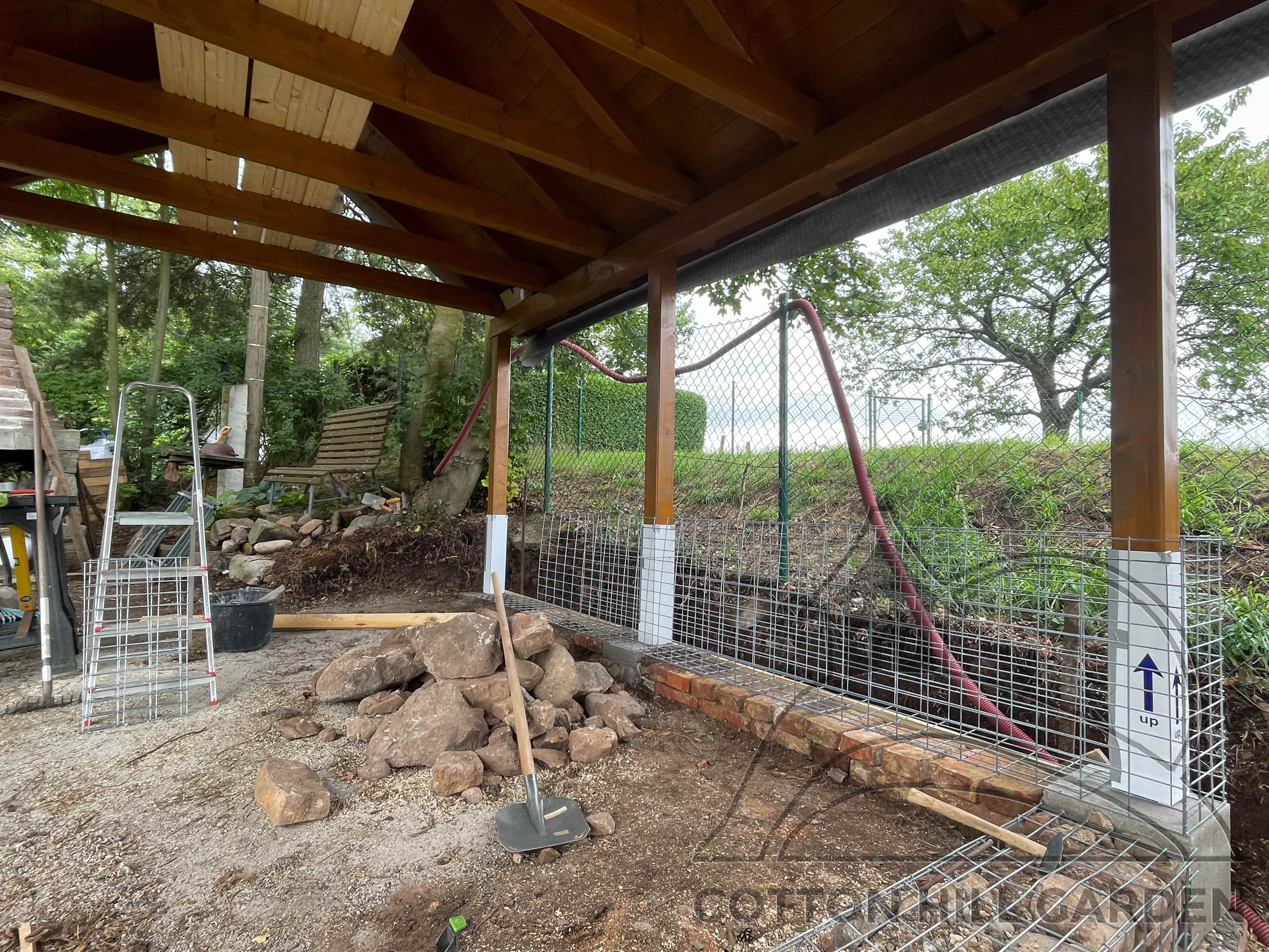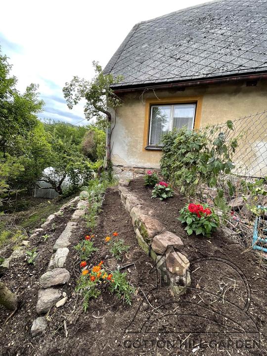 ZPŘÍSTUPNÍ DŮM PRO ÚČELY BUDOUCÍ STAVBY, VYTVÁŘÍ TRAVNATOU TERASU S KRÁSNÝM VÝHLEDEM DO KRAJINY. V NEPOSLEDNÍ ŘADĚ TARAS BUDE DOMOVEM ČAROVĚNÍKŮ, AZALEK A SKALNIČEK.
