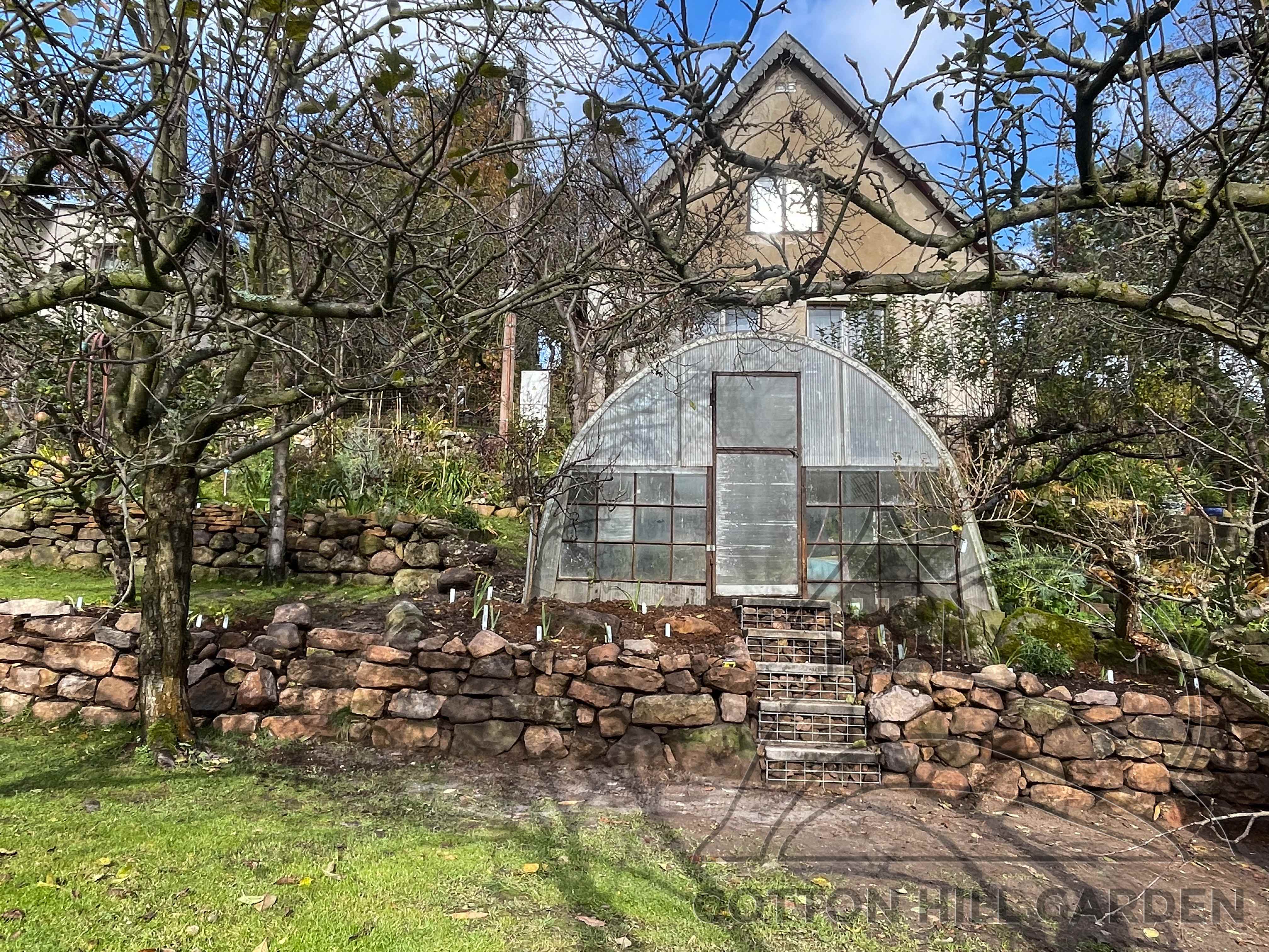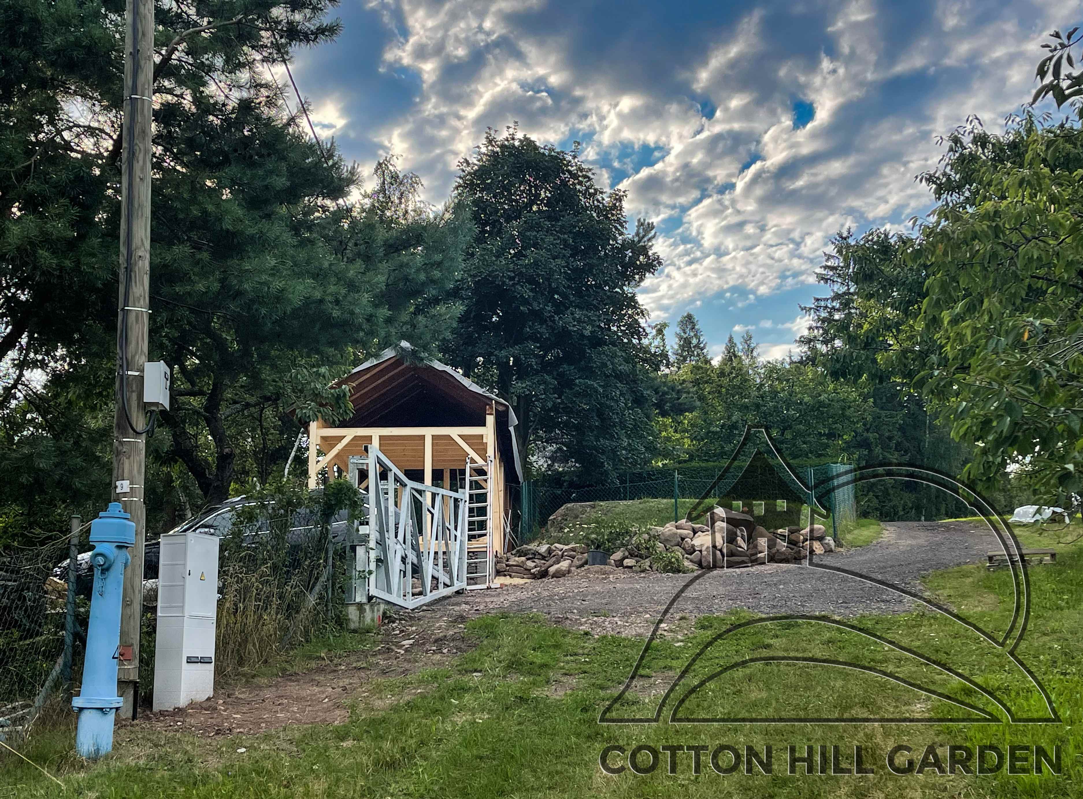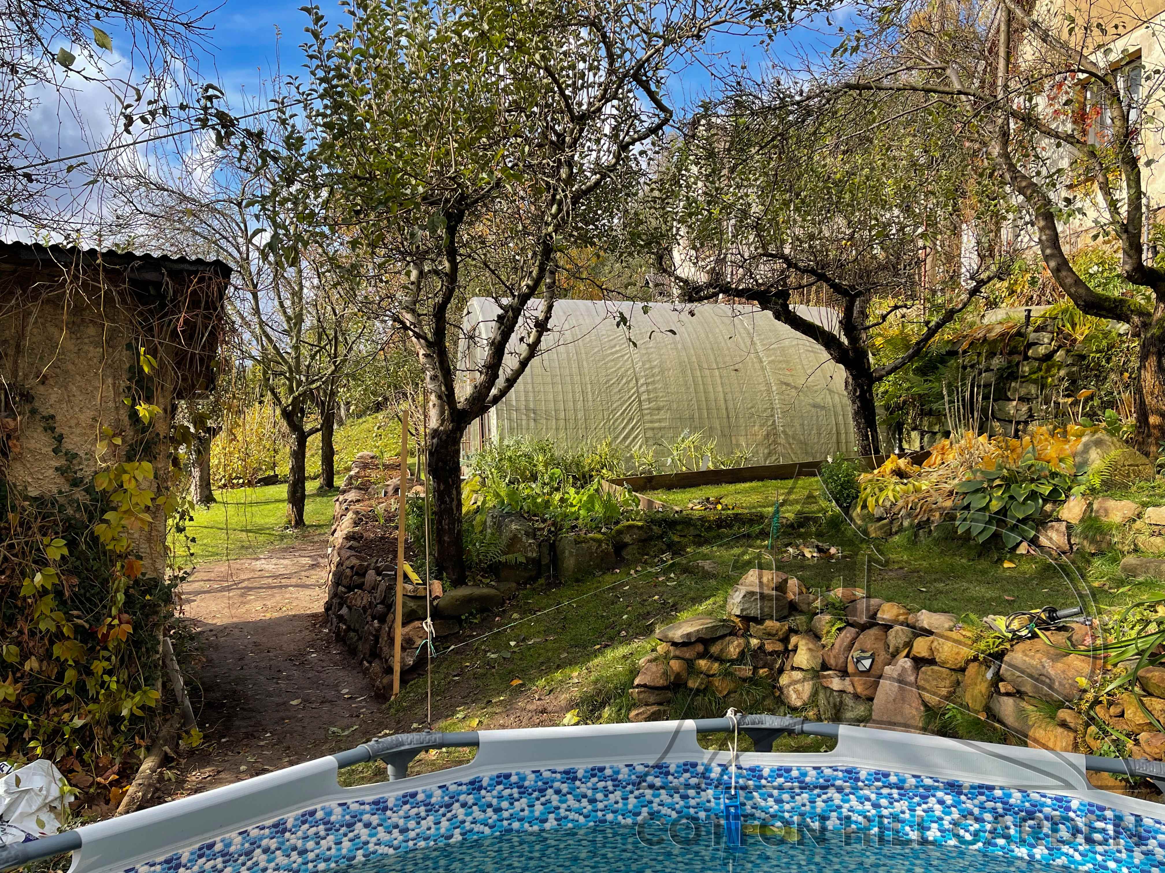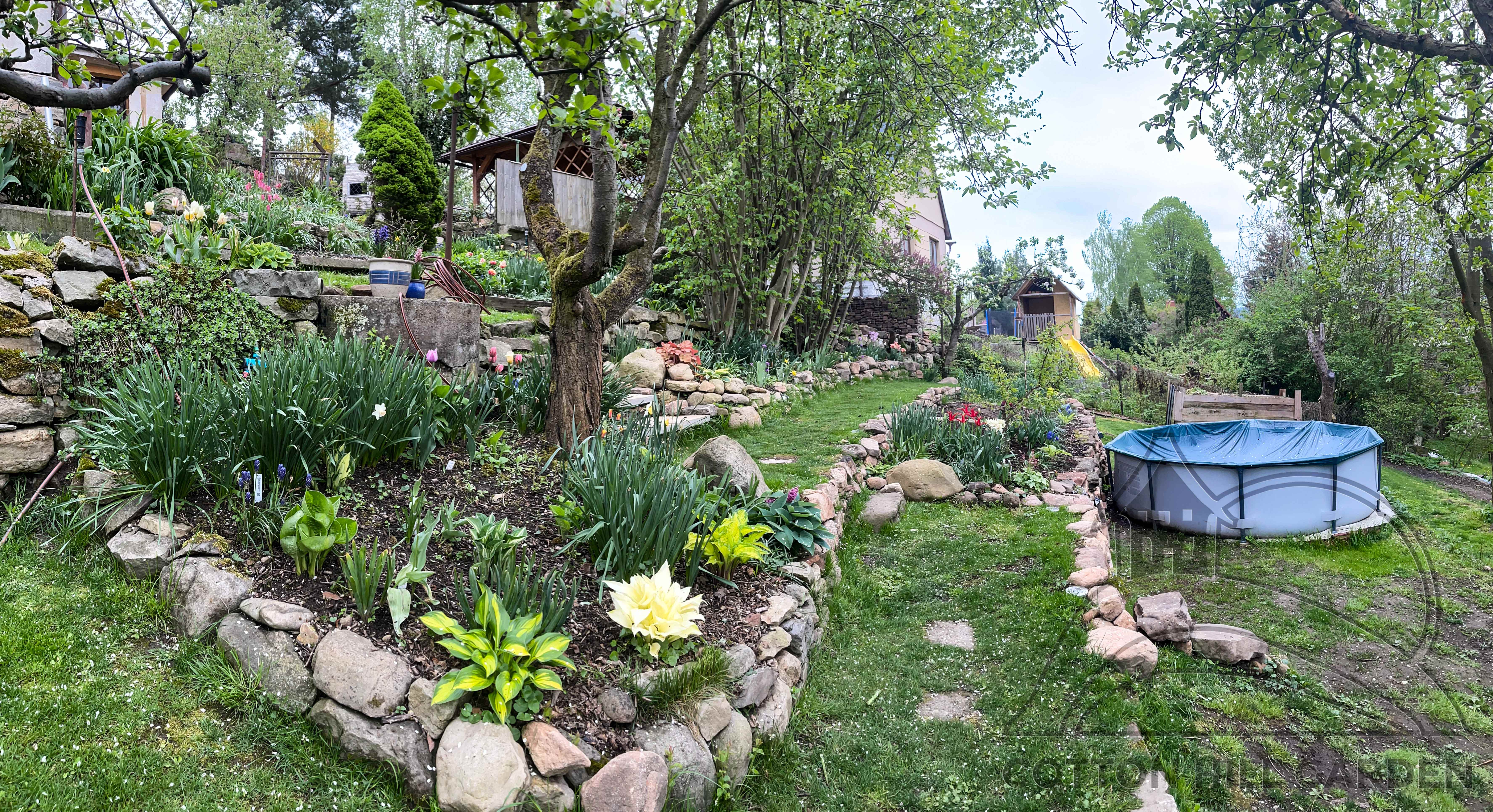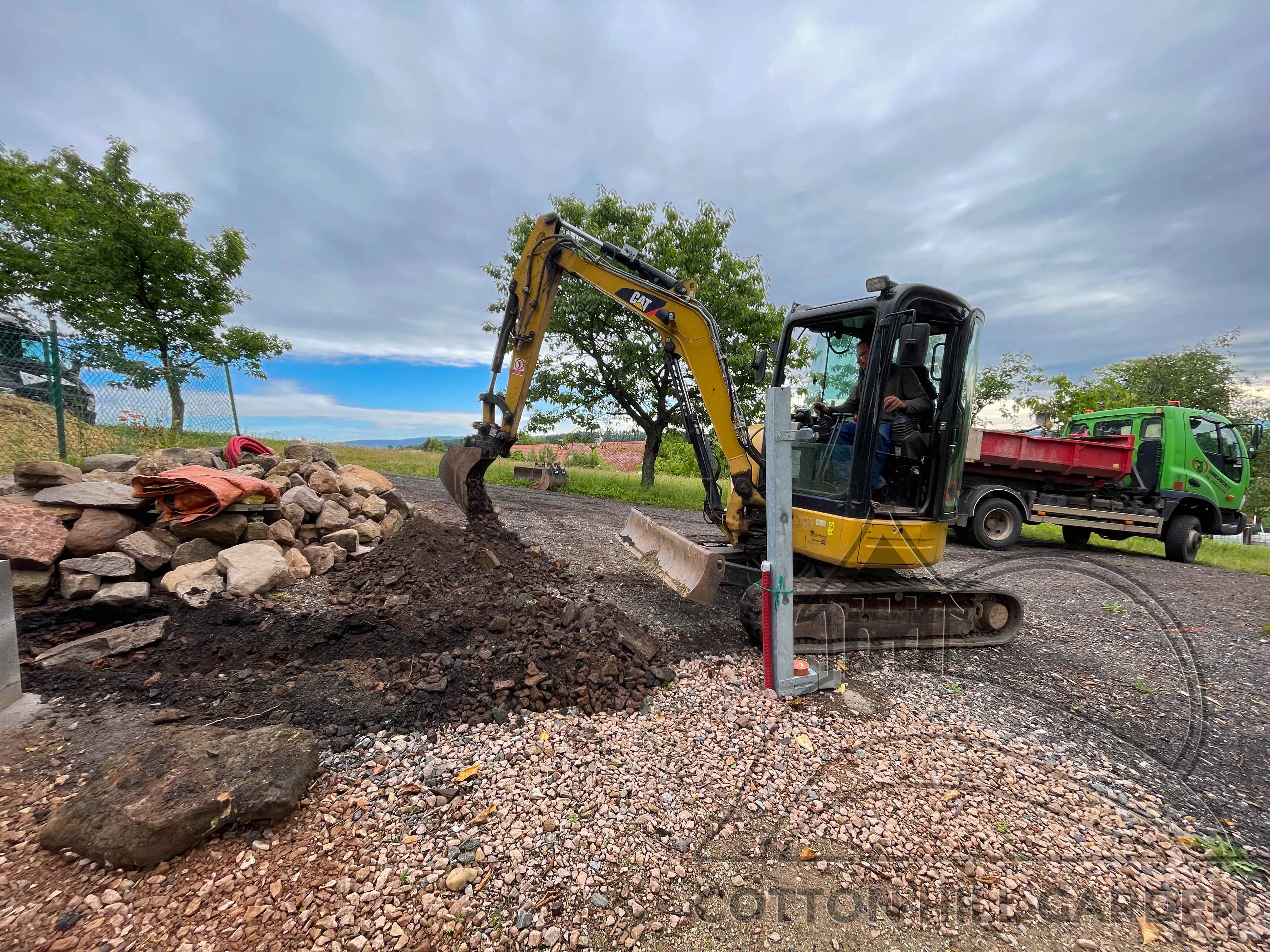 ZPŘÍSTUPNÍ DŮM PRO ÚČELY BUDOUCÍ STAVBY, VYTVÁŘÍ TRAVNATOU TERASU S KRÁSNÝM VÝHLEDEM DO KRAJINY. V NEPOSLEDNÍ ŘADĚ TARAS BUDE DOMOVEM ČAROVĚNÍKŮ, AZALEK A SKALNIČEK.