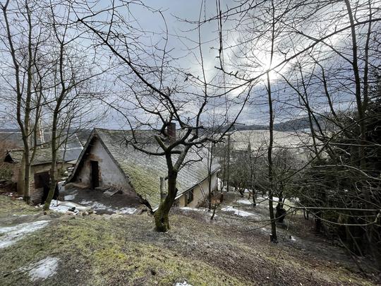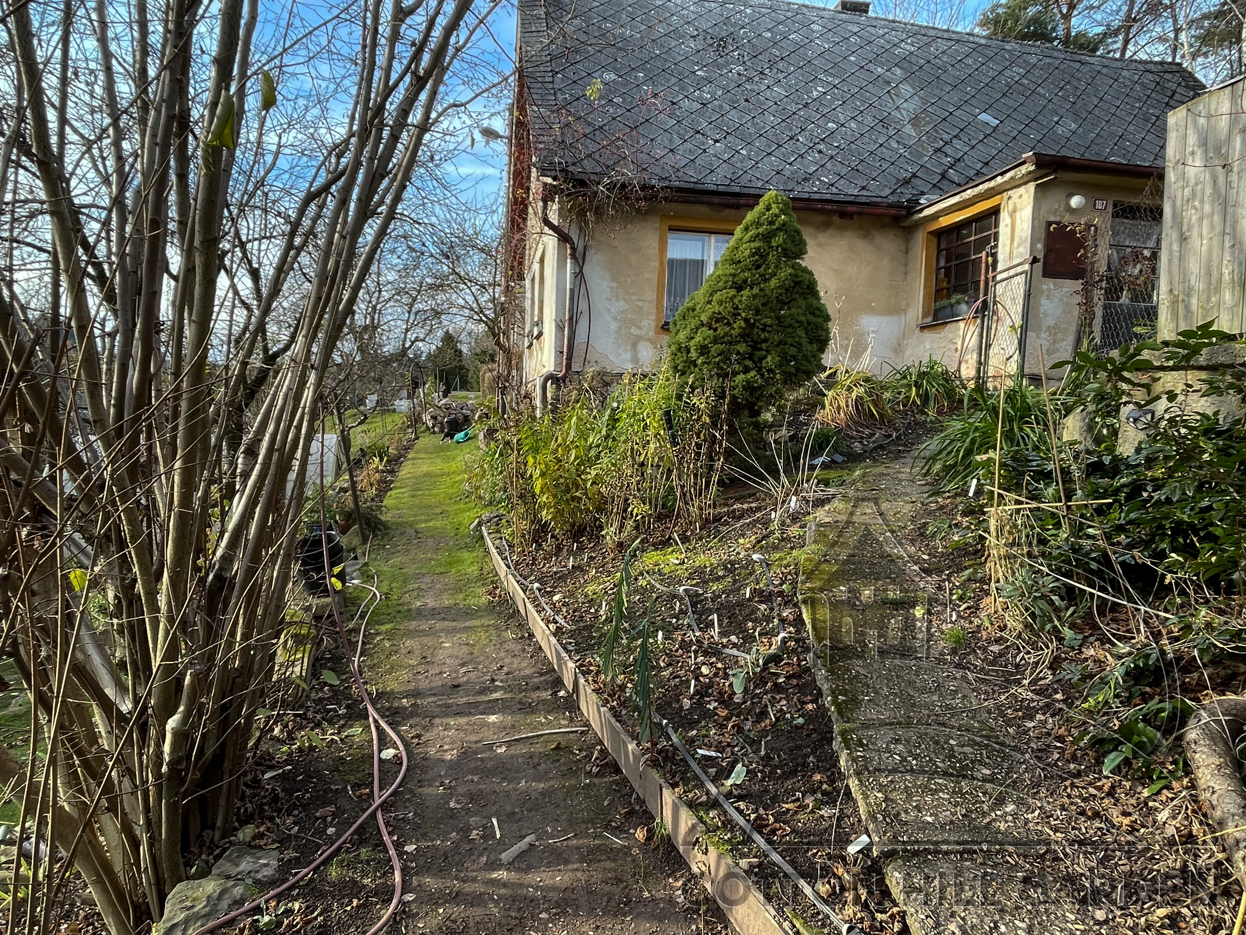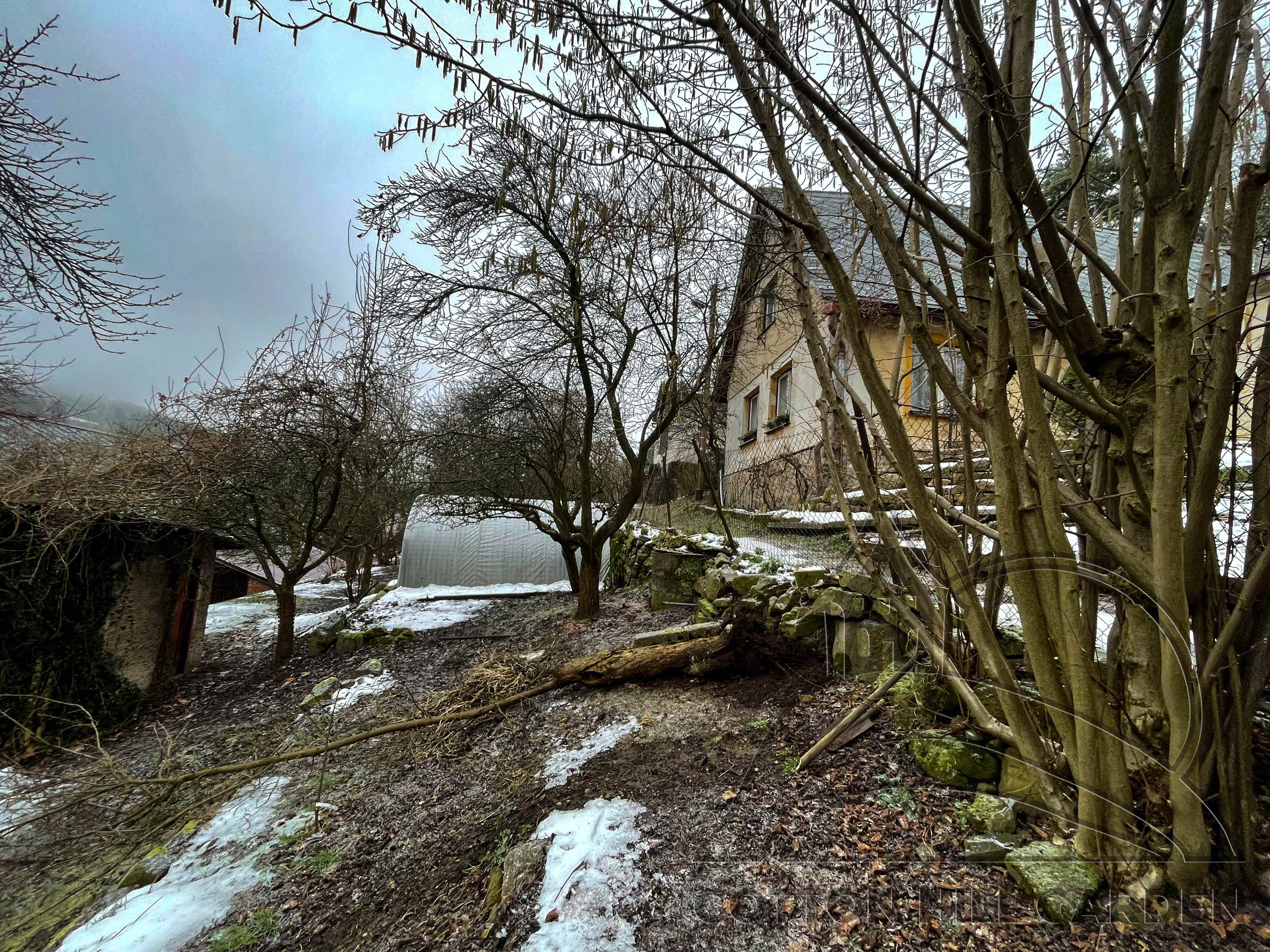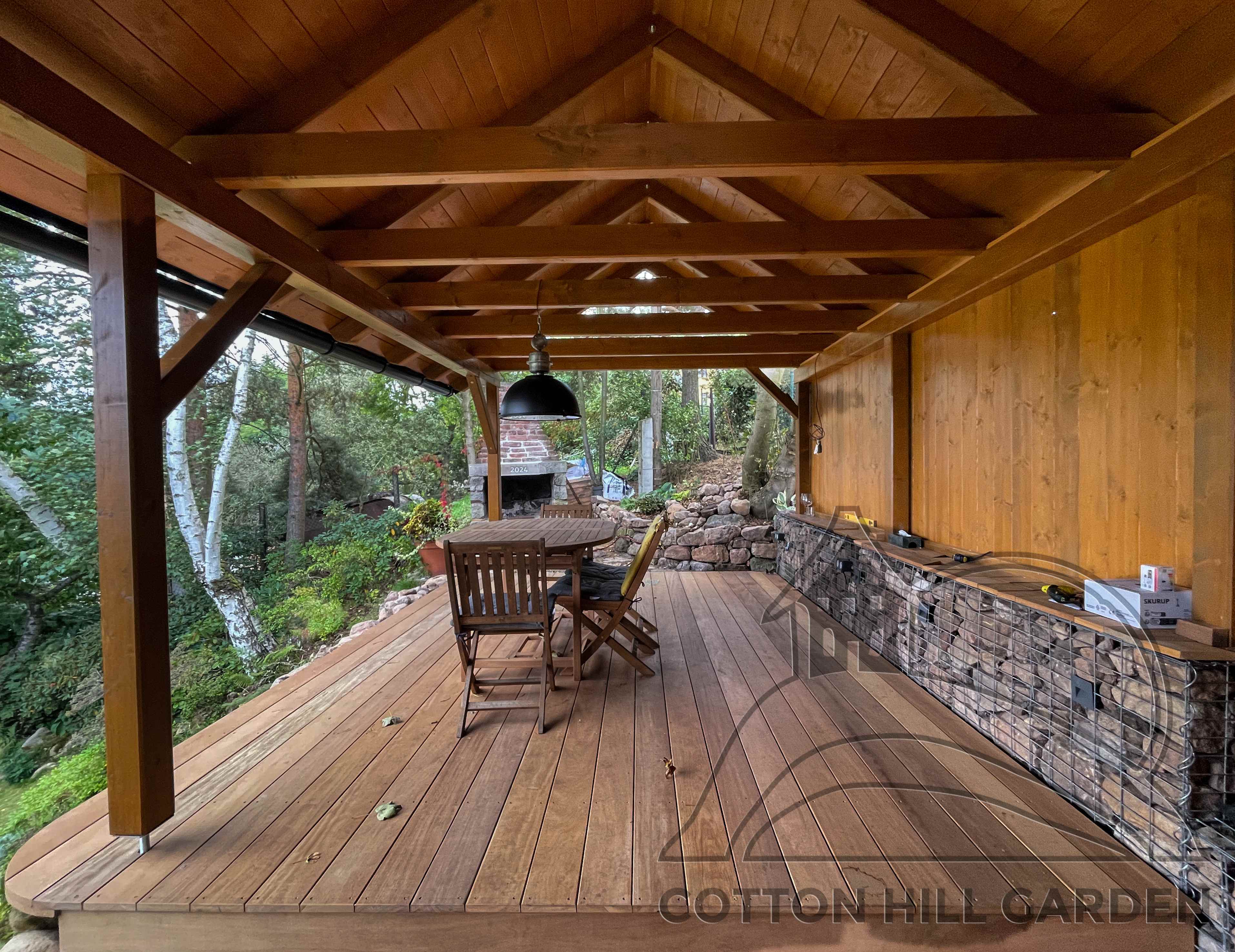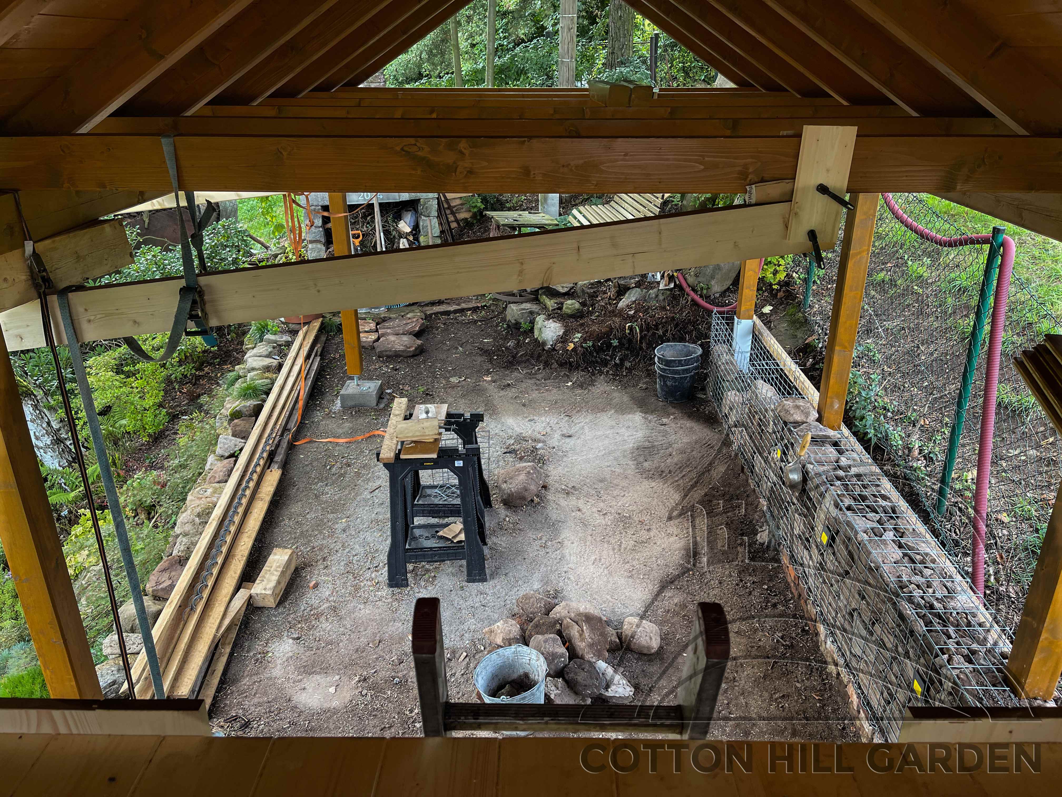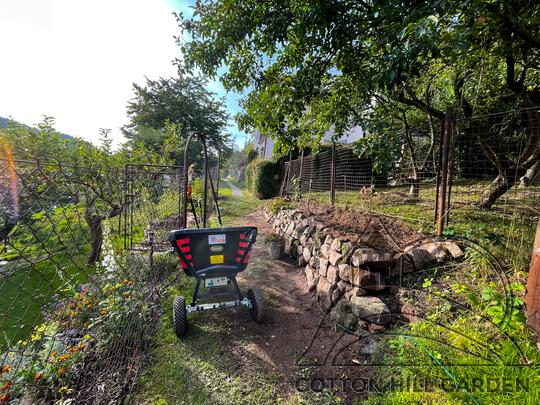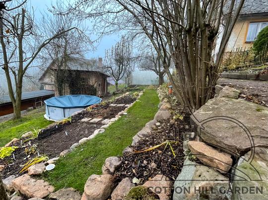 ZPŘÍSTUPNÍ DŮM PRO ÚČELY BUDOUCÍ STAVBY, VYTVÁŘÍ TRAVNATOU TERASU S KRÁSNÝM VÝHLEDEM DO KRAJINY. V NEPOSLEDNÍ ŘADĚ TARAS BUDE DOMOVEM ČAROVĚNÍKŮ, AZALEK A SKALNIČEK.